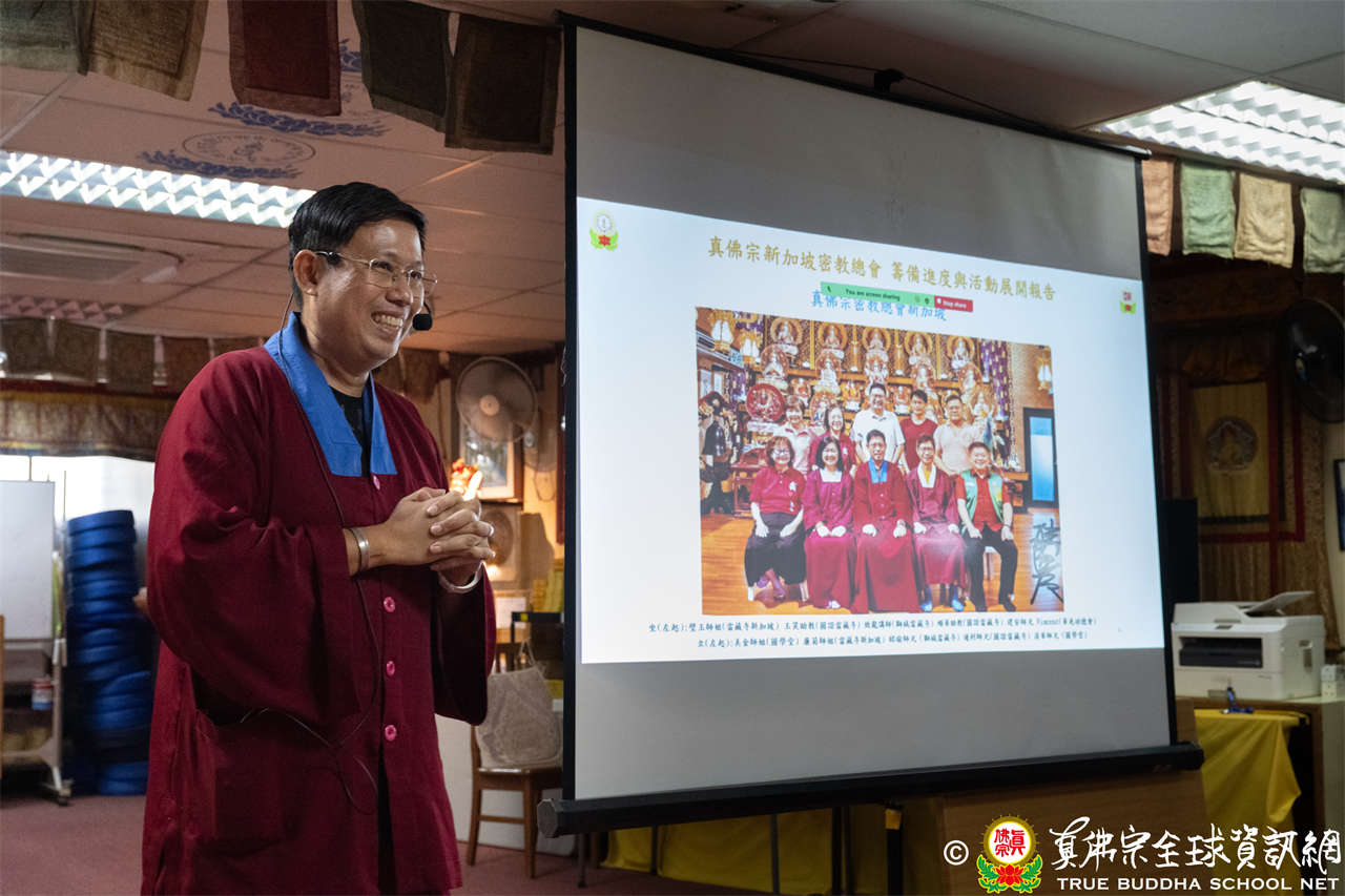 新密總籌委會主席致龍講師首先說道,歡迎各位處長來到新加坡,也期待新加坡各道場更上一層樓。除了重申成立新密總的主旨,也報告目前申請的進展以及特別報告關於新加坡的法師團的現況,僧眾是同門大眾的榜樣,讓處長們了解法師的需求以及如何提供適時的幫助、還有幫助法師們學習提升自己。