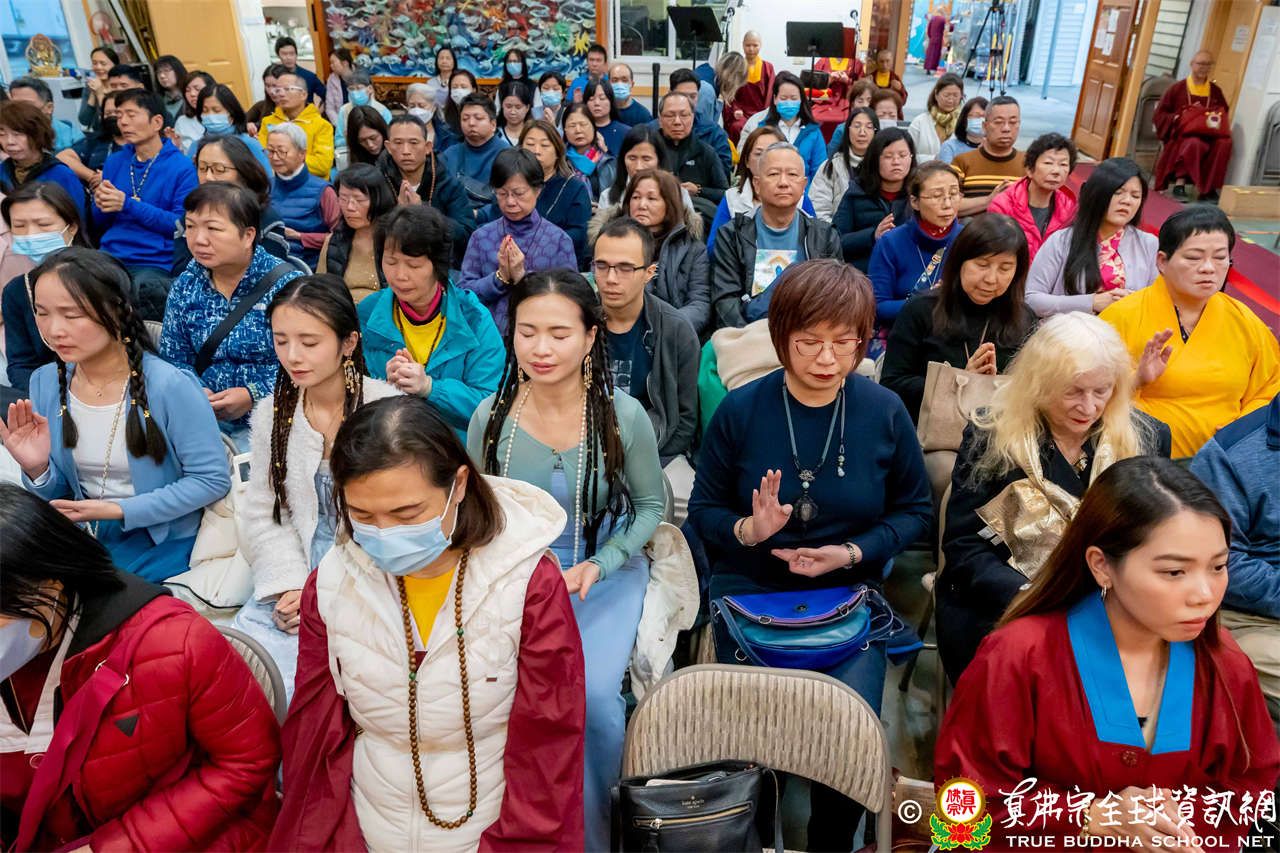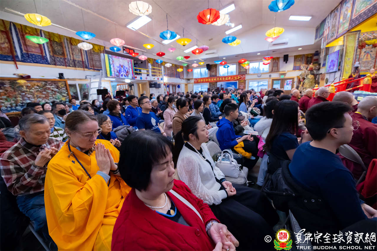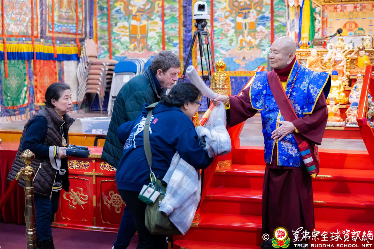 法王開示畢,衆人報以熱烈掌聲感謝法王。接著法王下座與線上弟子互相問候,並為與會大衆賜授藥師佛法灌頂。法會至此圓滿結束。