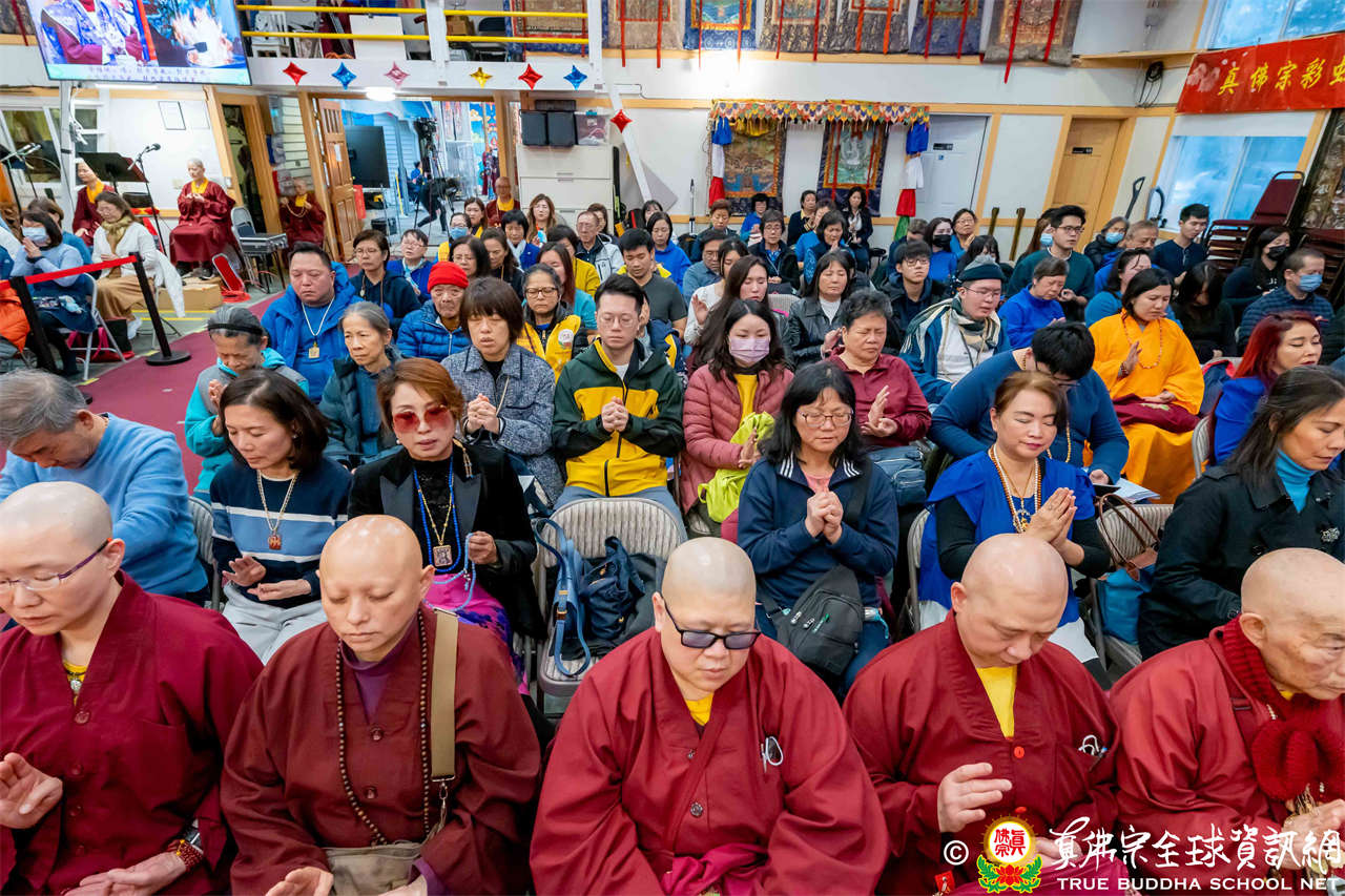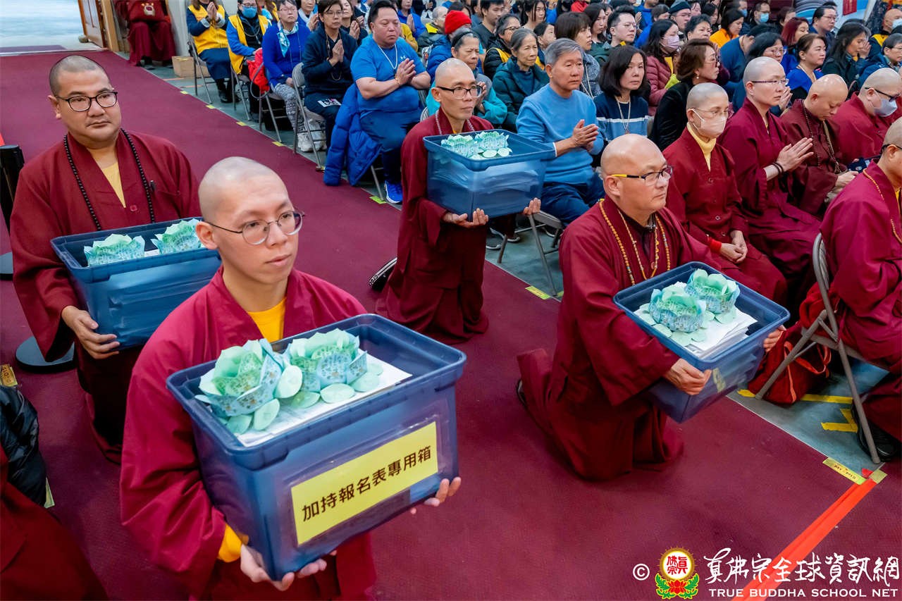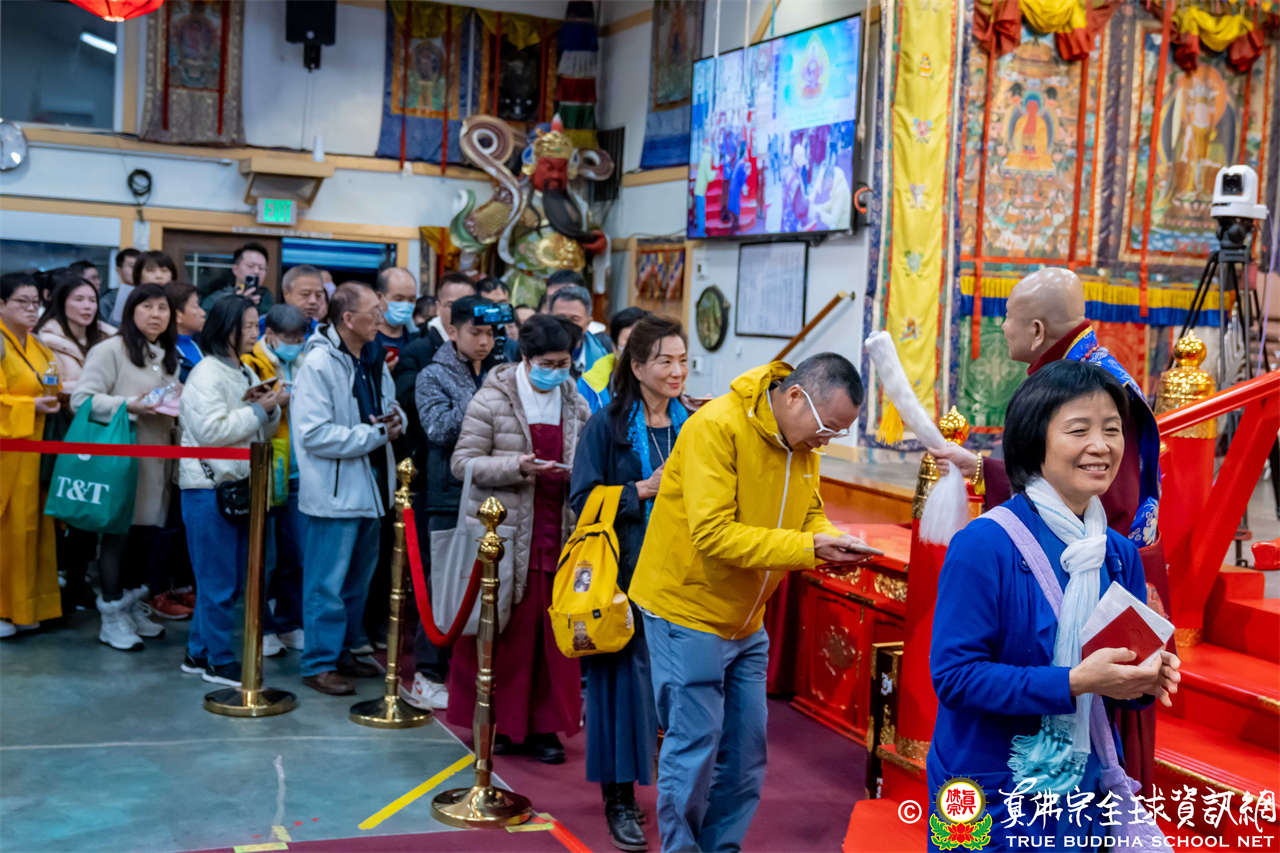 法王開示畢,衆人報以熱烈掌聲感謝法王。接著法王下座與線上弟子互相問候,並為與會大衆賜授藥師佛法灌頂。法會至此圓滿結束。