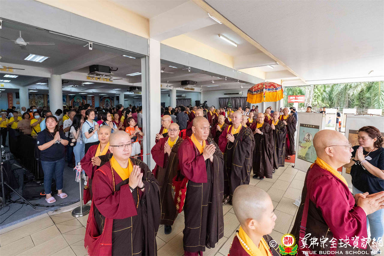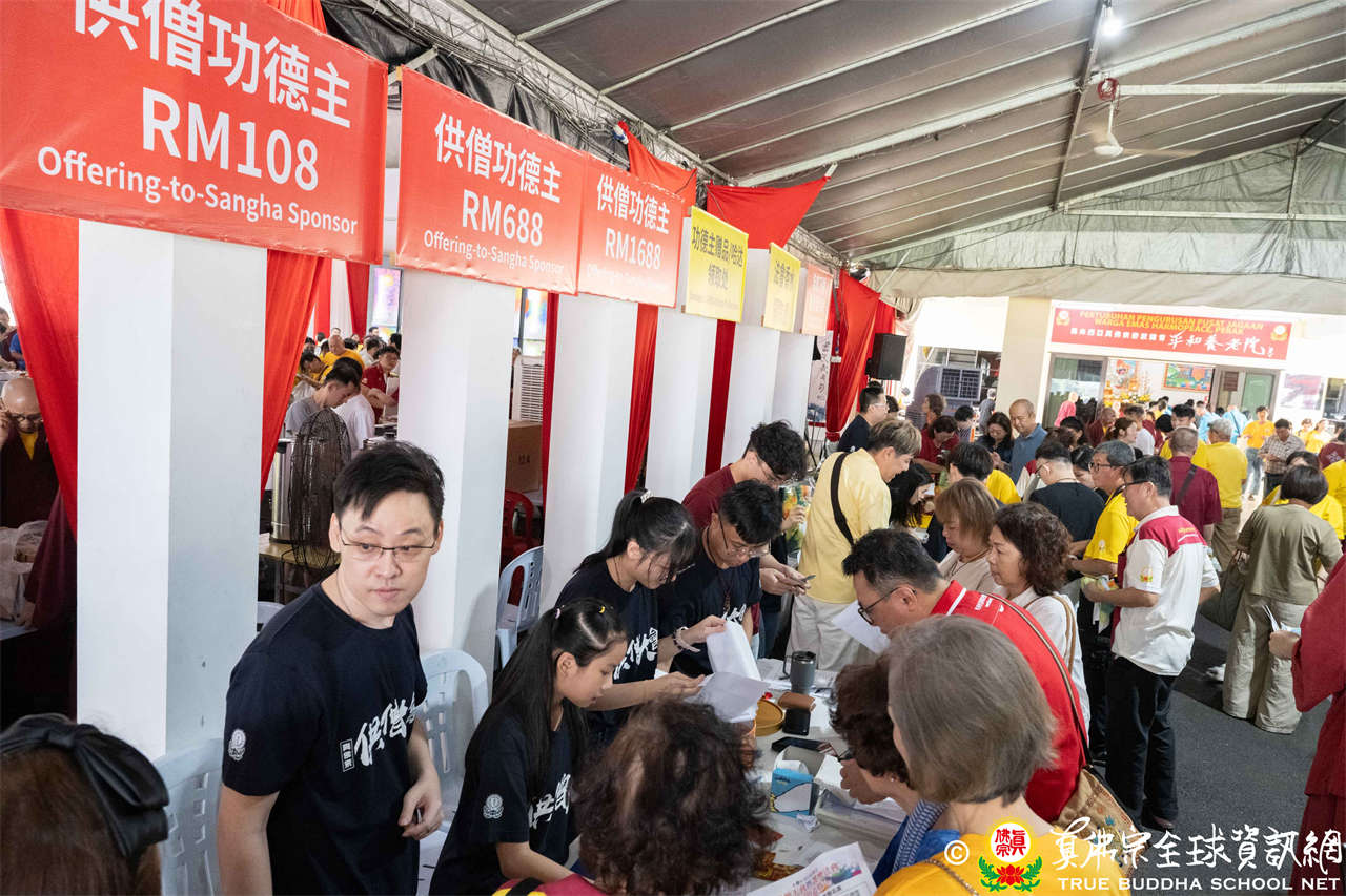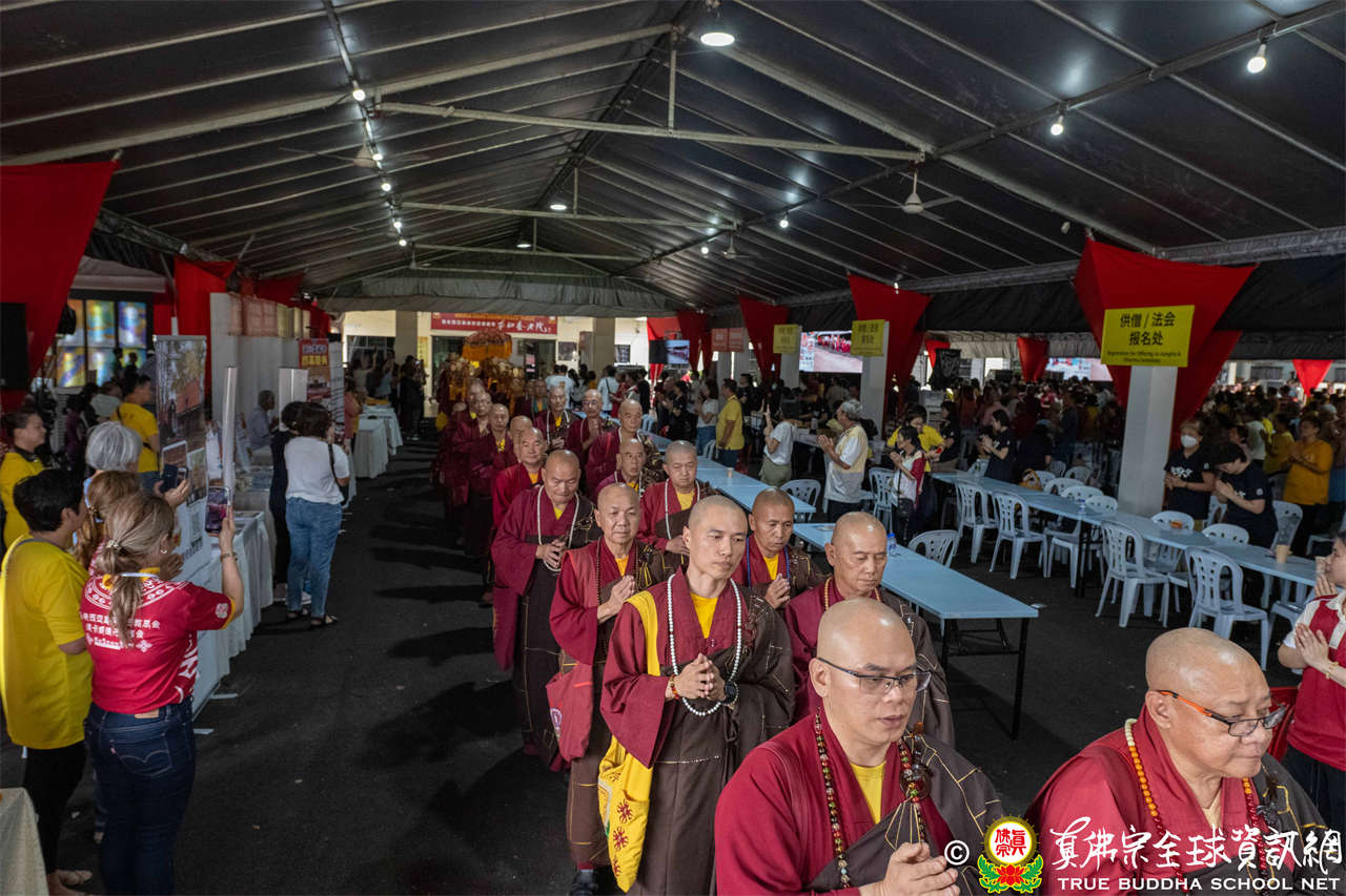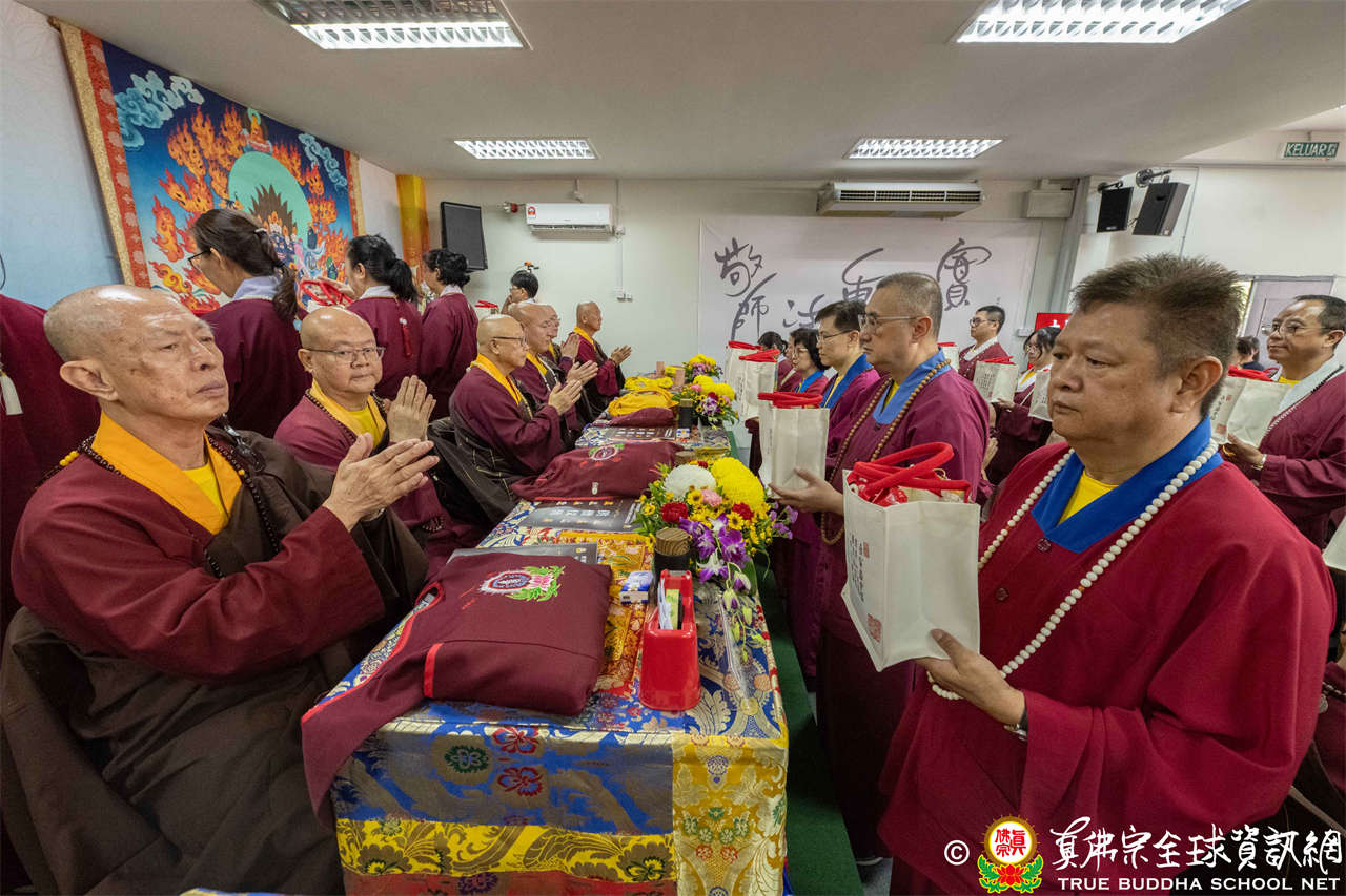 本次供僧大會恭請長老釋蓮栽上師主壇,隨後的「大吉祥天女護摩法會」則由宗委會教育處處長釋蓮訶上師主壇。約30位來自全球的真佛宗上師,及教授師、法師、講師及助教等近百位各級弘法人員共同與會。值得一提的是,與會僧眾涵蓋了南傳、北傳佛教僧人,體現了宗派廣納百川的包容精神。宗委會及馬密總法律顧問羅日良律師、黃月琴律師等貴賓亦出席護持。來自全馬各地的道場負責人和同門紛紛組團參與,35輛旅遊巴士整齊停泊會場,場面莊嚴殊勝。