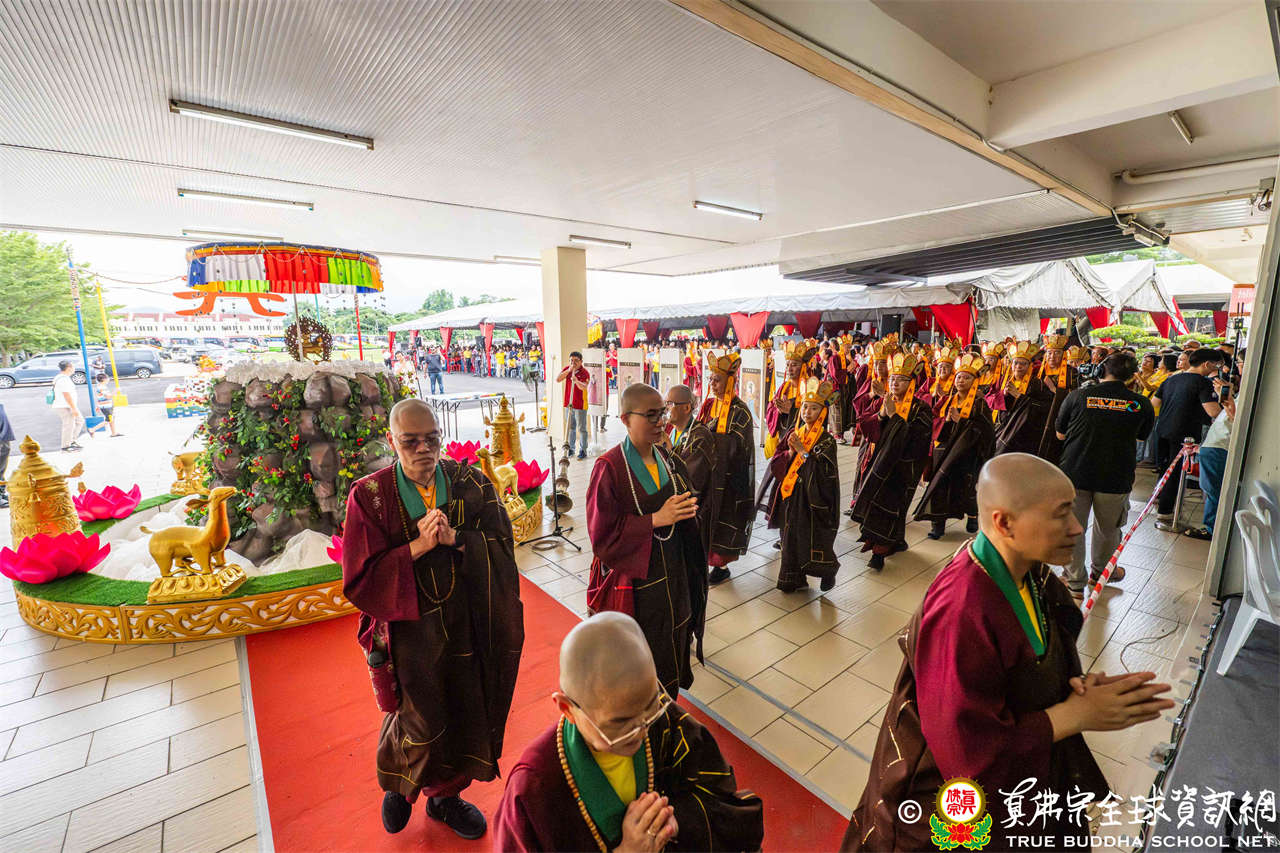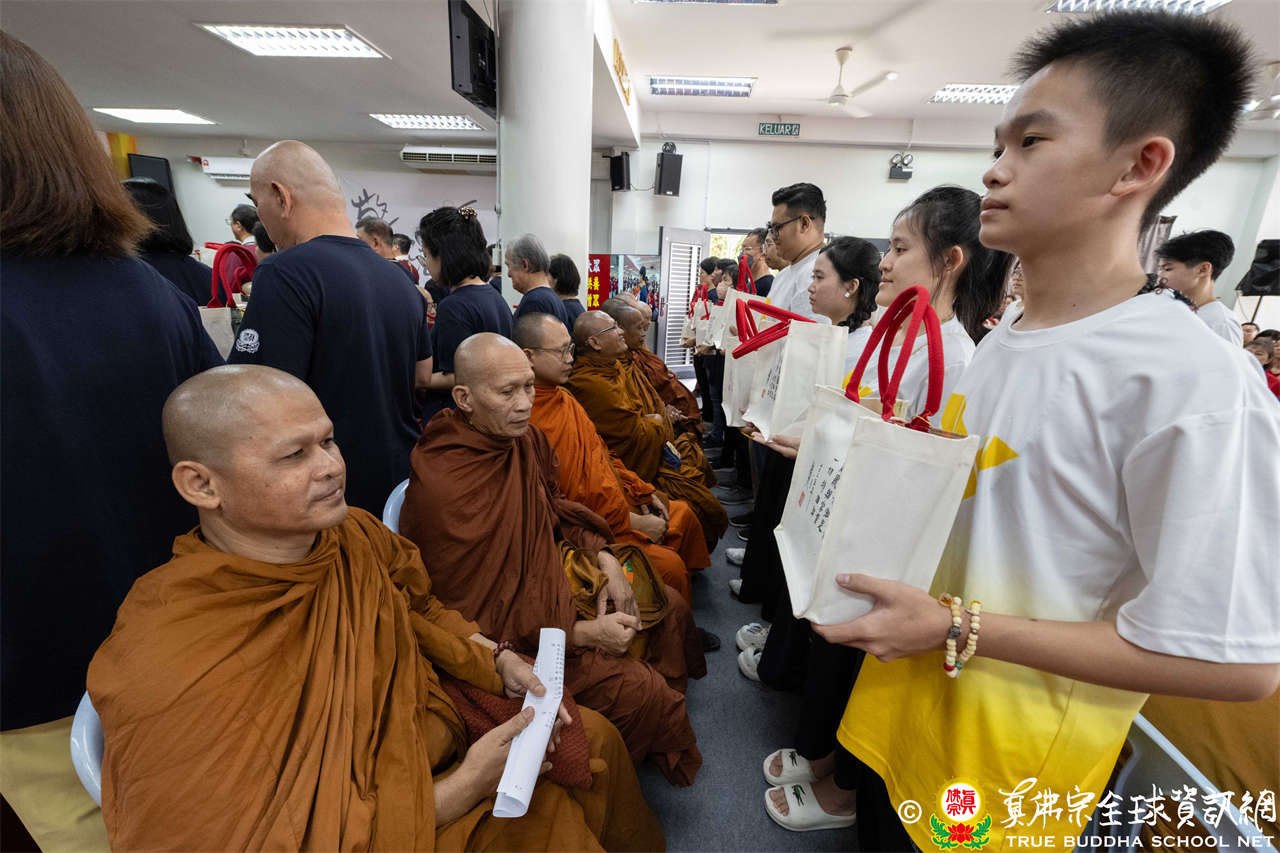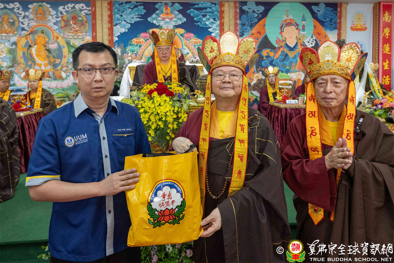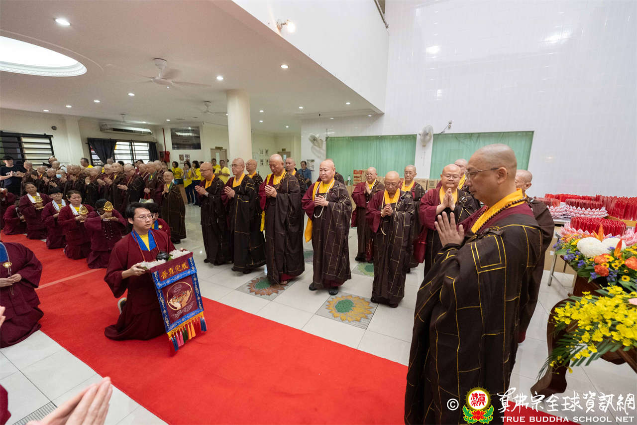 本次供僧大會恭請長老釋蓮栽上師主壇,隨後的「大吉祥天女護摩法會」則由宗委會教育處處長釋蓮訶上師主壇。約30位來自全球的真佛宗上師,及教授師、法師、講師及助教等近百位各級弘法人員共同與會。值得一提的是,與會僧眾涵蓋了南傳、北傳佛教僧人,體現了宗派廣納百川的包容精神。宗委會及馬密總法律顧問羅日良律師、黃月琴律師等貴賓亦出席護持。來自全馬各地的道場負責人和同門紛紛組團參與,35輛旅遊巴士整齊停泊會場,場面莊嚴殊勝。