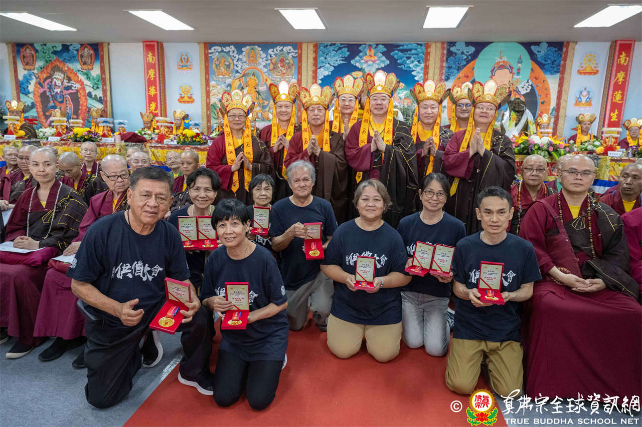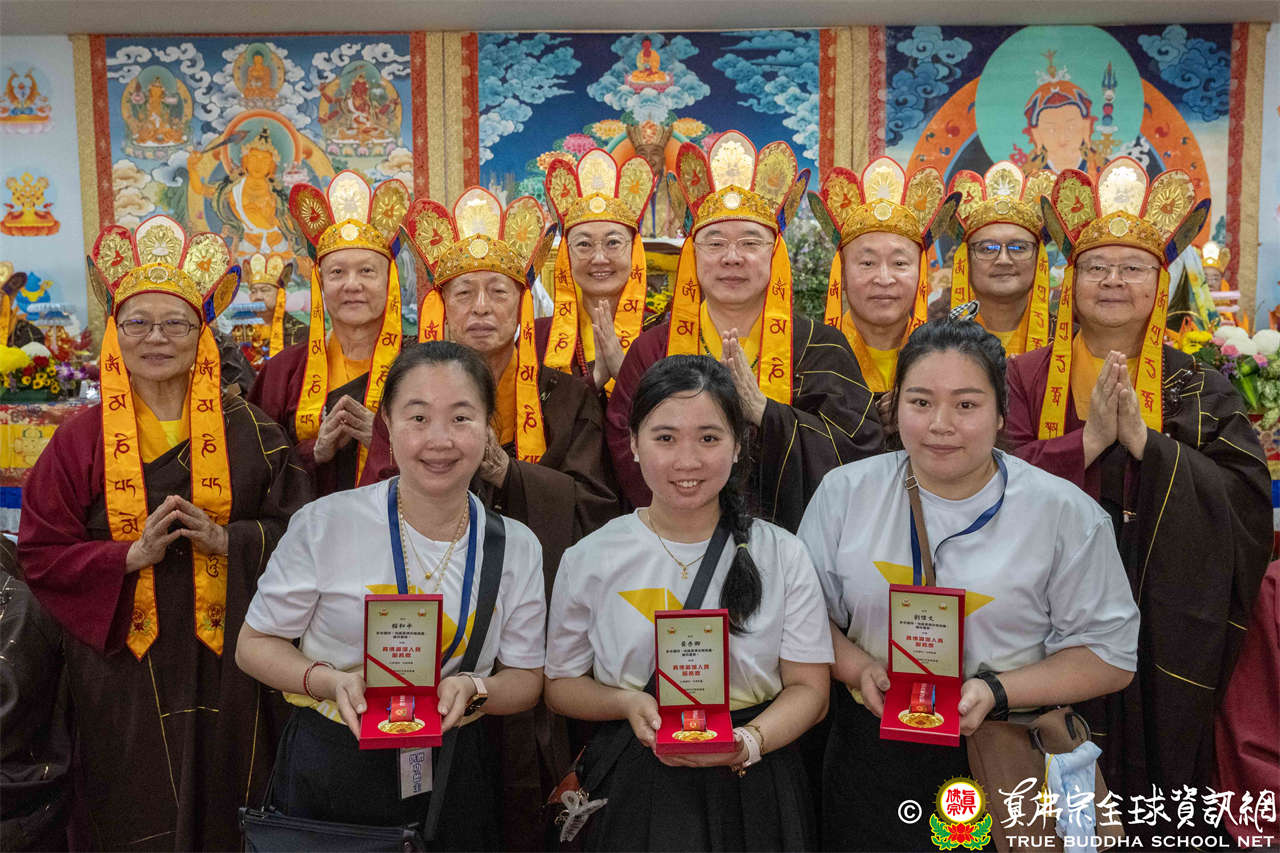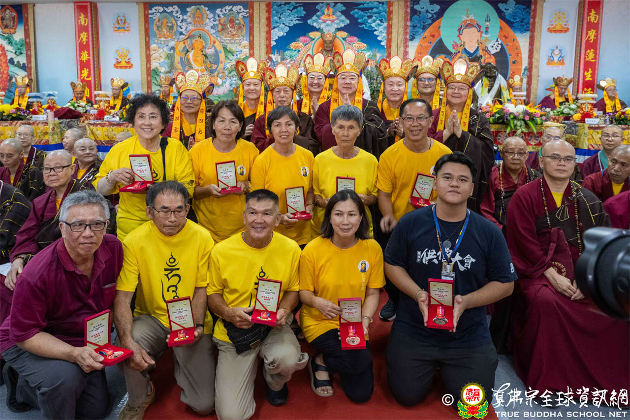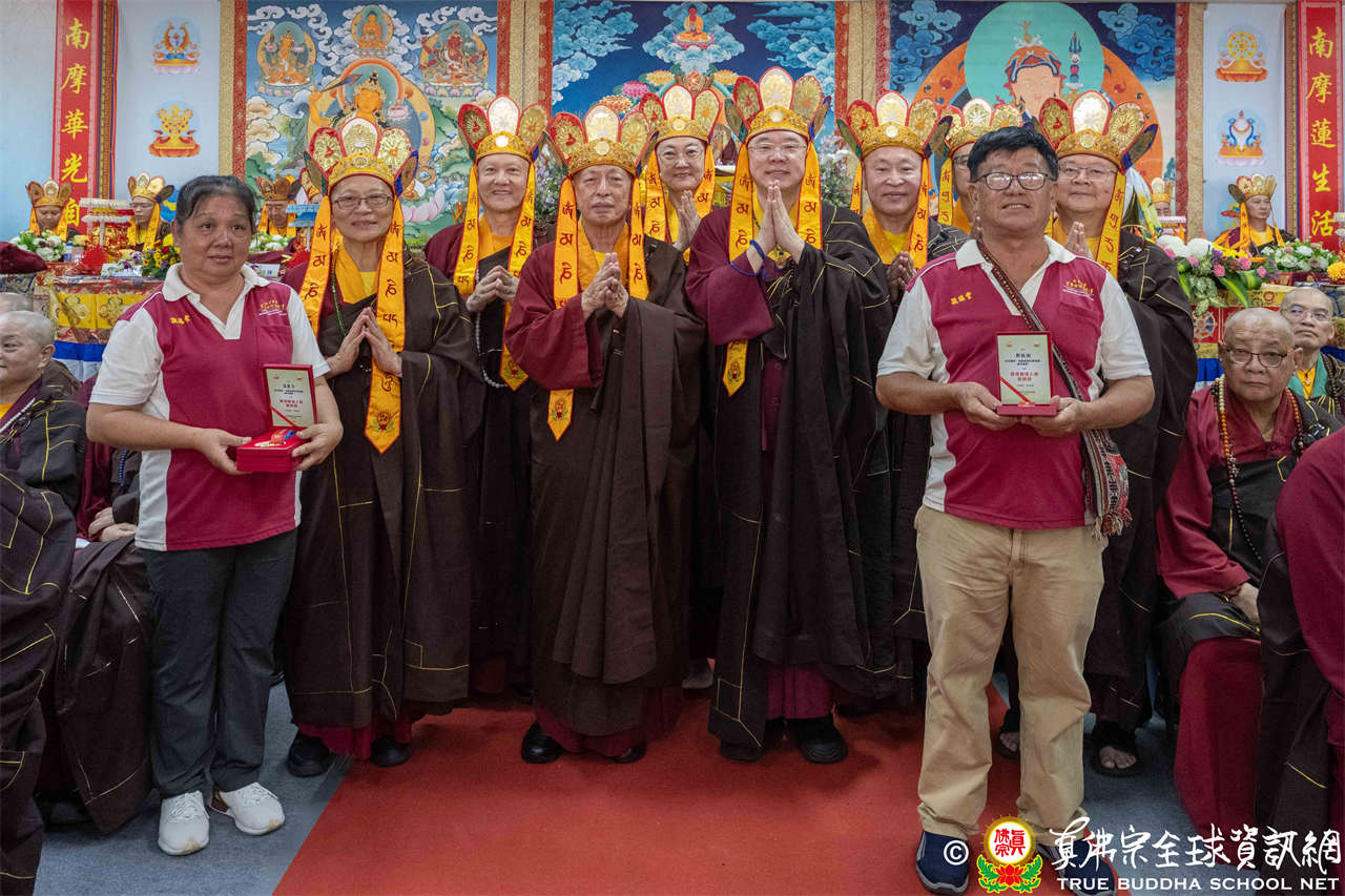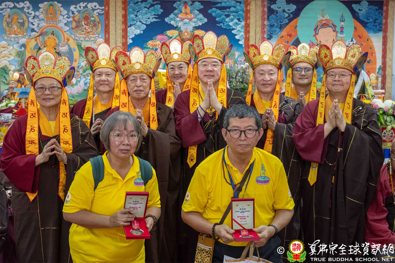 一、頒發獎章典禮:護摩法會開始前,宗委會舉辦了隆重的頒獎典禮,表揚在弘法及對當地社會具有卓越貢獻的真佛僧伽及居士,感恩其為宗派默默付出。