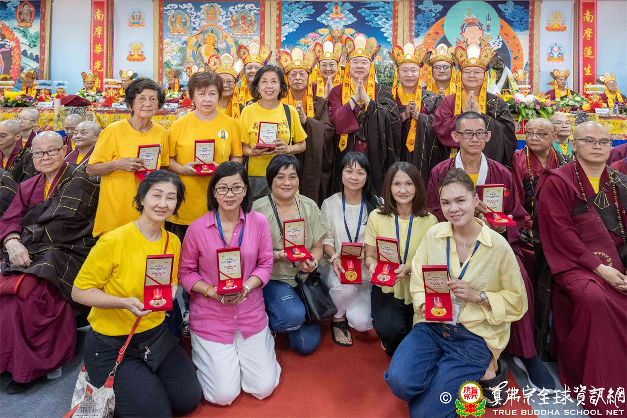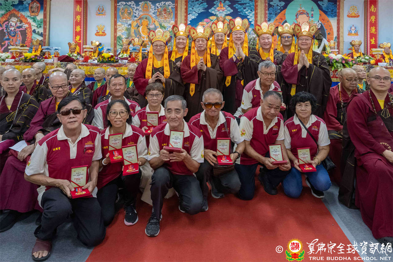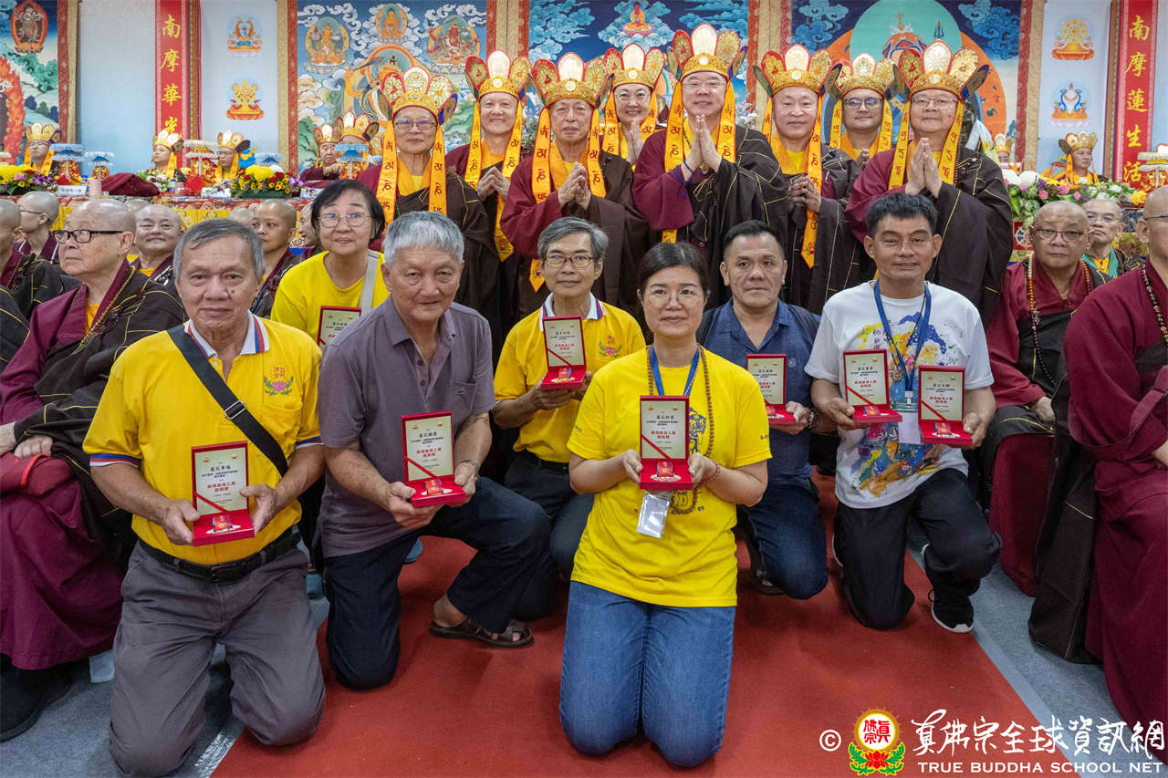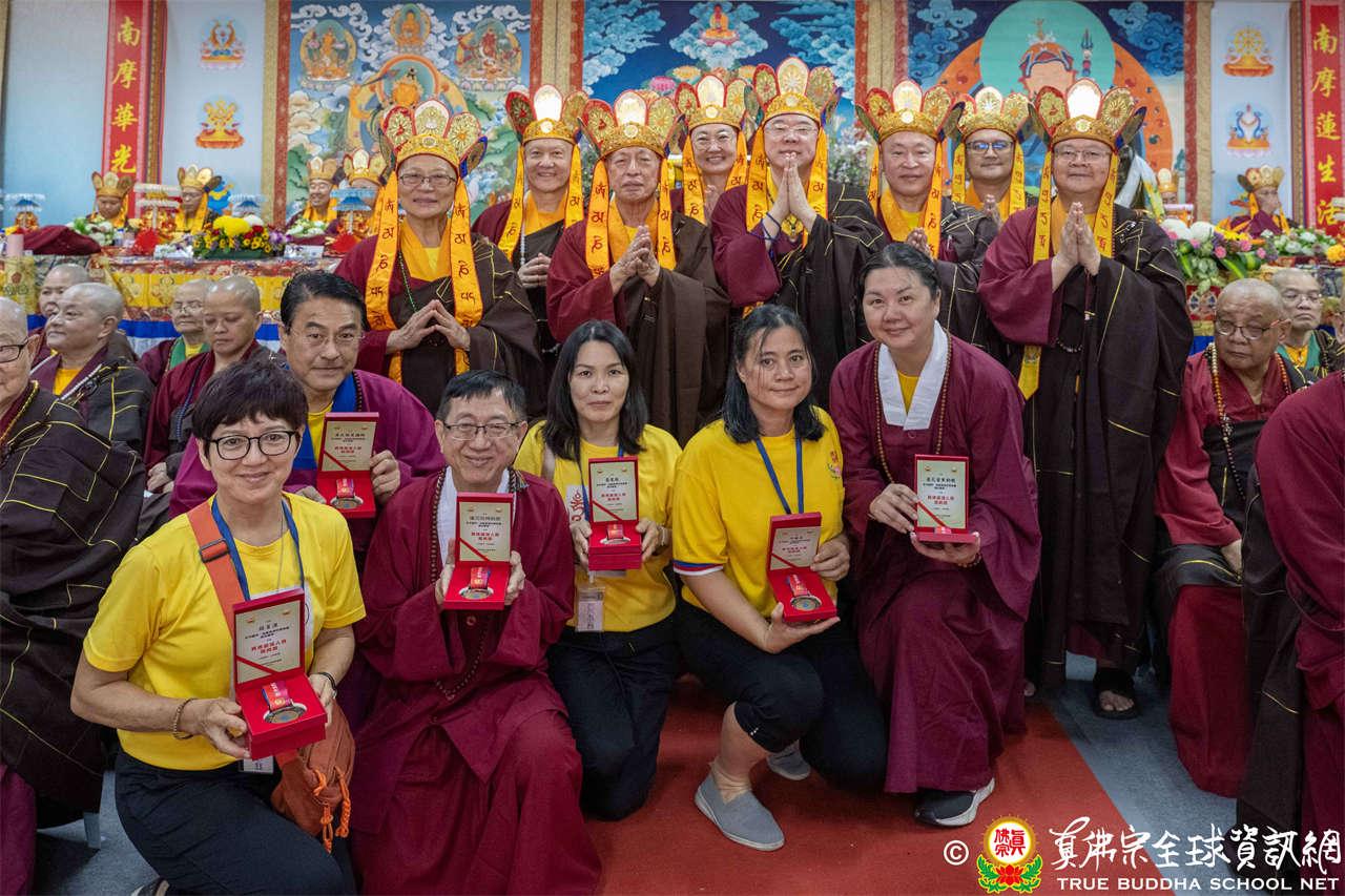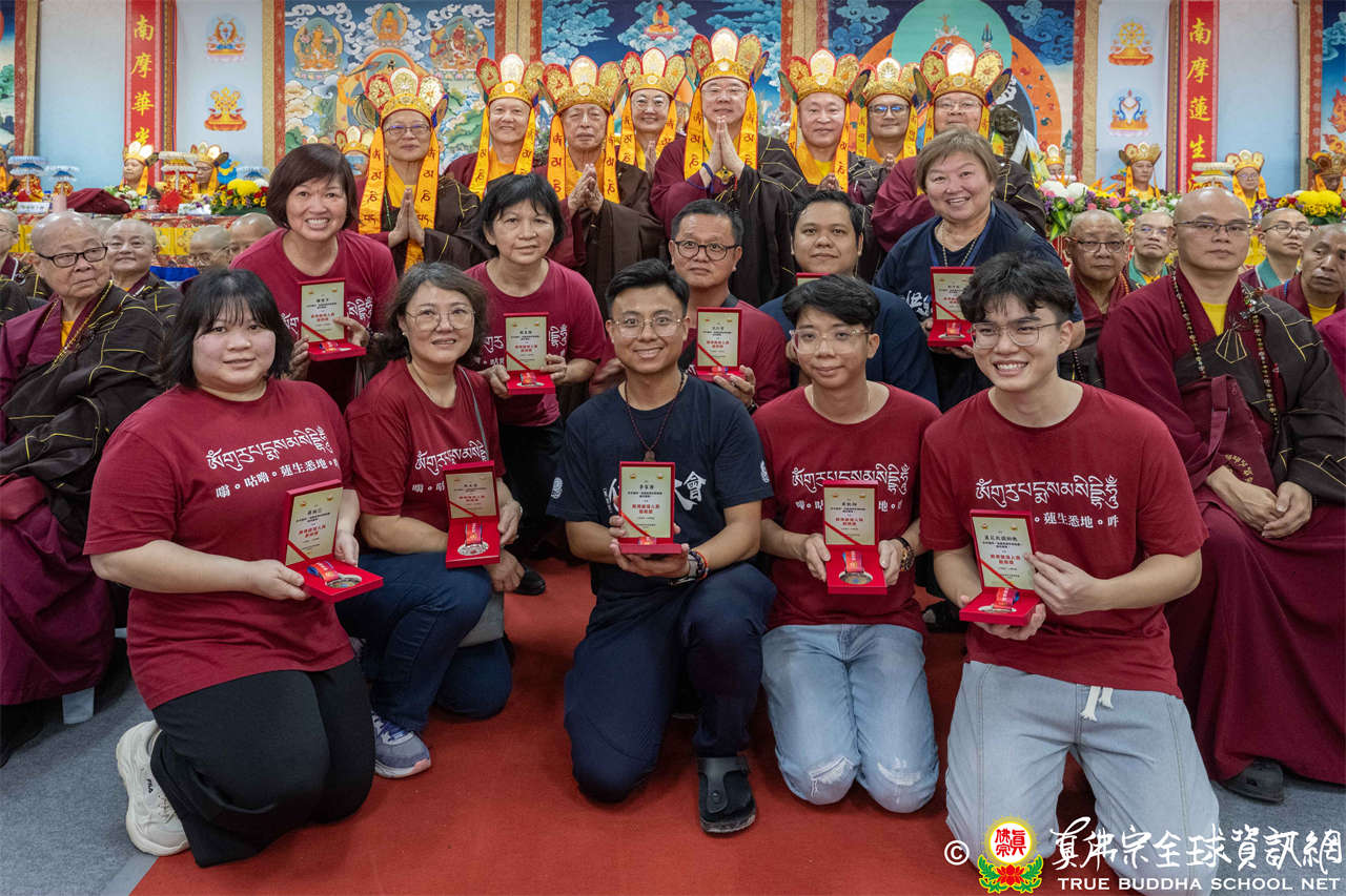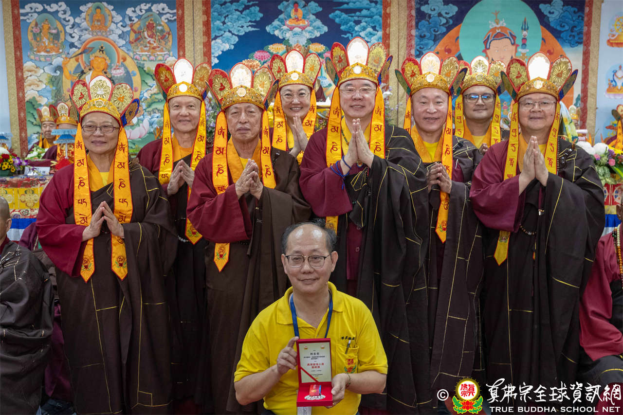 一、頒發獎章典禮:護摩法會開始前,宗委會舉辦了隆重的頒獎典禮,表揚在弘法及對當地社會具有卓越貢獻的真佛僧伽及居士,感恩其為宗派默默付出。