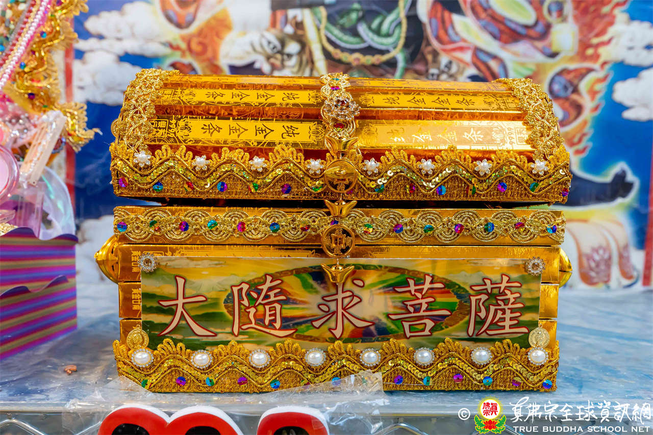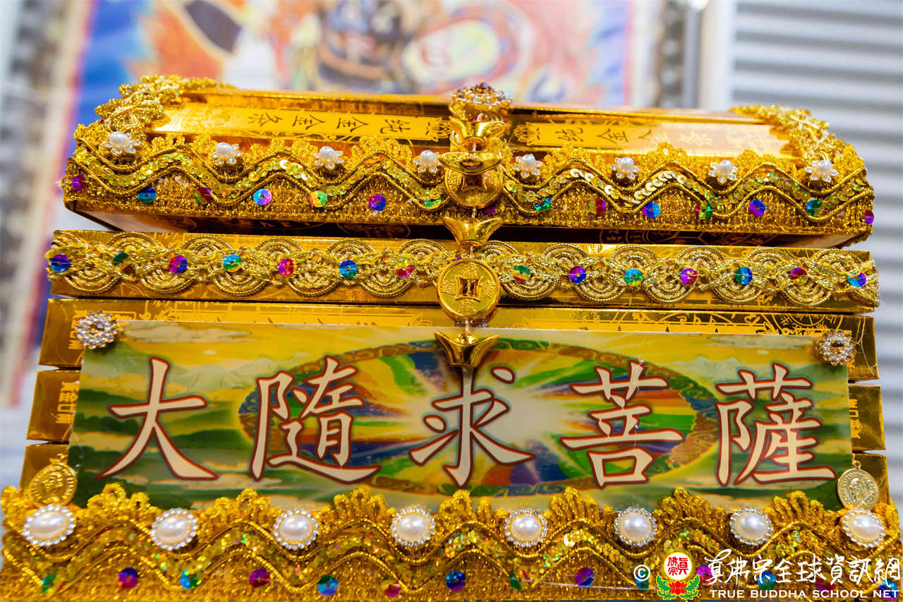 法王強調,大隨求菩薩的功德主要在於這【隨求即得大自在陀羅尼】。經文記載,凡聽聞、受持、讀誦、書寫、或傳佈此咒,能獲得多種功德,例如火不能燒、毒不能中、降伏敵人、破無間地獄、生產安樂、免除王難等。然而,法王提醒大眾,雖然祂能滿眾生願,但行者自身也要衡量,不可隨意祈求。