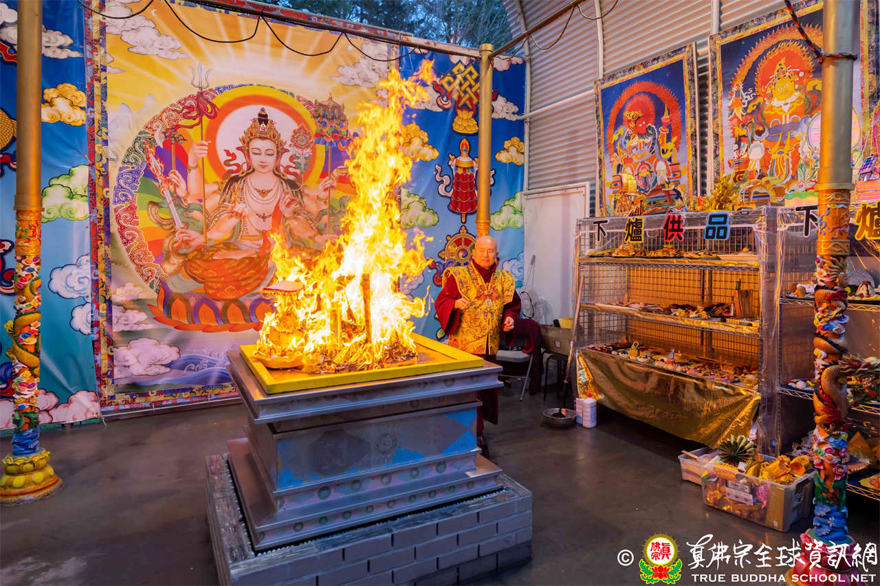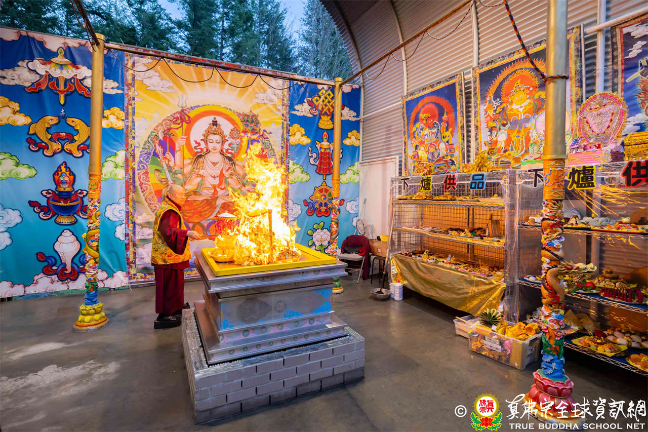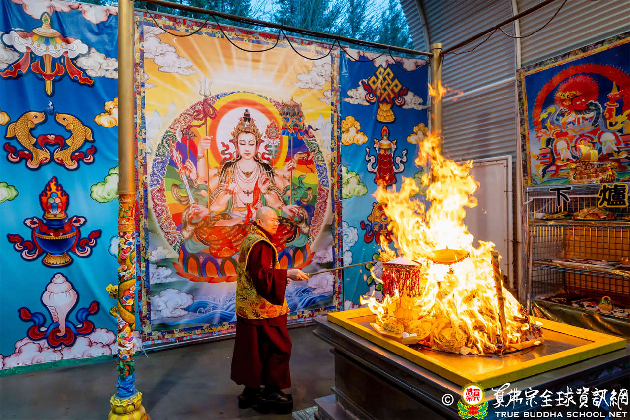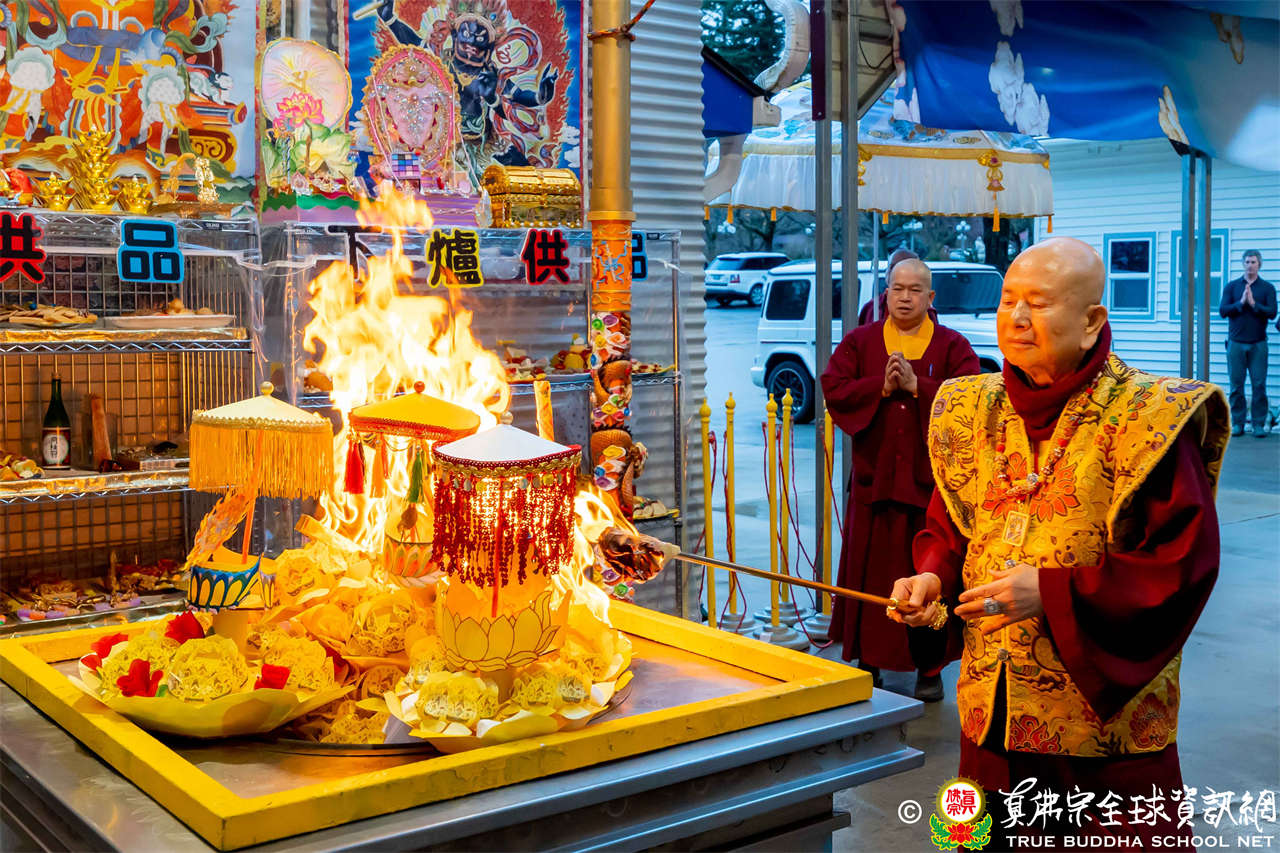 2025年12月7日,西雅圖彩虹雷藏寺恭請聖尊蓮生法王主壇大隨求菩薩。護摩圓滿後,法王向大眾預告,下個禮拜天,12月14日(週日)下午三點(3 PM),將舉行時輪金剛護摩法會。