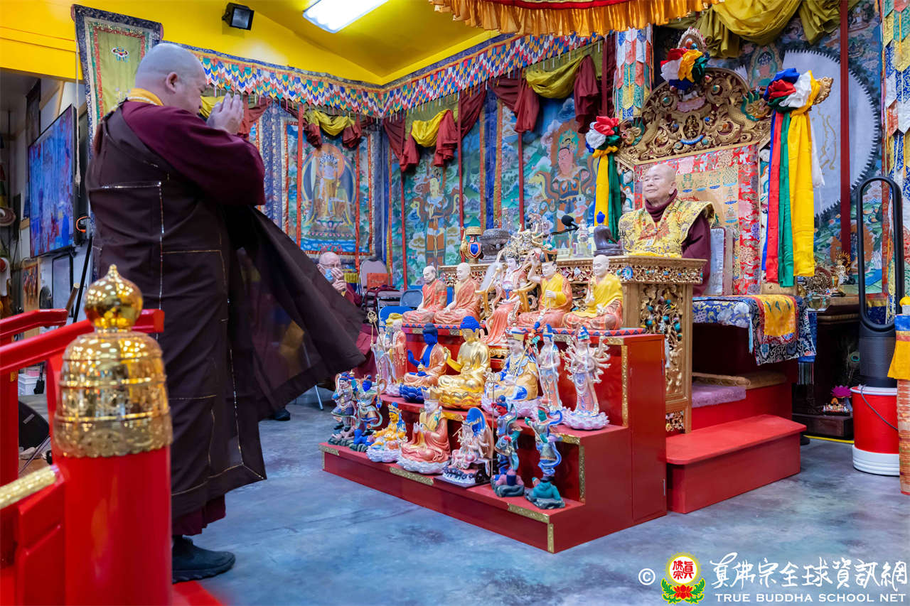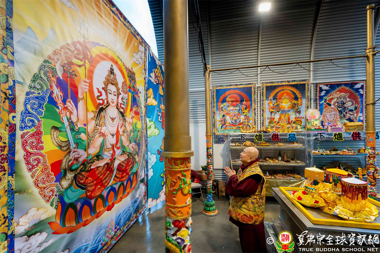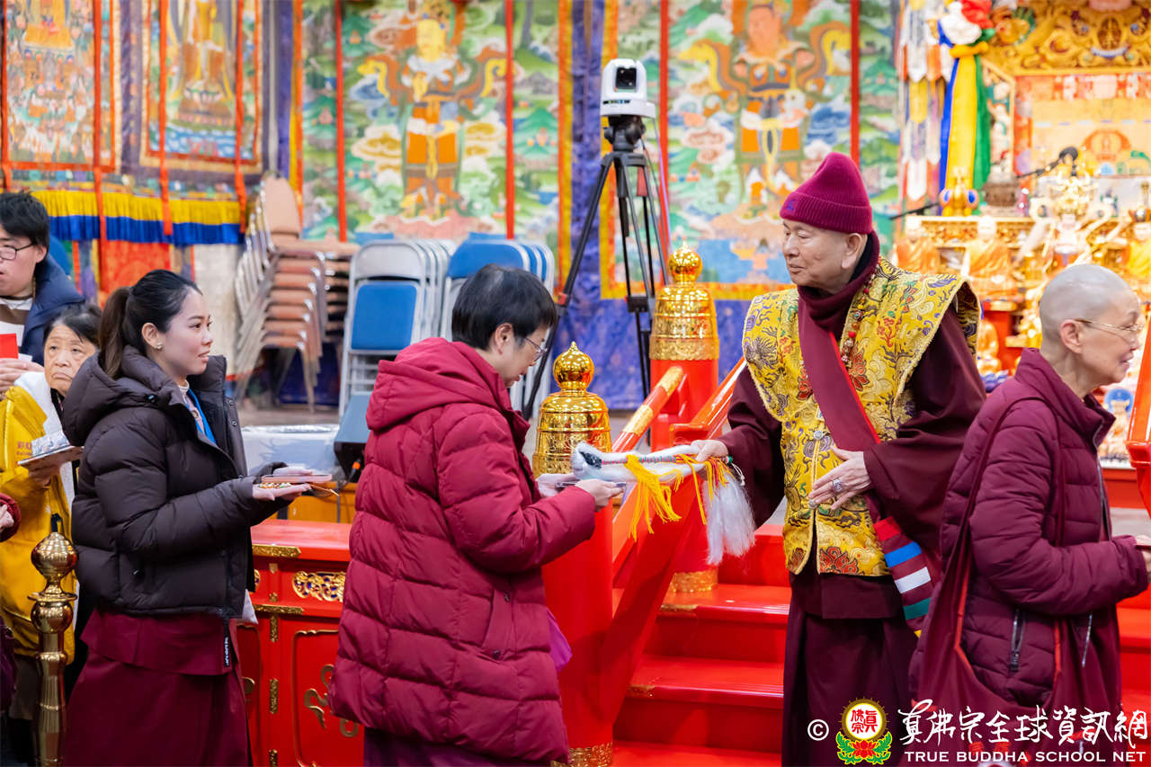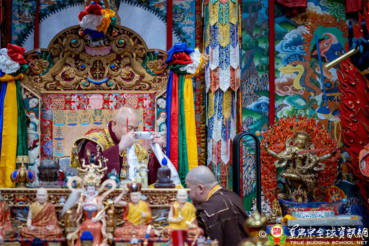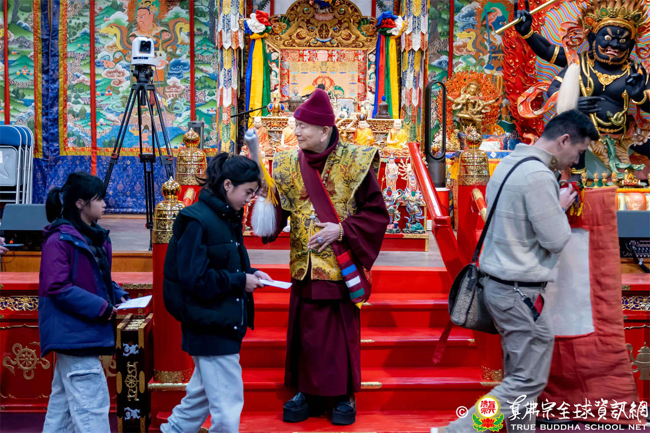 2025年12月7日,西雅圖彩虹雷藏寺恭請聖尊蓮生法王主壇大隨求菩薩。護摩圓滿後,法王向大眾預告,下個禮拜天,12月14日(週日)下午三點(3 PM),將舉行時輪金剛護摩法會。