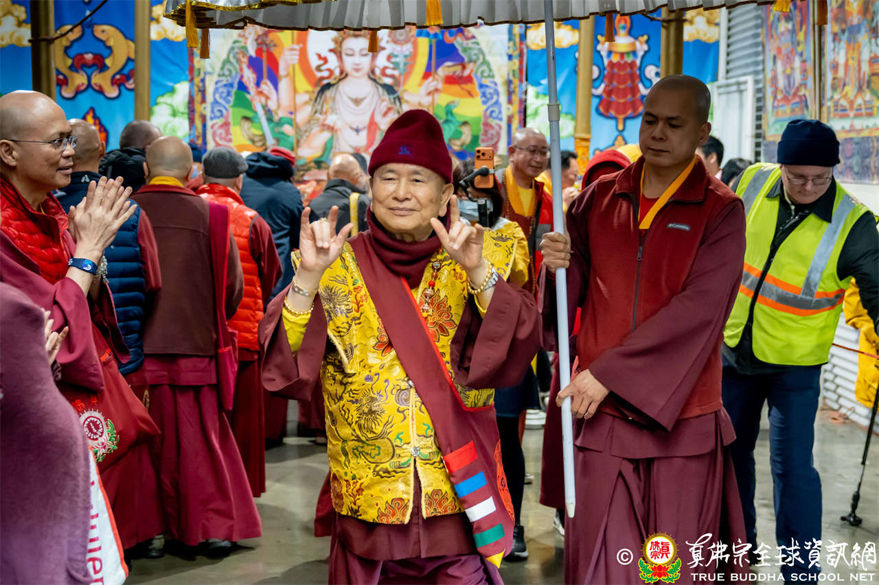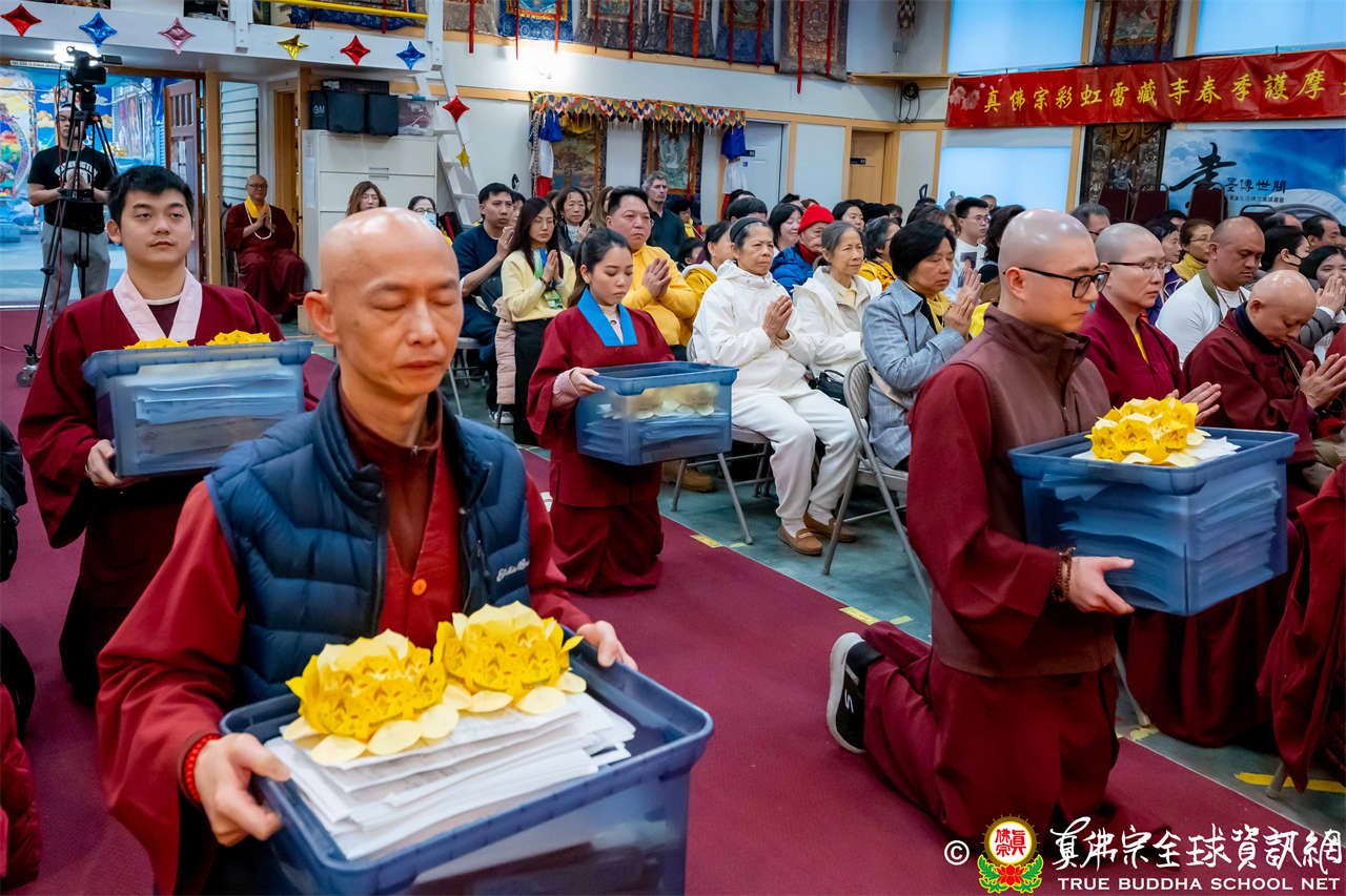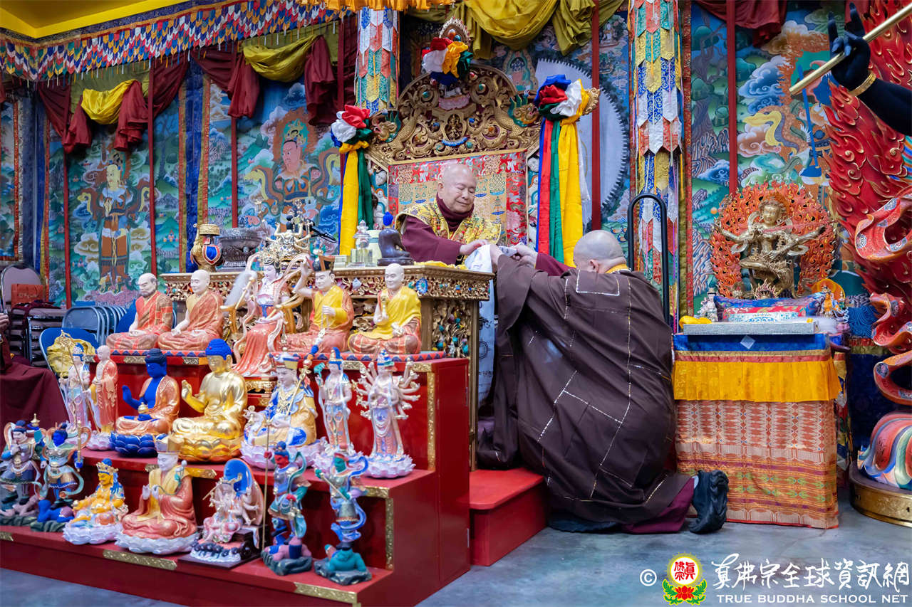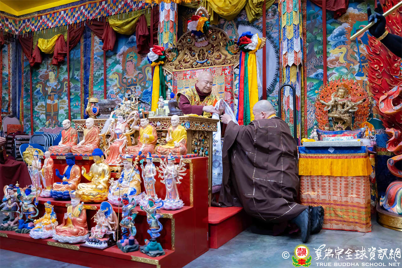 2025年12月7日,西雅圖彩虹雷藏寺恭請聖尊蓮生法王主壇大隨求菩薩。護摩圓滿後,法王向大眾預告,下個禮拜天,12月14日(週日)下午三點(3 PM),將舉行時輪金剛護摩法會。