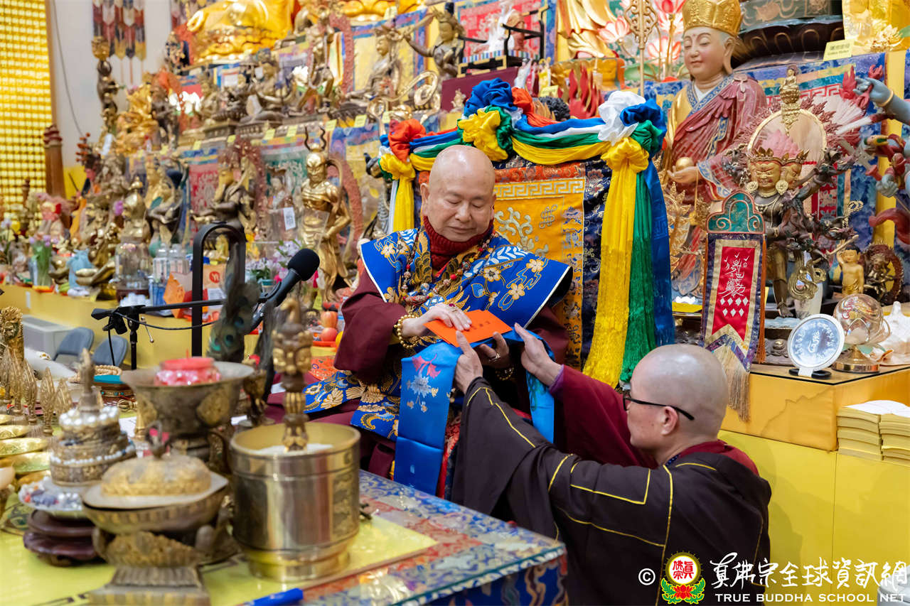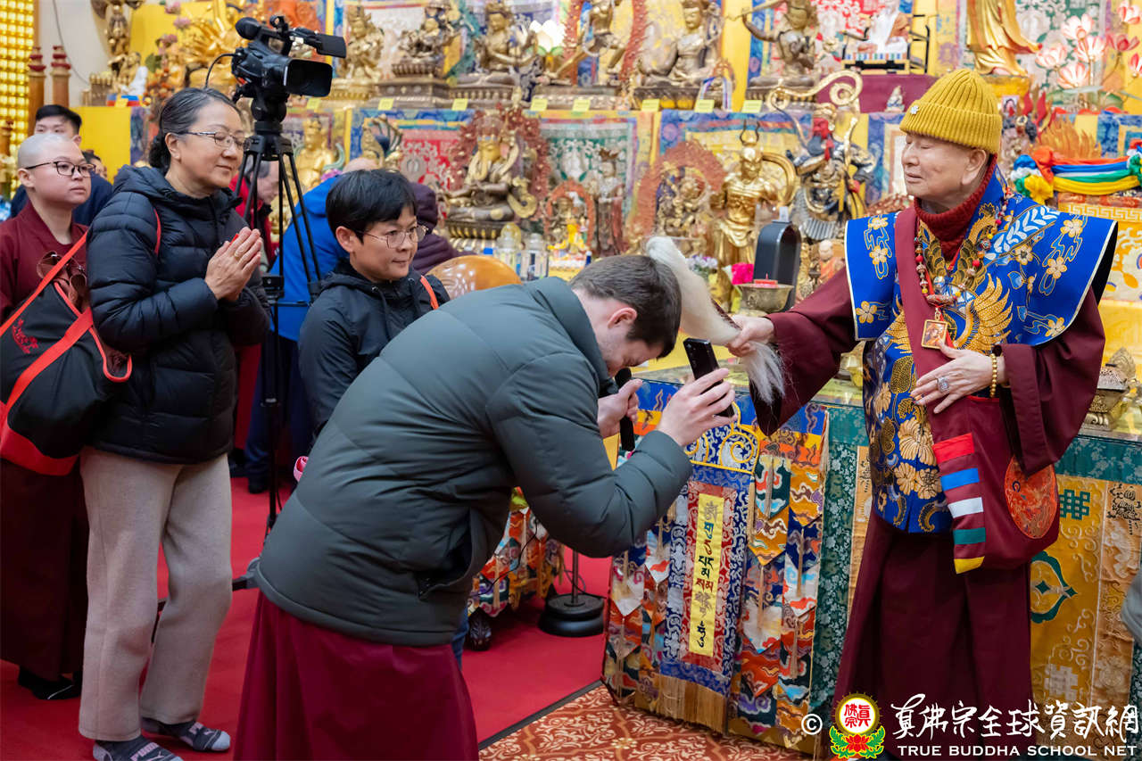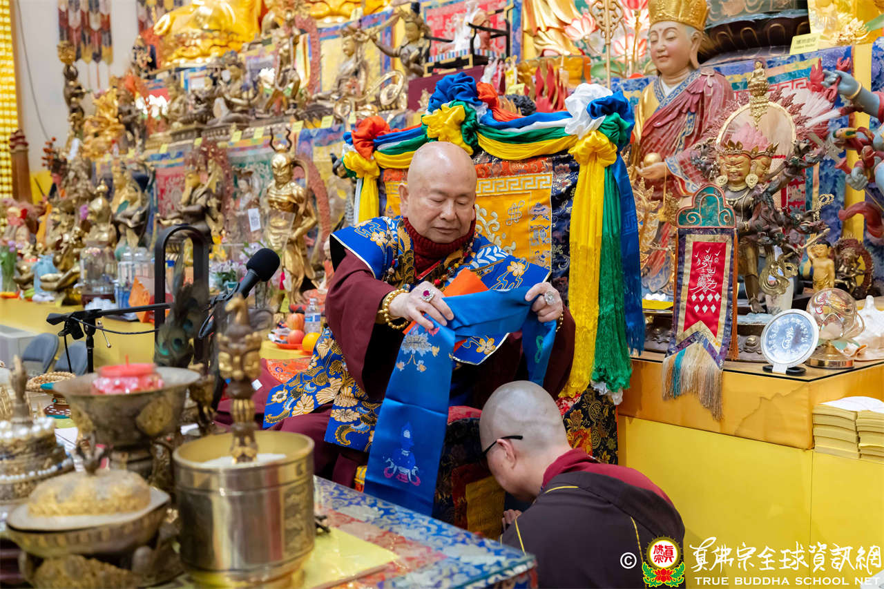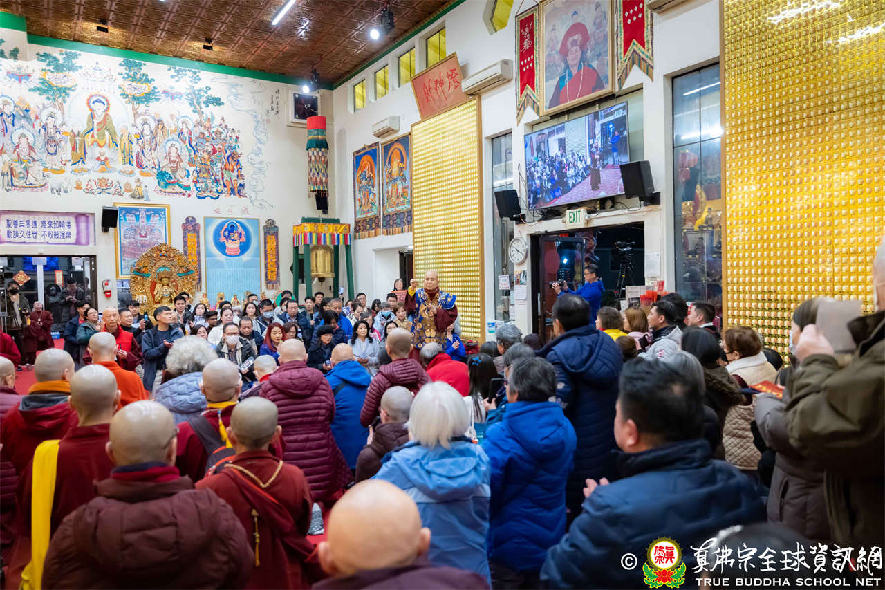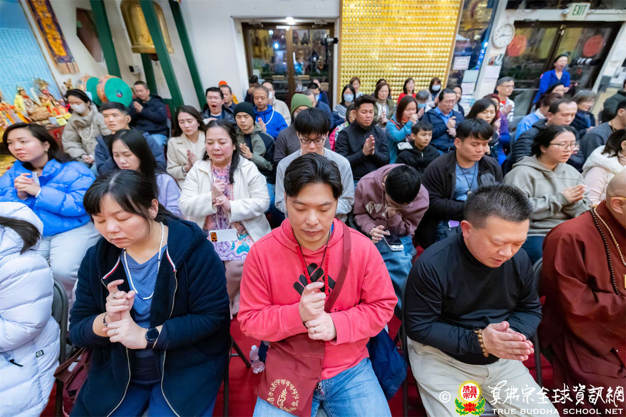 每逢周六晚上,西雅圖雷藏寺總是燈火通明。2026年1月17日,大家在晚餐過後,早早來到大雄寶殿裡,坐在座位上,期待着與佛同修。隨後,在莊嚴的蓮花童子心咒梵唱中,迎來了根本傳承上師聖尊蓮生活佛盧勝彥。聖尊步履安詳,慈視大眾,進入大殿,升於法座上,主持藥師佛本尊法同修。