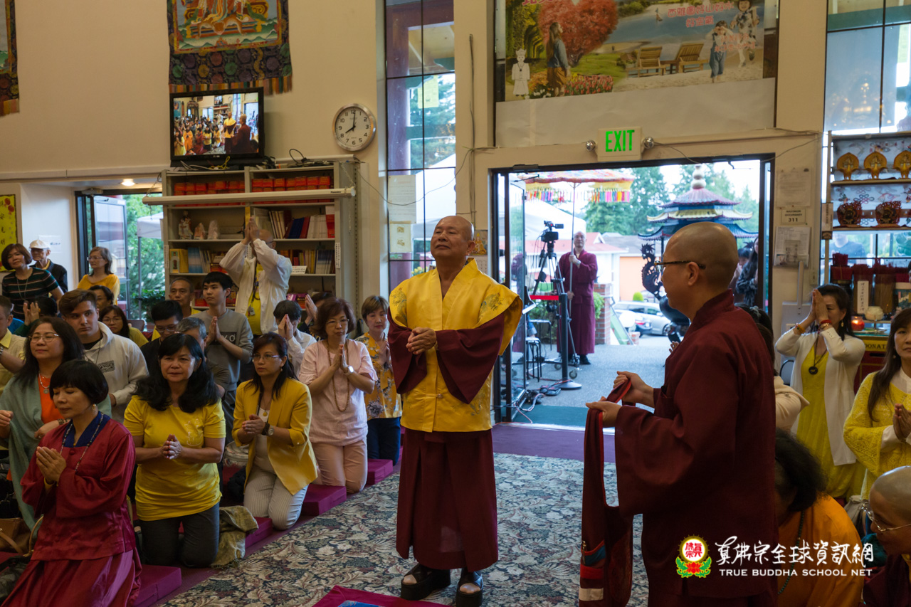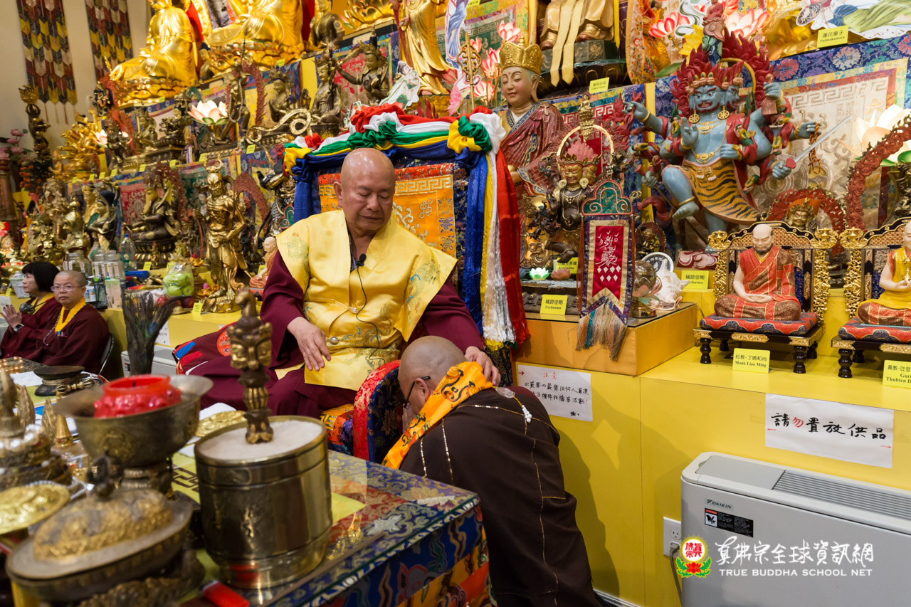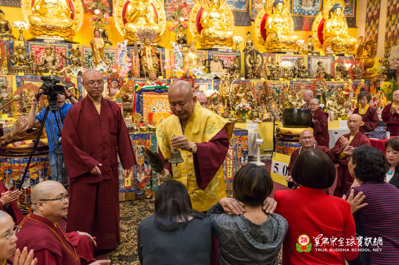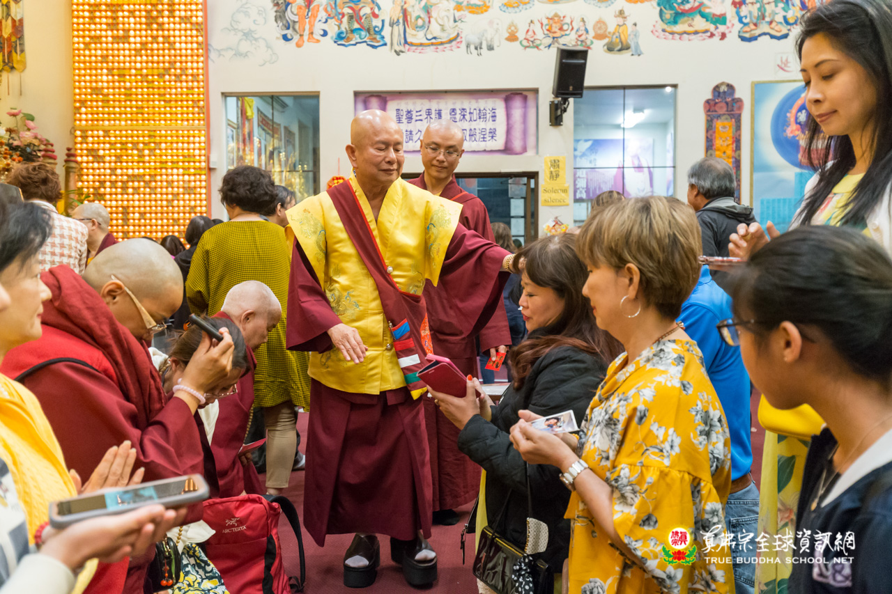 在精采的開示結束後,聖尊為多位信眾們賜授皈依灌頂,並加持大悲咒水、開光佛像。臨行前,聖尊依舊慈悲的為大眾摩頂加持。隨著莊嚴的送師隊伍,恭送聖尊回到了真佛密苑,弘法人員及弟子們,全體向根本上師跪拜頂禮佛足前,感謝聖尊的教導傳授。在溫柔的月光下,結束這法益充盈的夜晚。