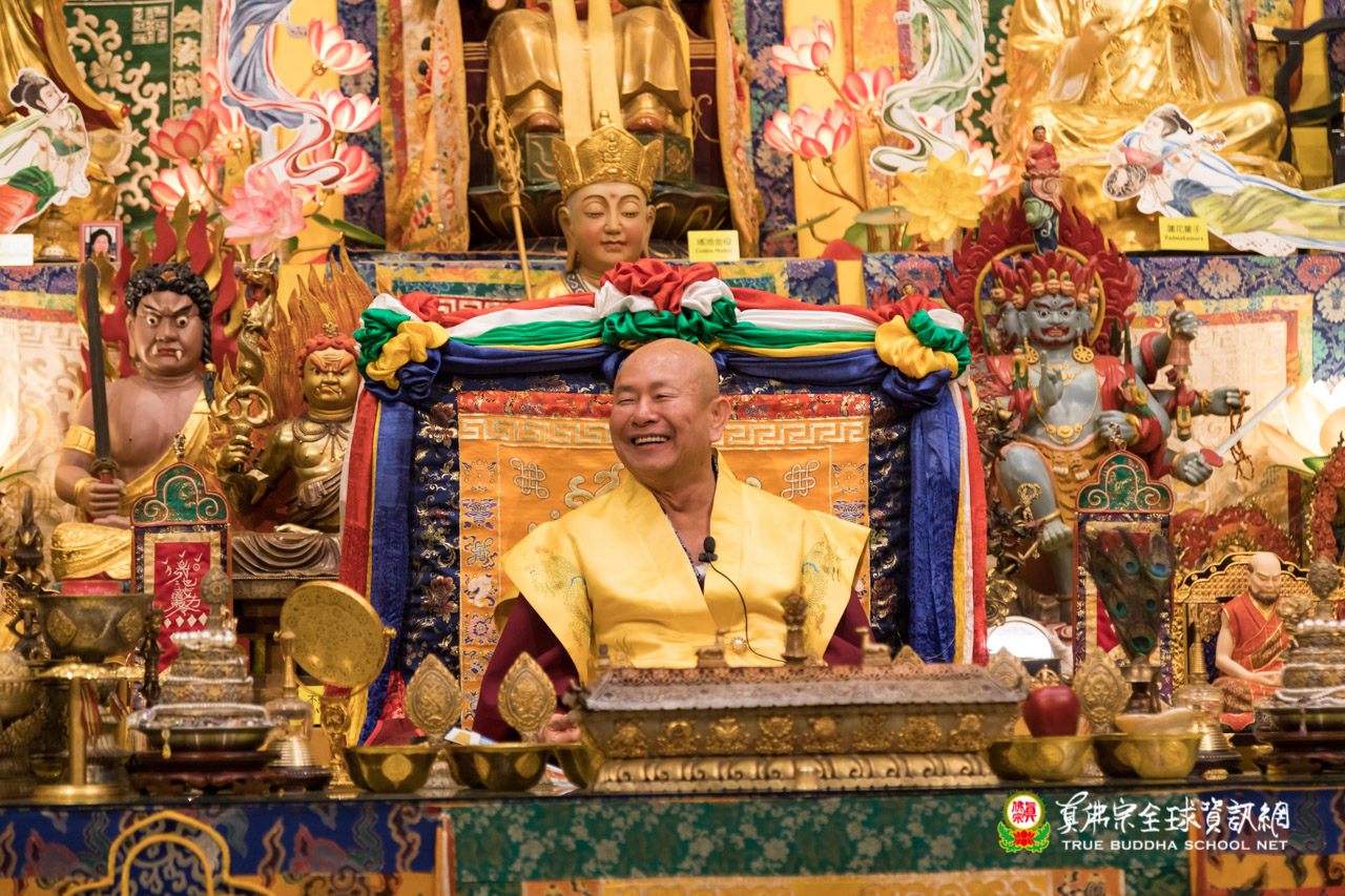 聖尊又從笑話中延伸感嘆道,學佛是很困難的,因為世間錢、地位、美色的誘惑力太大,真正修行的人要認清楚、要遠離,守自己的本份,好好修行才是最重要。密勒日巴祖師能成就,也是離開這世間的錢、地位、美色等等,最後的遺囑,只留下身上的衣服,代表身莊嚴,給祂的弟子,其他什麼都沒有。修行很難,佛教是以苦為出發點,因為人間都是苦,無論是富有或美色都是苦,最後,聖尊勉勵大家要好好的修。