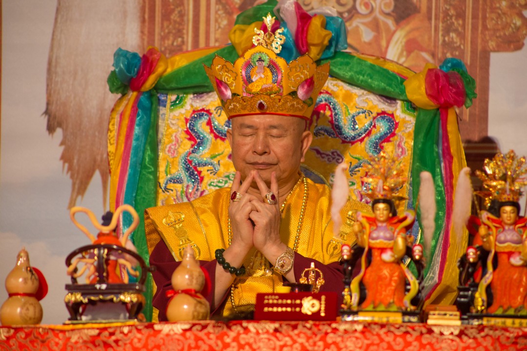《真佛宗》蓮生活佛盧勝彥法王 於2018年3月4日假〈黃帝雷藏寺〉主持 「金母、地母、天上聖母息災祈福增益超度新春接財神水供大法會」,首傳及賜授「金面金母不共大法」灌頂。