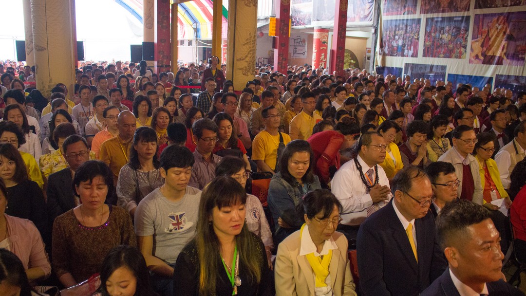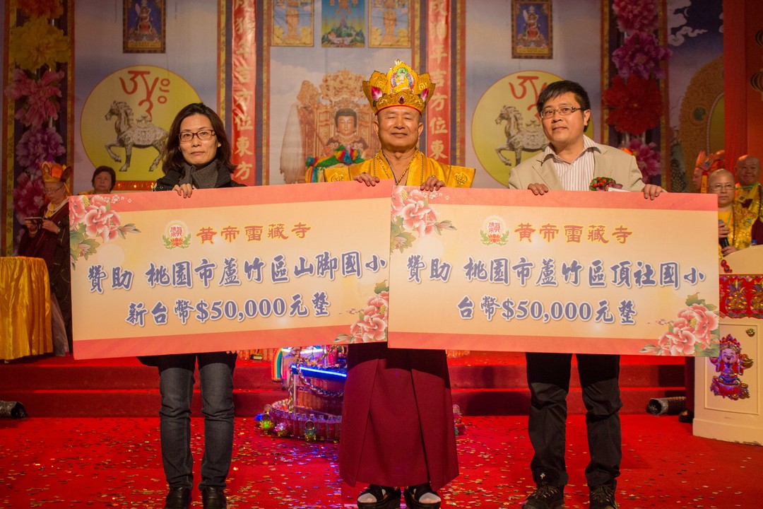 法王勉勵弟子不僅要修出世的佛法,也要兼顧世俗事務,如同國民黨黨主席吳敦義說的話:「顧佛祖,也要顧肚子。」(台語),法王慈悲於法座上賜福於眾人,祝福台灣經濟起飛,大家共富,與會的大眾皆歡喜讚嘆。