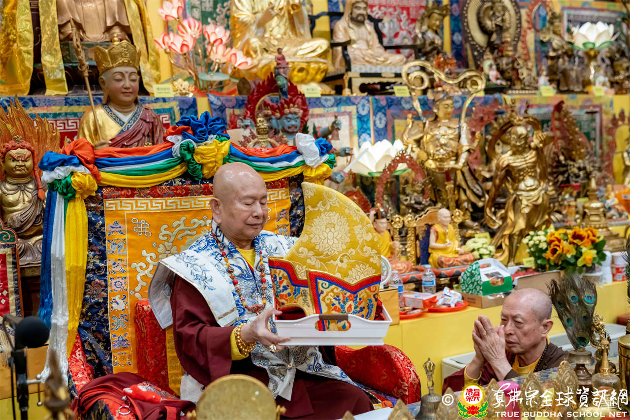 真佛宗長老、上師、教授師、法師全體僧眾,及講師、助教、堂主、同門等全球真佛在家弟子,包含了現場與透過網路的全球連線,大眾一同觀想真佛宗傳承、唸蓮花童子心咒、唱誦祈請蓮生活佛加持文、觀看宗委會製作的聖尊出家40週年紀念影片,然後一齊長跪合掌,虔誠對根本上師獻上心供,並恭誦誓願文,誓願盡形壽永遠以根本上師為一皈依,守護真佛傳承法脈,修持真佛密法,恪守戒律,明心見性,荷擔如來重任,以大慈悲心,廣度眾生。