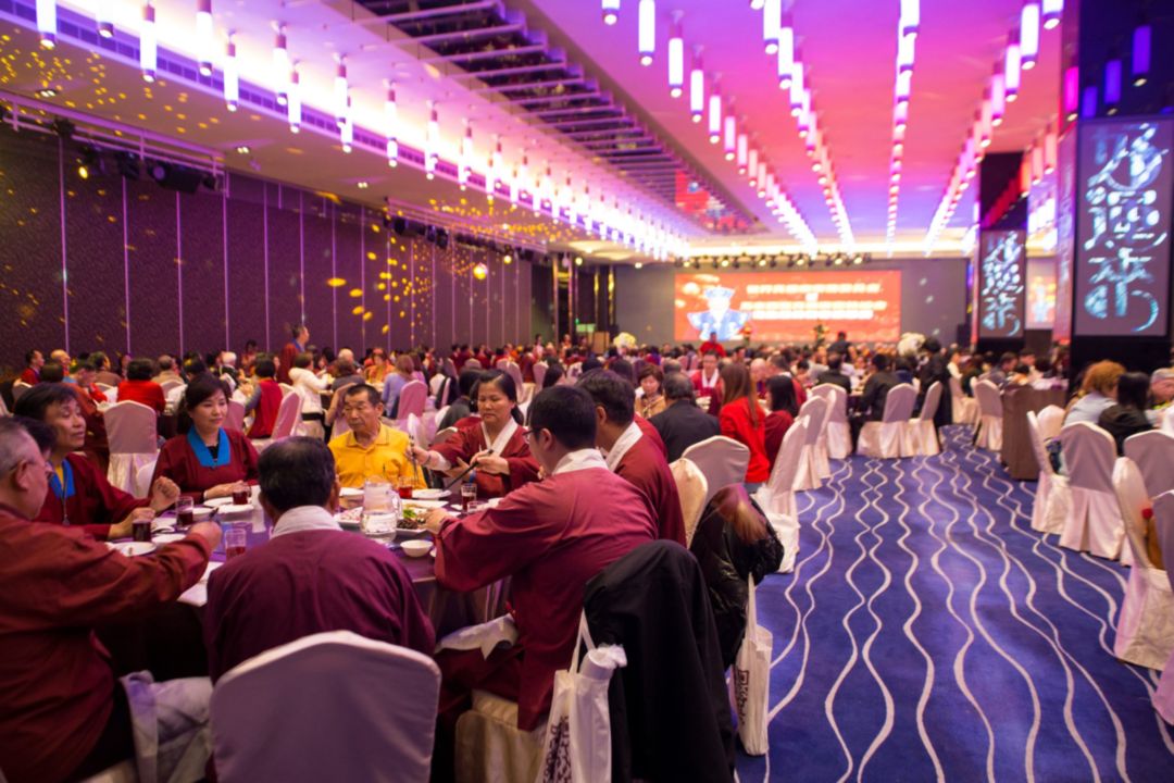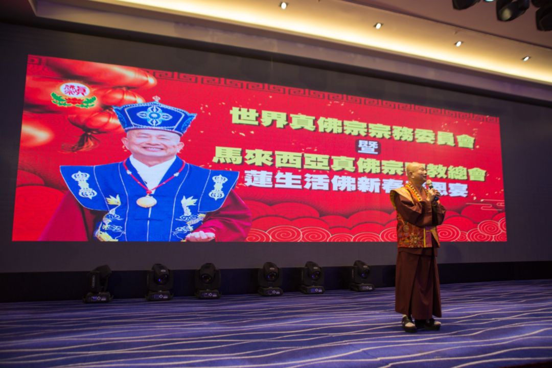 【TBSN報導】2018年2月23日晚上,經過了一天充實的研習會及聯誼會,世界真佛宗宗務委員會、馬來西亞密教總會聯辦新春感恩宴,參與的包括今天出席研習及聯誼會的眾等及馬來西亞同門,席開46桌。晚會節目緊湊,包含極器樂團的電子二胡演奏、大馬精英隊的開場舞、大馬陽光舞供團、印尼同門代表演唱印尼名曲「BANGAWAN SOLO」、歌曲演唱,播放短片書展及師尊去年12月佛駕大馬之紀念短片,熱鬧而感人。