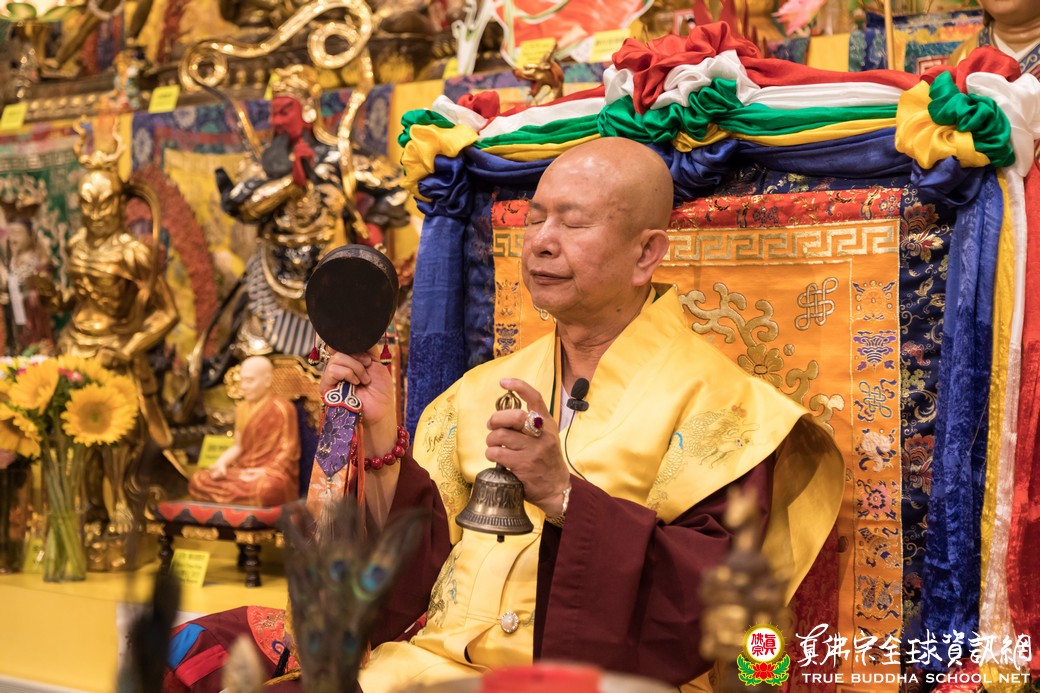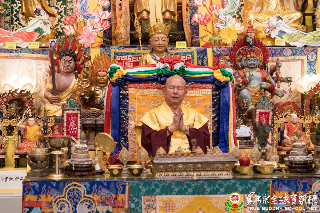 今晚祖廟周六同修的是準提佛母本尊法。咒音響起,莊嚴的迎師隊前往真佛密苑恭迎聖尊蓮生活佛盧勝彥主壇同修暨講授道果。