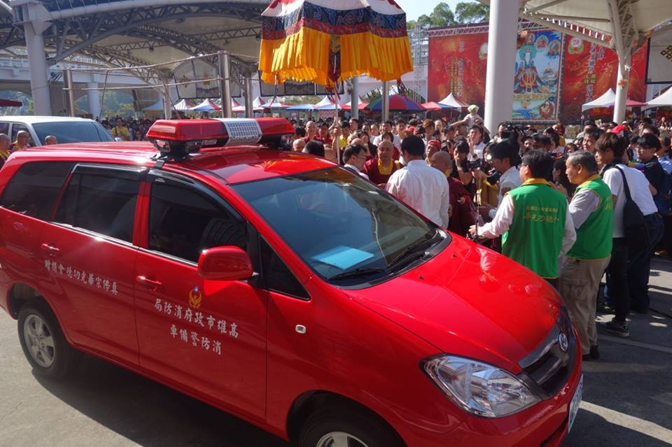 下午三時,法會正式開始,鐘鼓齊鳴,在虔誠恭請蓮生活佛高陞法王座後,首先舉行真佛宗台灣區「華光功德會」捐贈警備車給高雄消防局的捐贈儀式。高雄市消防局分隊長洪聖儀分隊長並致詞,表達對《真佛宗》創辦人蓮生活佛及「華光功德會」的感謝之意!