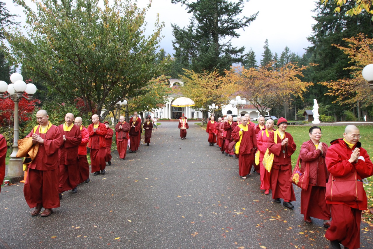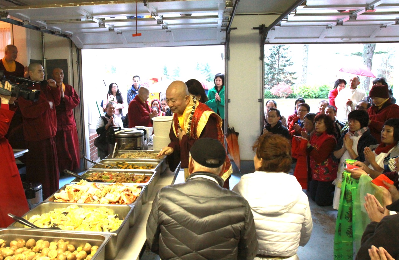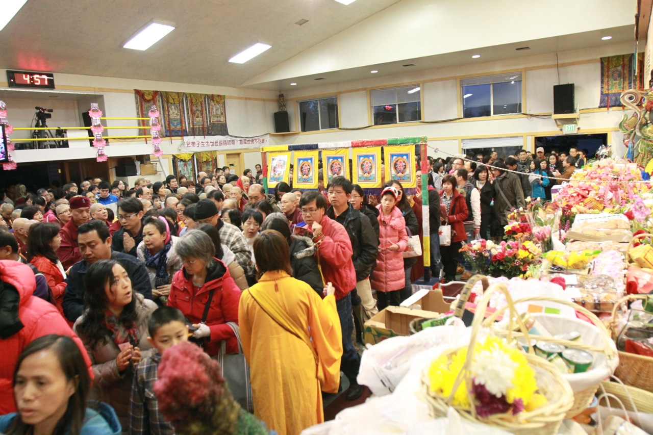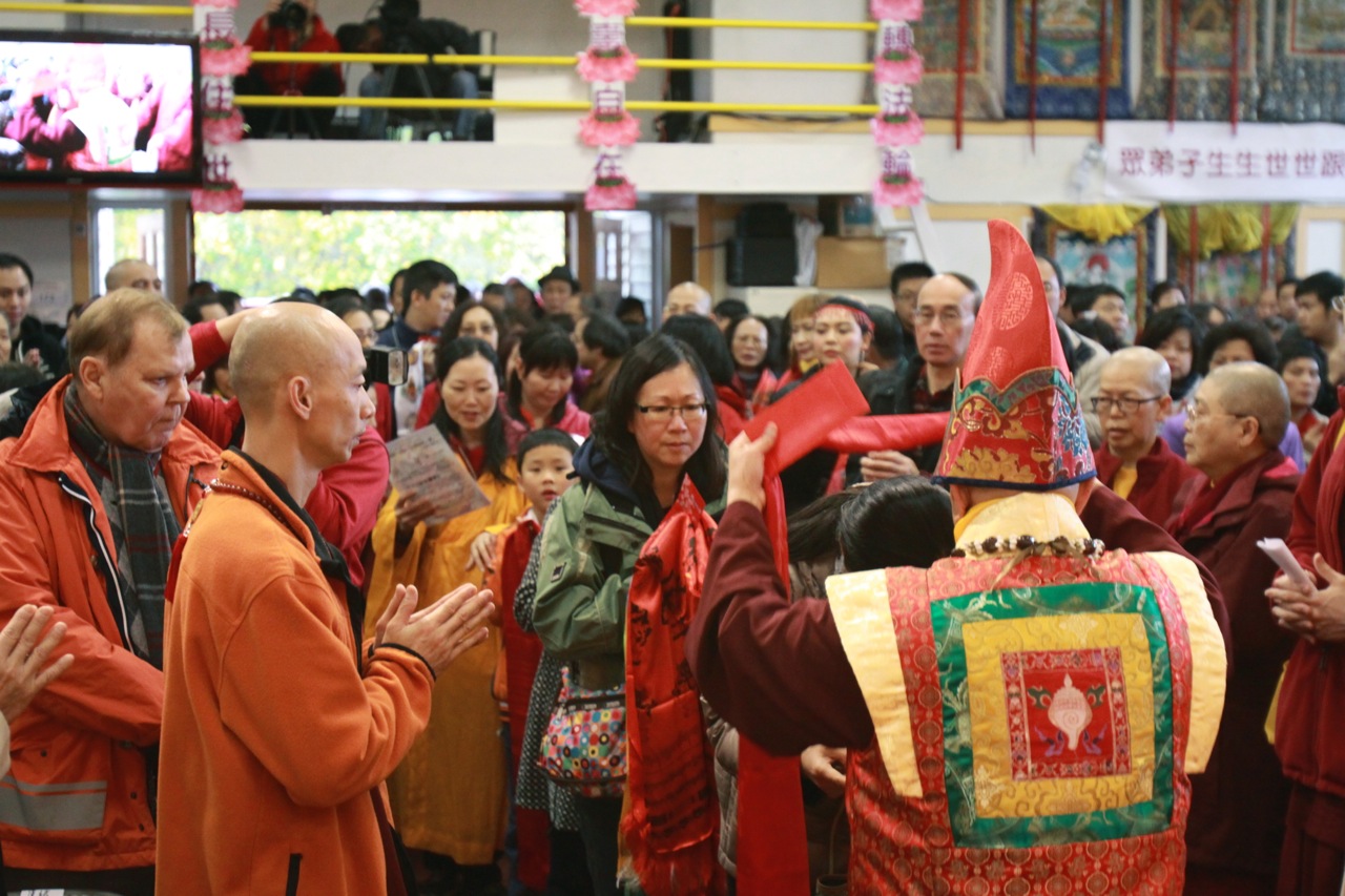 當蓮生活佛座車抵達雷藏寺後,立即響起如雷掌聲及歡呼聲。蓮生活佛並在真佛宗「華光功德會」理事長李春陽的陪同下,與受贈警備車的高雄消防局洪聖儀分隊長及三位隊員合影留念。在沈寂數月後的〈台灣雷藏寺〉,今日再度湧進上萬人潮,同門互道「好久不見」的問候聲此次彼落,報名處、流通處和廣場各攤位間,到處可見朝聖人潮。許多不見的雷藏寺密壇金光閃耀,令人法喜充滿。