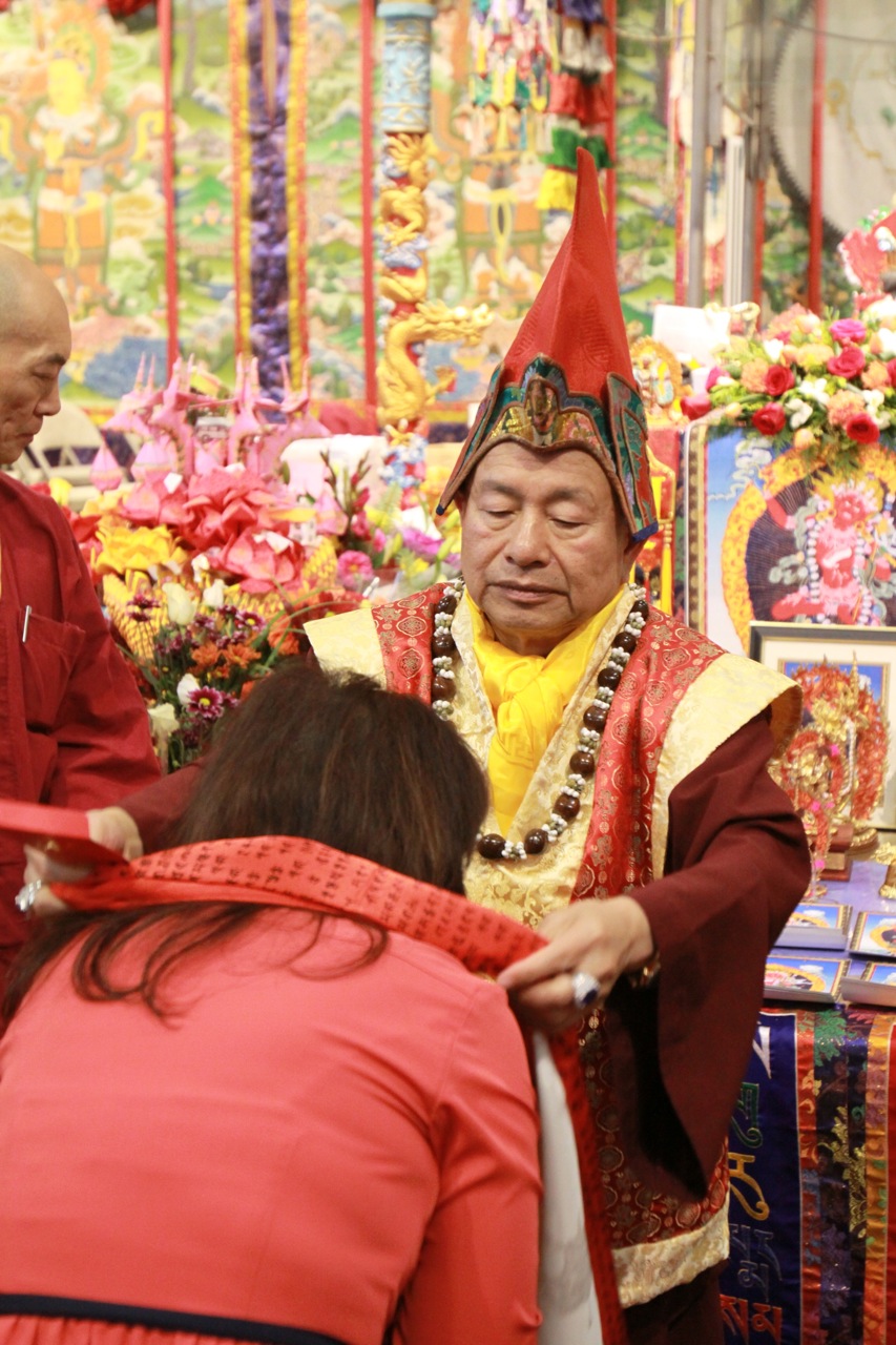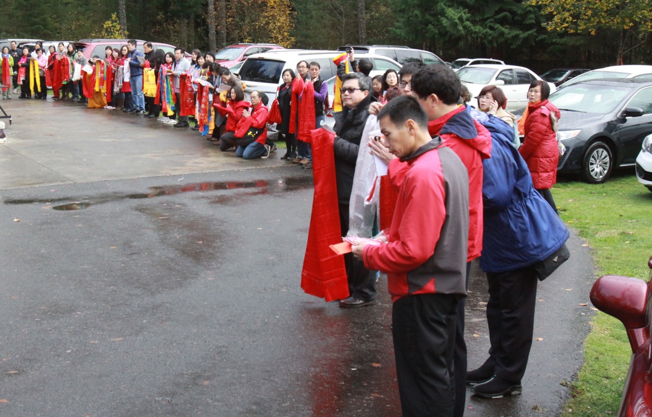 接著,由釋蓮哲金剛上師代表向蓮生活佛敬獻哈達及供養,以表最高敬意。護摩後,蓮生活佛開示:此次返台,搭乘的長榮班機,楊機長正是真佛宗弟子,而服務的空中小姐,也是姓楊,也是真佛宗的弟子。