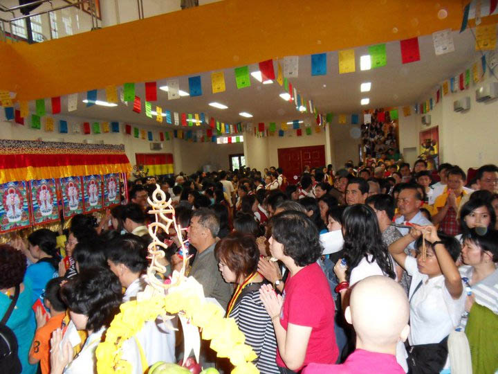 活佛首先賜墨寶給棉蘭雷藏寺與蘇北雷藏寺。之後活佛被迎請大殿,加持開光後理事長蓮花明珠致歡迎詞,蓮惺教授師則講述:大殿主尊當初大過大門,移不進來安座,後來焚香祝禱唸上師心咒,竟奇蹟似的可以移進來。棉蘭雷藏寺主尊蓮花童子高達約七米,是本宗道場最高金身之冠。