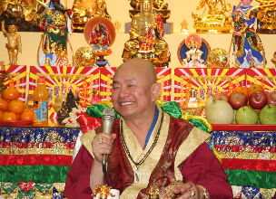 師尊、師母一行人於下午四時蒞臨廣喜堂,堂內外有500多位虔敬的弟子,滿喜歡心恭迎師尊、師母的到來。師尊一入壇城,立即點香開光清淨道場,常住蓮花春蓮教授師致歡迎詞,感謝師尊返台傳授孔雀明王大法,利樂台灣眾生,也代表眾等供養師尊八千萬;一是我們千萬要重傳承、二是我們千萬要敬師.重法.實修、三是我們千萬要有慈悲心、四是我們千萬要廣發菩提心、五是我們千萬要誓守三昧耶戒、六是我們千萬不要退道心、七是我們千萬要請佛住世、八是我們千萬要跟隨師佛腳步走。常住蓮噶法師、蓮昇法師、蓮花春蓮教授師,及與會眾等,誠摯的祈請師佛留下佛足印,讓弟子們能緊跟著師佛腳步,行正道、不偏離、永不退道。
