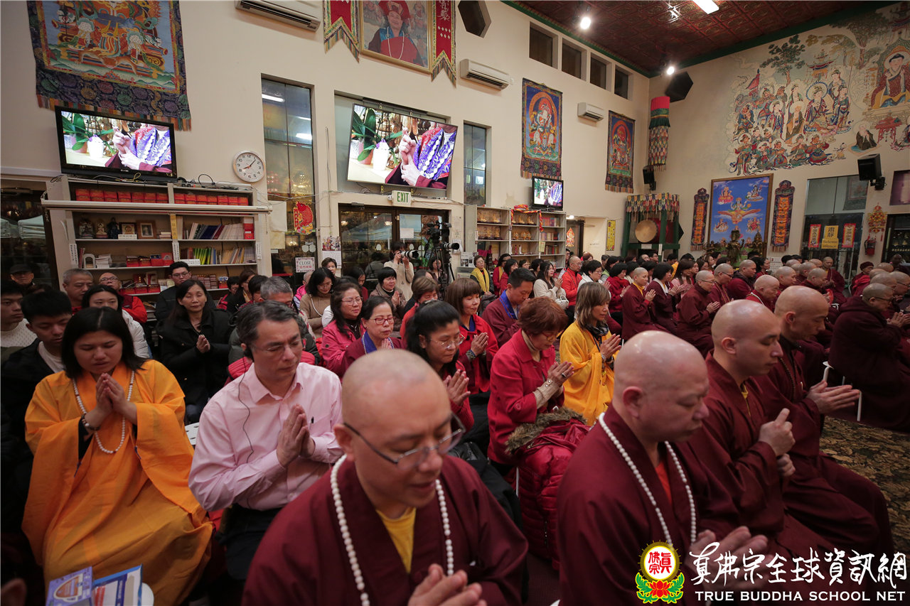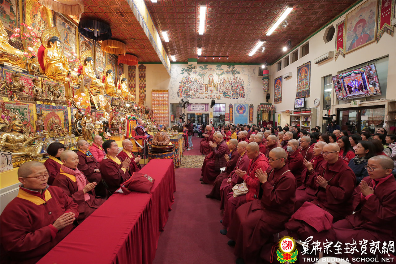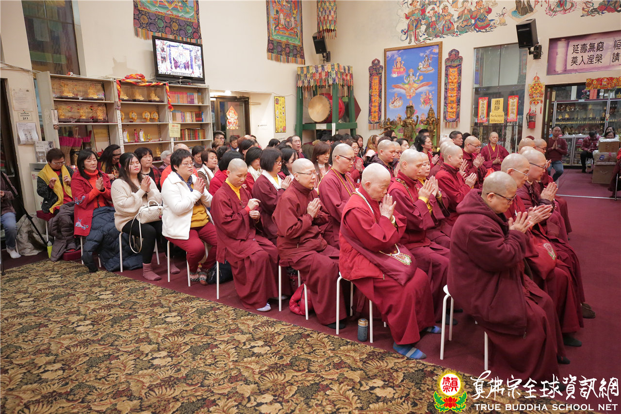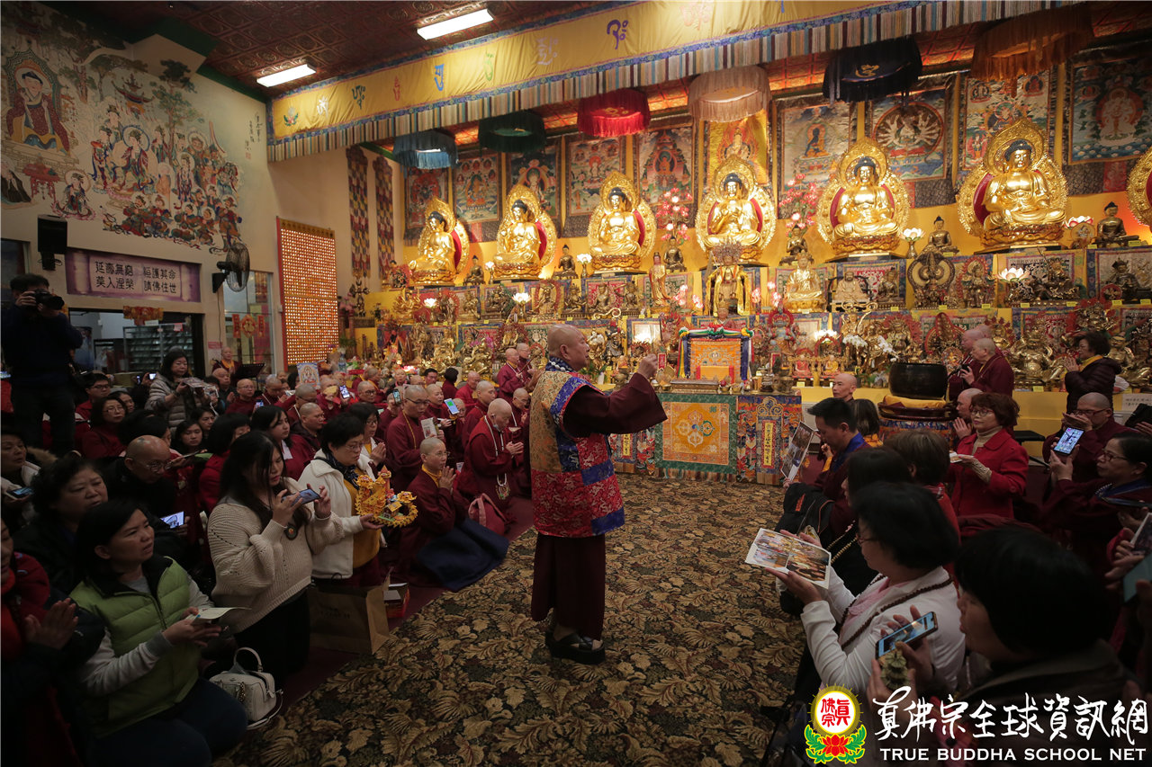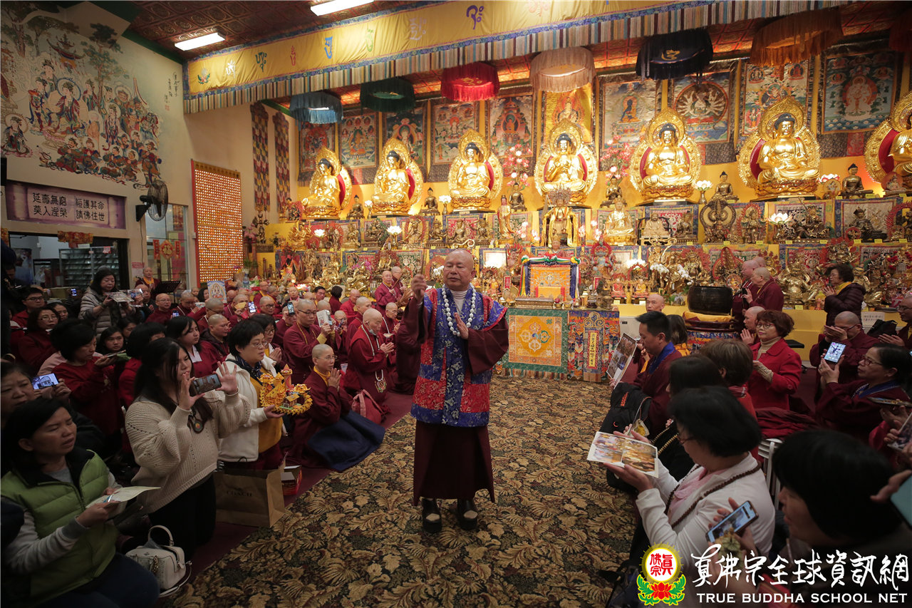 2020年2月22日星期六,西雅圖雷藏寺同修阿彌陀佛本尊法,暨聖尊蓮生活佛盧勝彥講授道果法義。各國一心來朝聖的上師、教授師、法師、講師、助教,及同門善信大德,都聚集在氣氛熱鬧的大殿,等候師尊的蒞臨。