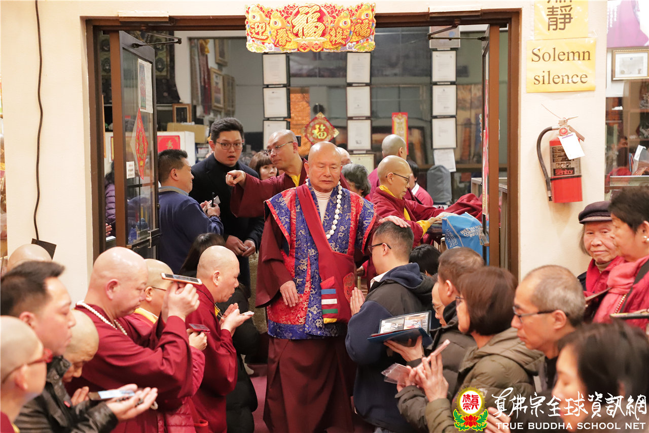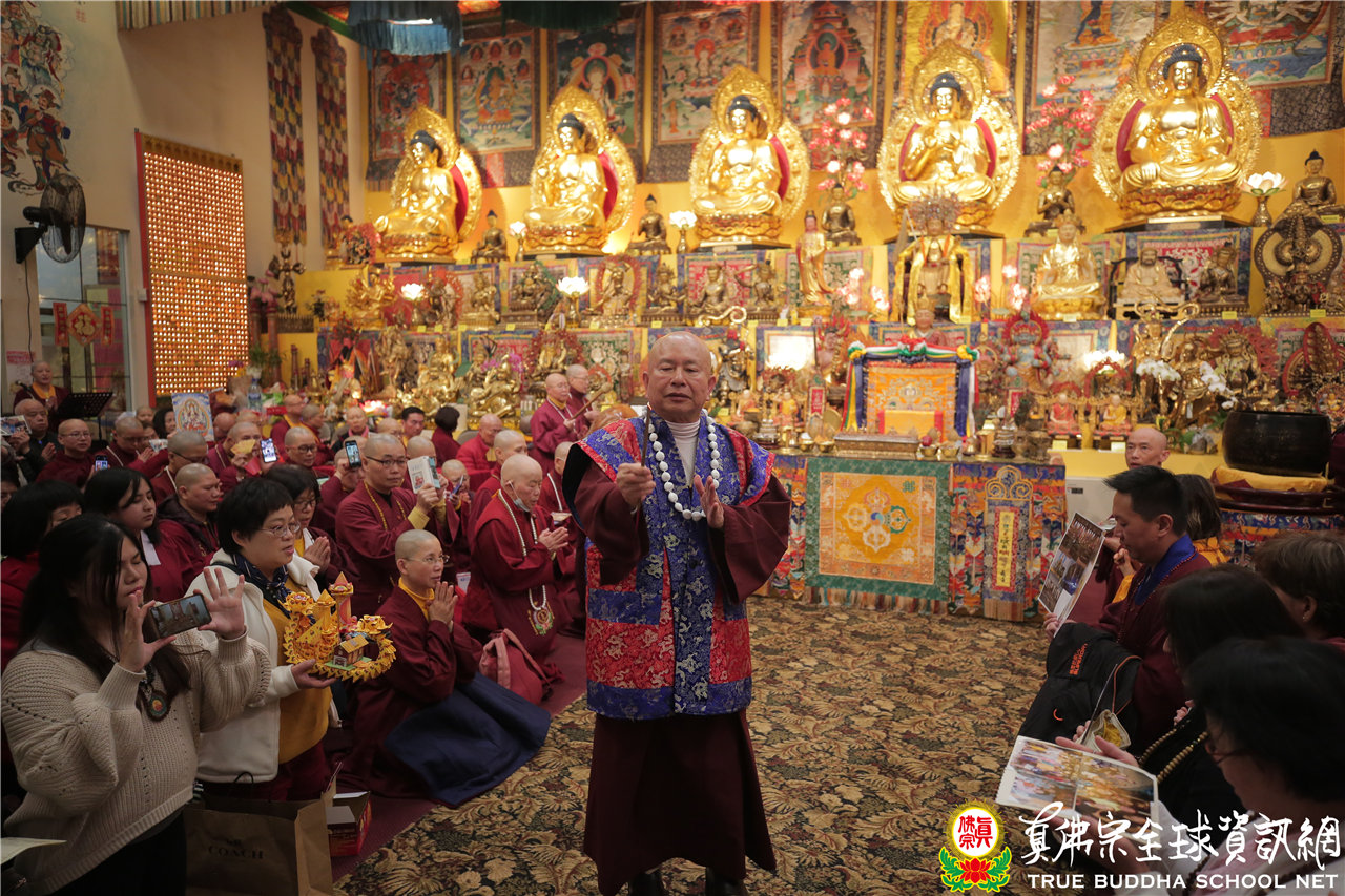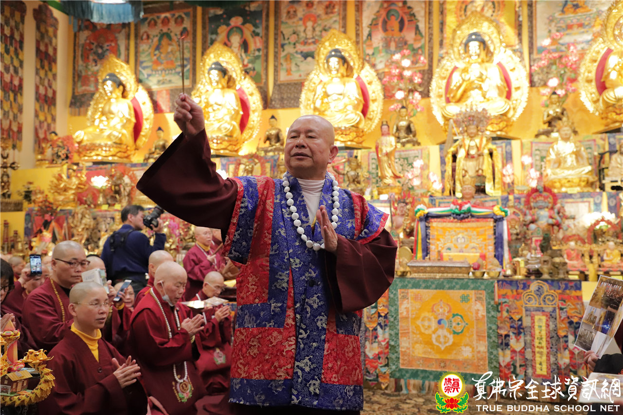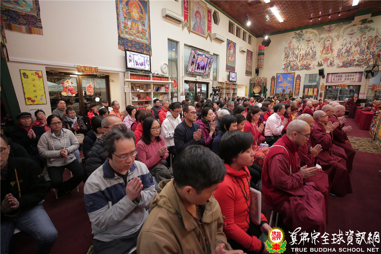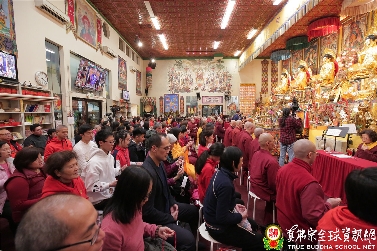 2020年2月22日星期六,西雅圖雷藏寺同修阿彌陀佛本尊法,暨聖尊蓮生活佛盧勝彥講授道果法義。各國一心來朝聖的上師、教授師、法師、講師、助教,及同門善信大德,都聚集在氣氛熱鬧的大殿,等候師尊的蒞臨。