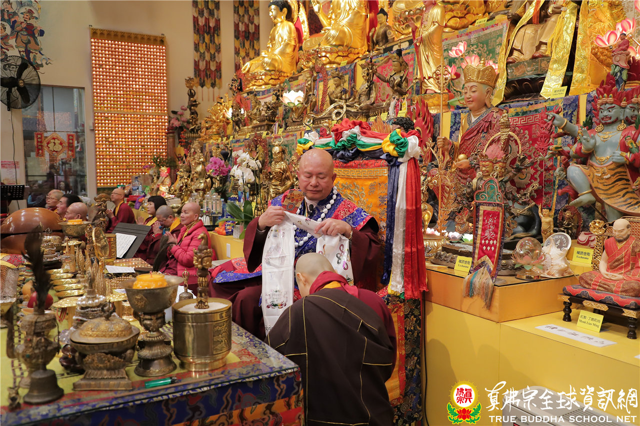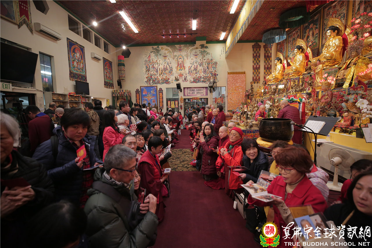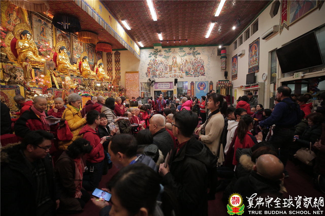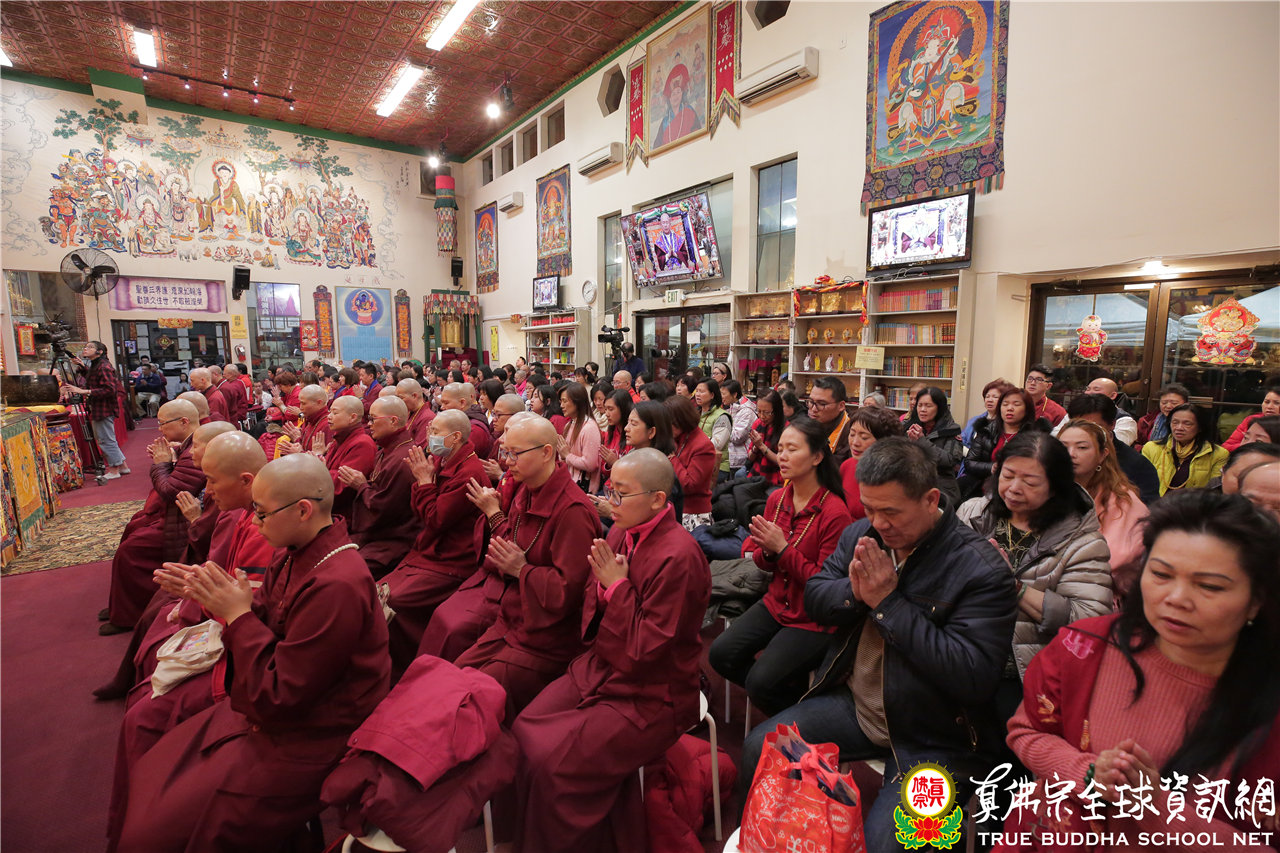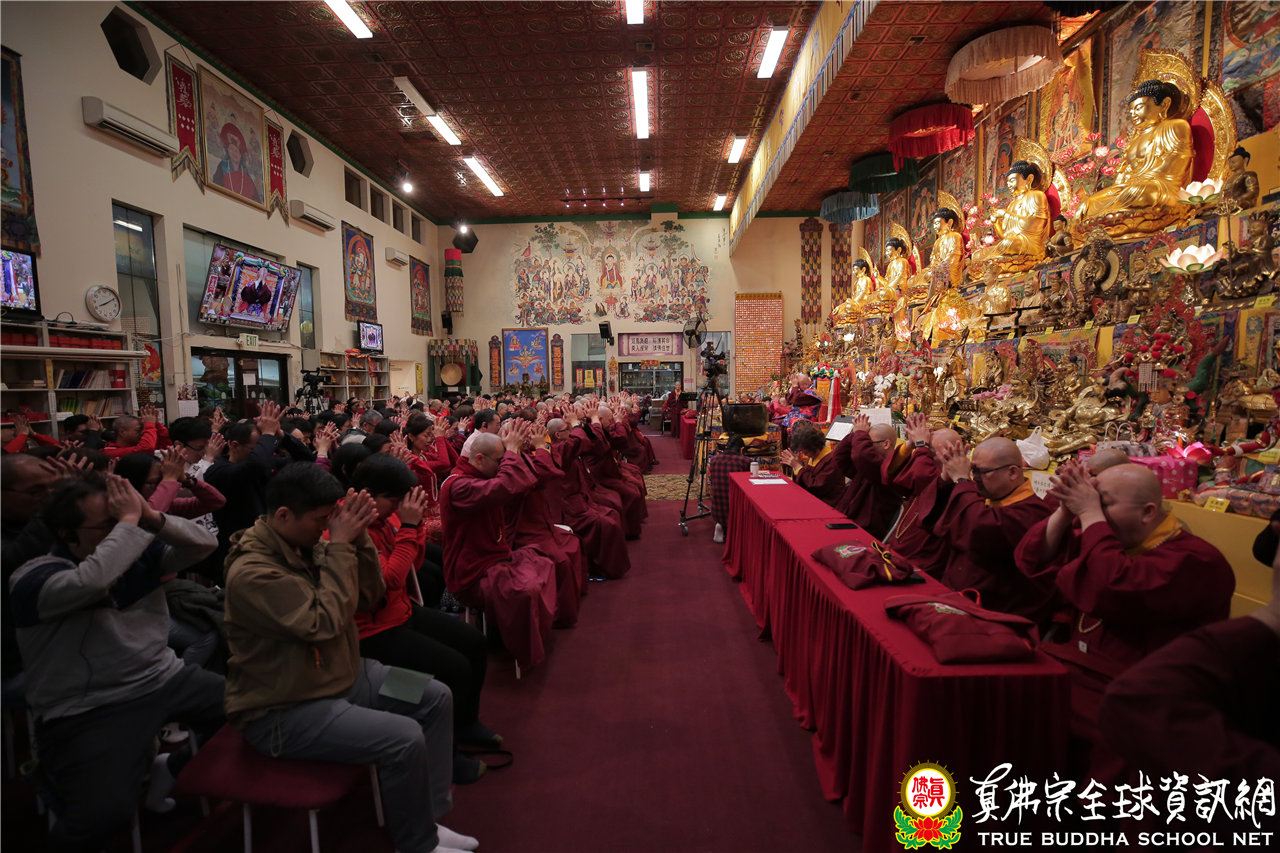 2020年2月22日星期六,西雅圖雷藏寺同修阿彌陀佛本尊法,暨聖尊蓮生活佛盧勝彥講授道果法義。各國一心來朝聖的上師、教授師、法師、講師、助教,及同門善信大德,都聚集在氣氛熱鬧的大殿,等候師尊的蒞臨。