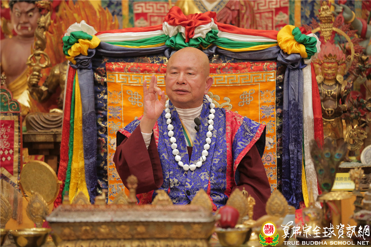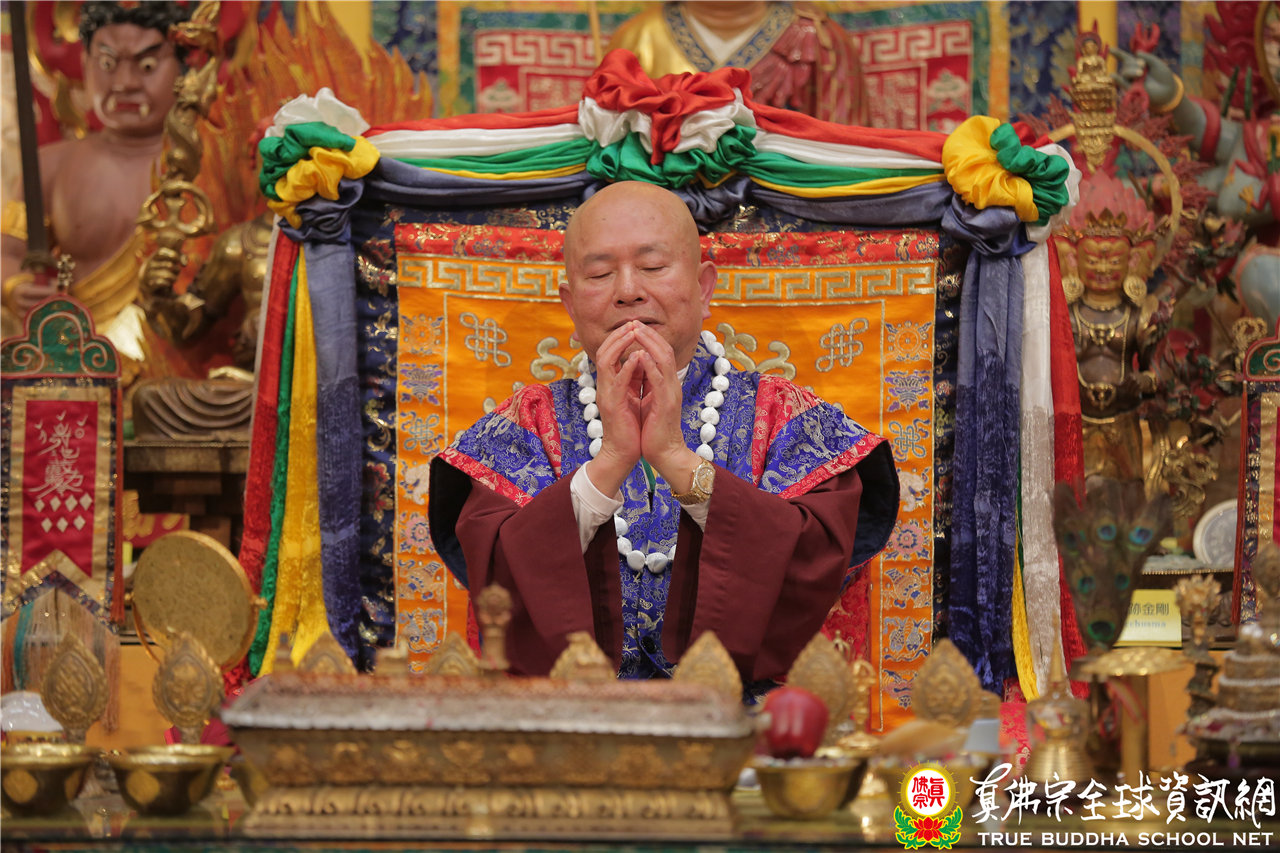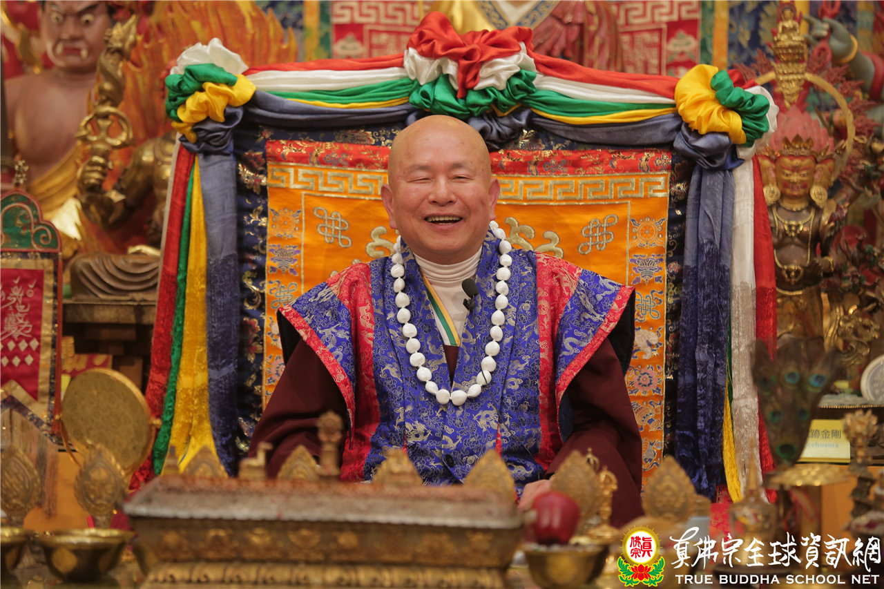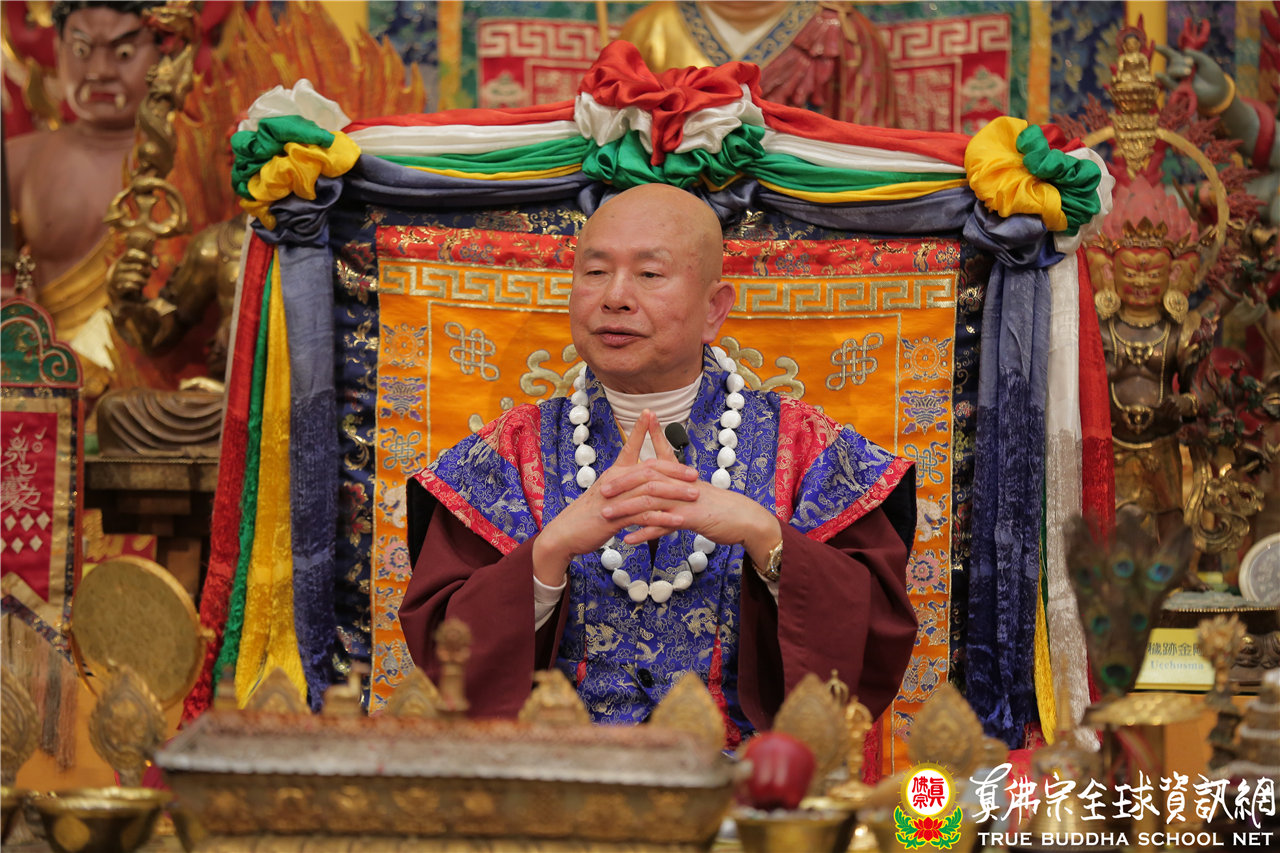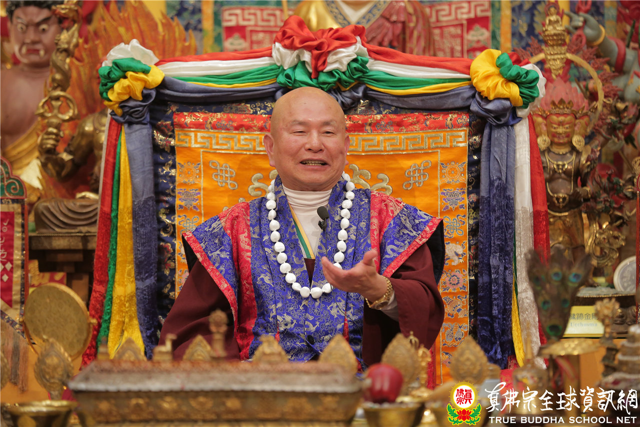 八點正,在唱頌蓮花童子心咒的梵音中恭迎了師尊。眾等在司儀的帶領下,與師尊共修了一壇殊勝的阿彌陀佛本尊法。會後師尊開示,首先一一介紹與會的貴賓,再問侯師母、仁波切、上師、教授師、法師、講師、助教、同門,及網路上的同門善信大德。