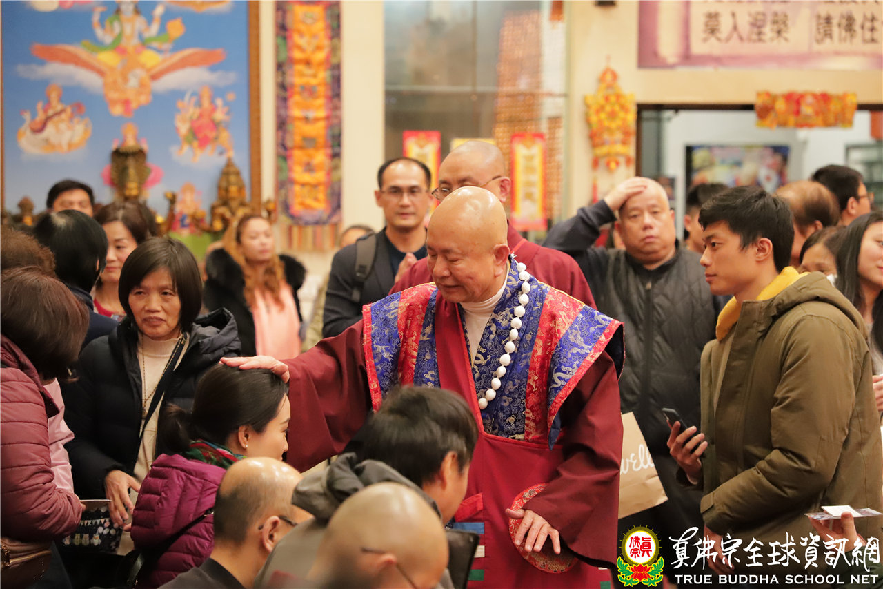 接著師尊講了幾則引申佛法的笑話,讓大家捧腹大笑之餘,更體會到佛法的奧義。最後師尊慈悲為大衆賜授皈依灌頂、加持大悲咒水,和開光佛像,再一一為大衆摩頂加持。太感恩師尊了!