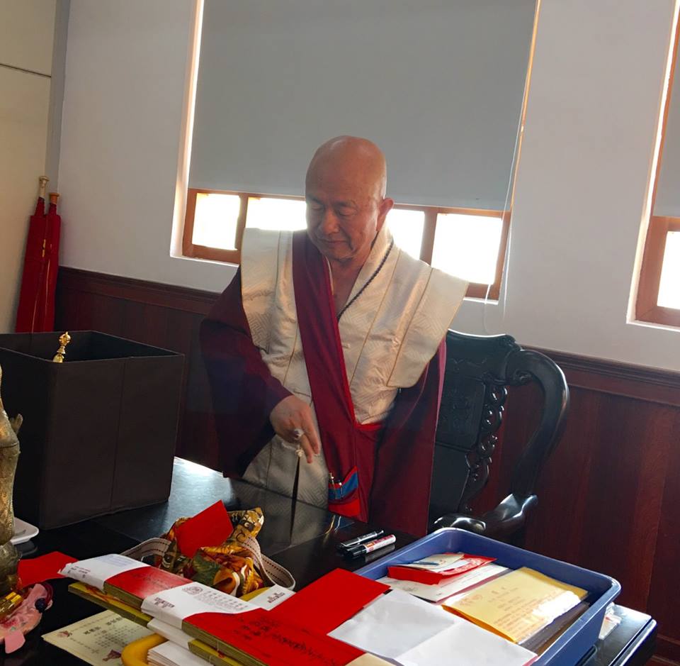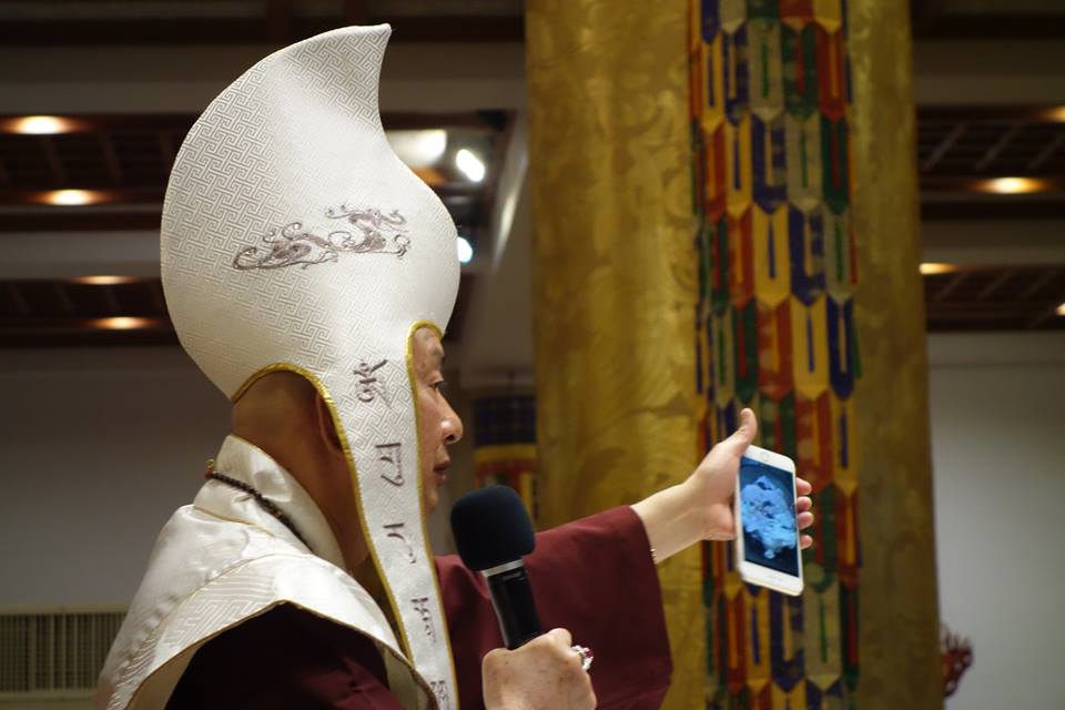 剛剛蓮生活佛在回向時,特別敬禮護摩主尊「佛眼佛母」,敬禮「蓮信上師」。因為「蓮信上師」是「真佛宗第一位功德主」,功德巍巍!,蓮信上師也是協助「台灣雷藏寺」建寺,弘法不遺餘力尊貴的上師。