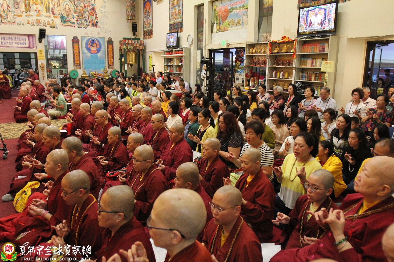 師尊說,當在大家唸誦經文時,見到很多般若光下降。玄玄上人不是指ㄧ個人,是原始的無上意識。玄玄上人傳道給木公東華帝君,東華帝君傳道給瑤池金母,瑤池金母在娑婆世界找到師尊,才有現在的TRUE BUDDHA SCHOOL。慈航大士也是觀世音菩薩,大成至聖興儒治世天尊就是孔子。儒教、道教、佛教ㄧ起來讚揚、讚嘆瑤池金母大天尊。瑤池金母說,要解脱,ㄧ個是禪定、ㄧ個是智慧,智慧不是ㄧ般的知識,而是佛的智慧,如來的佛慧,用佛的智慧來做禪定,才能到達彼岸.就是解脱。師尊説,人生没什麼事,重點在能不能解脱。我們大家坐在這裏,進入真佛宗,為了就是要解脱,人的生死不重要,解脱才最重要。師尊説自己最重要的大事就是能不能夠到佛國淨土,成為佛,解脱到不退轉的境界。我們要學習禪定和智慧,入三昩地從有相的三昧地到無相的三昧地,才能得到真正的解脱。只要解脱,佛國是一念之間就到了.