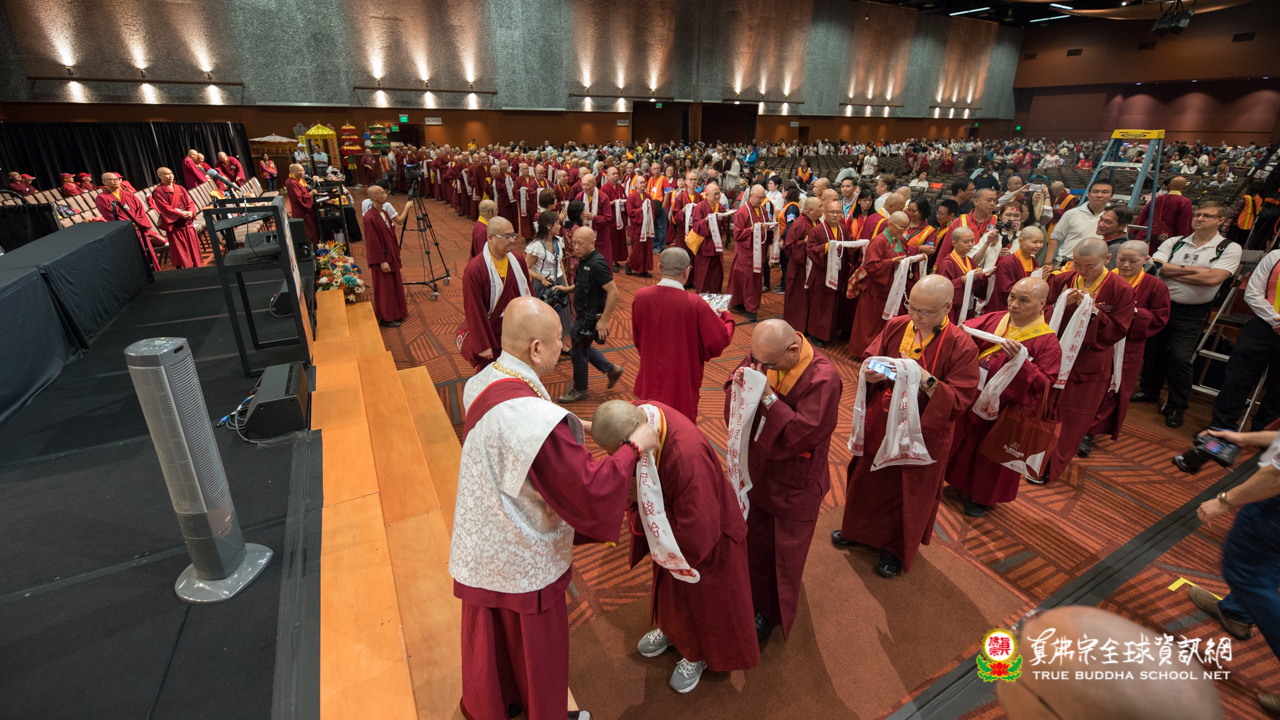 本次有四位發心求受出家戒的戒子,出家法號分別是釋蓮誰法師、釋蓮媏法師、釋蓮唯法師,及釋蓮朾法師。在諸佛菩薩、蓮生活佛為尊證,與現場的每一個人見證下,於戒壇之前絕無虛言,一問一答之間便是得戒。聖尊勉勵新出家的戒子,能夠真正遵守出家戒律而不犯,從今而後,求取佛果,下化眾生,度更多的人,能夠真正的成就。