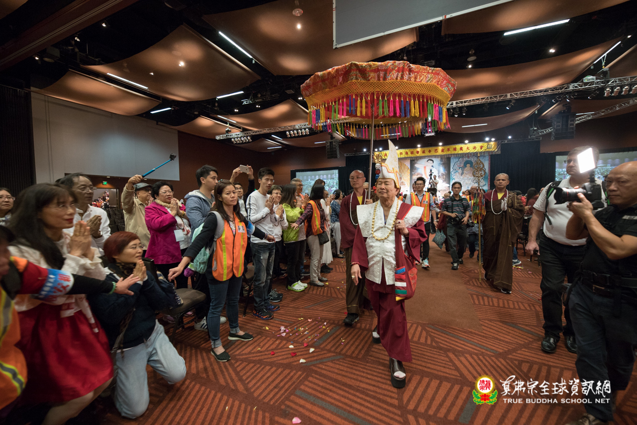 西雅圖雷藏寺年度的秋季大法會於下午二時正,隆重揭開序幕,莊嚴的迎師隊伍前往恭迎真佛宗根本傳承上師法王蓮生活佛登壇傳法開示。在場數千人眾,人人虔心合掌,等待這無與倫比的一刻。聖尊蓮生活佛在萬眾的期待下,登上法座高台,法王以慈悲攝受之姿,傳受殊勝大法,所有真佛弟子內心的覺受是感動澎湃的。