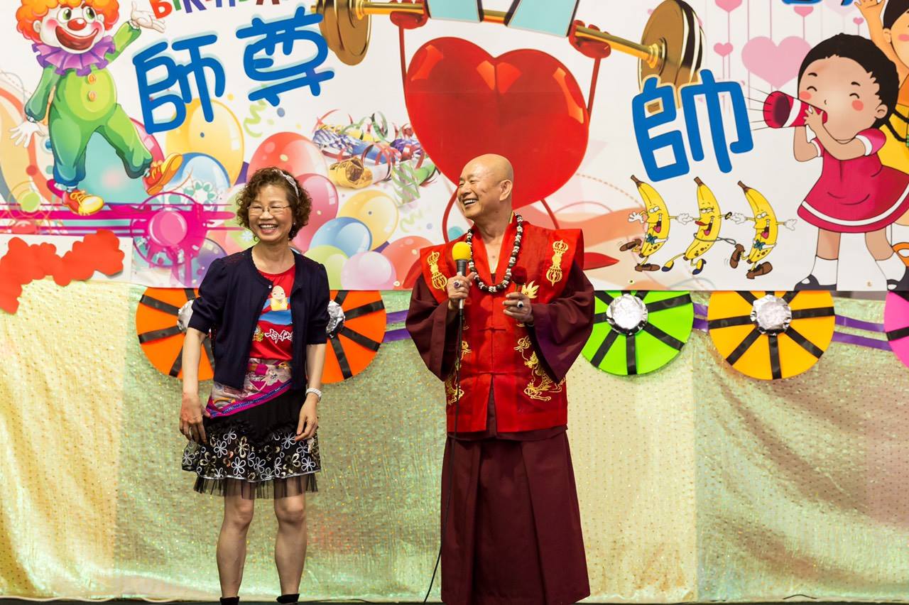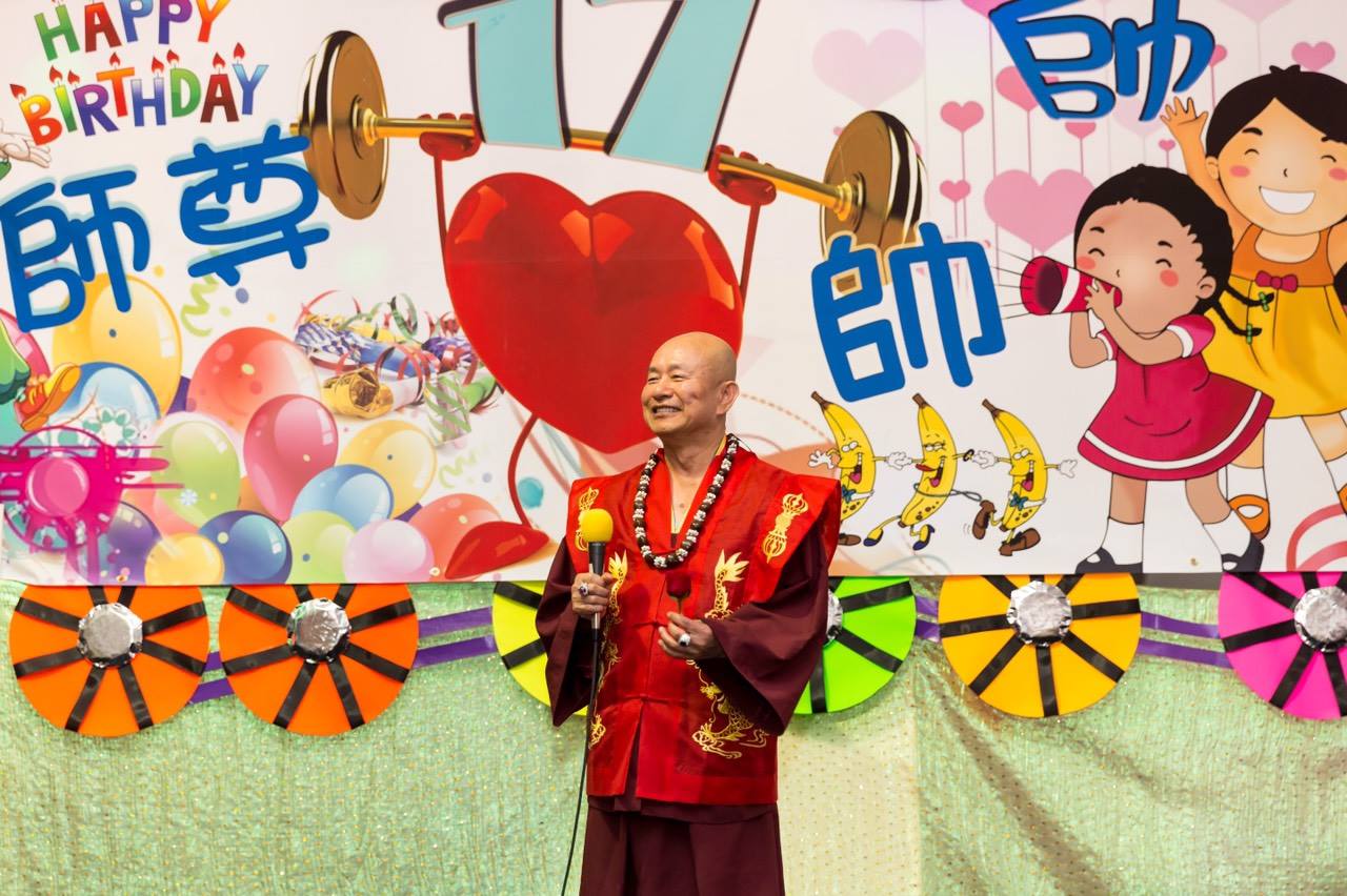 法會後,「師尊17歲帥!帥!帥!」的表演節目更加精彩,在蓮喜上師 、蓮彥上師兩位主持人活潑逗趣的帶動之下,把現場氣氛抄得更熱絡。今晚與會的還有佛青、安迪及佛奇一家人全部到場為師尊祝賀生日快樂!