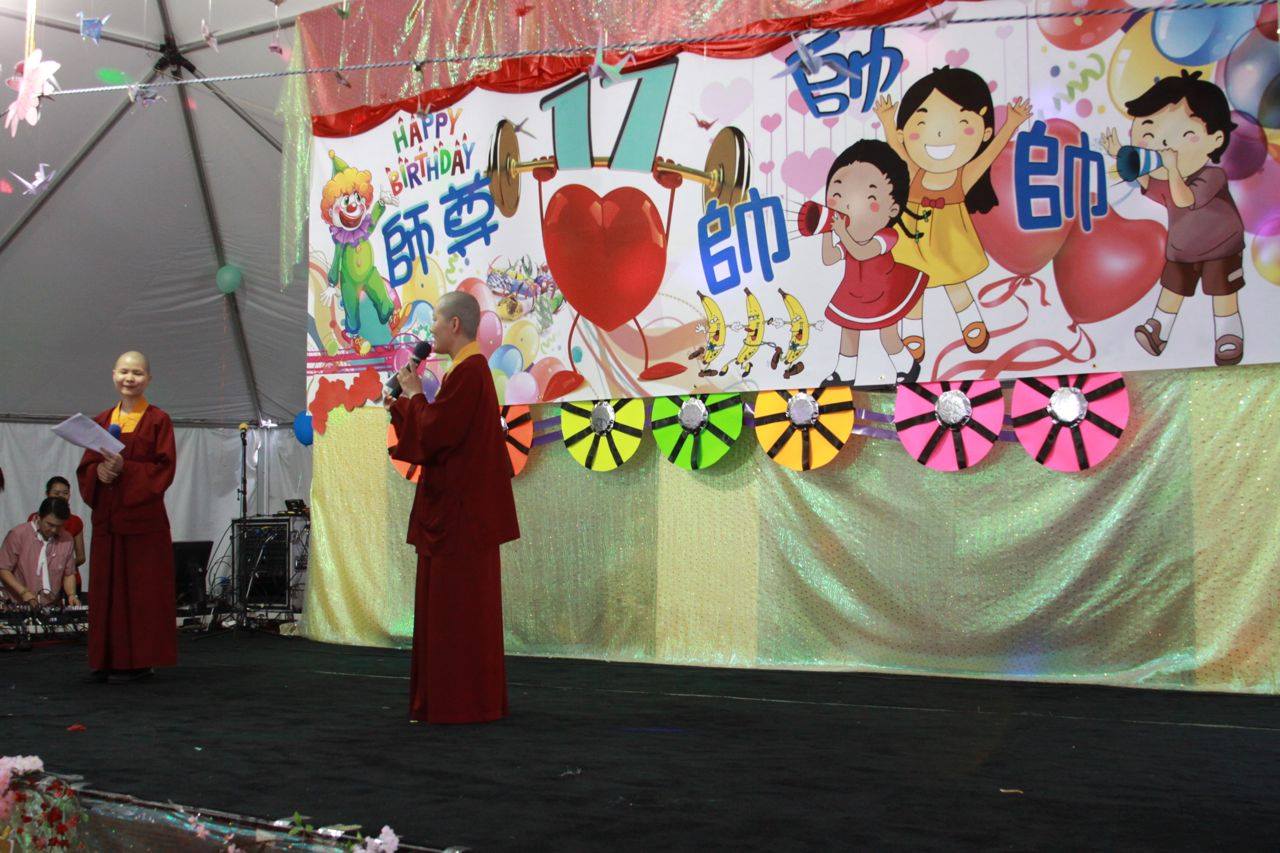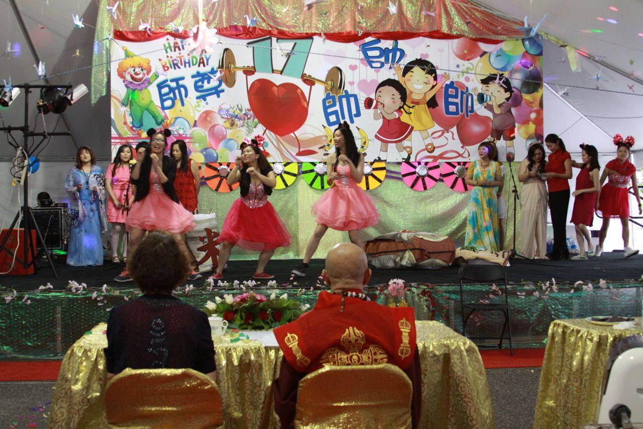 在法會之前,主辦單位精心策劃主題為「師尊17歲帥!帥!帥!」一連串熱歌勁舞拉開序幕,是日由於大日普照,太陽光曬,師尊師母戴起了弟子們準備的墨鏡,隨著弟子們的熱歌帶領走進了表演舞台。