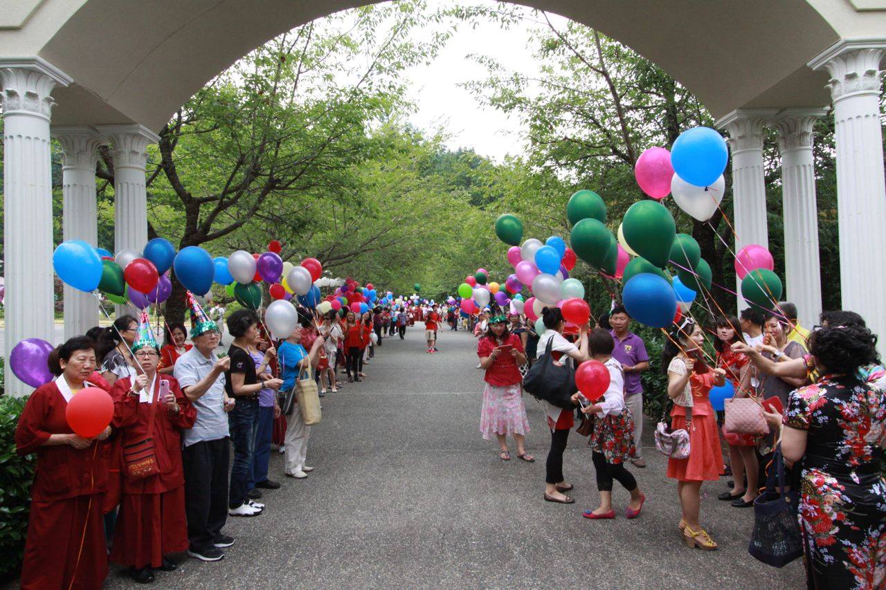 一連串的精彩表演,包括青春活潑的熱歌勁舞、與師尊、師母一起同放彩色氣球,師尊、師母一起切蛋糕…等,全場「嗨」到最高點!