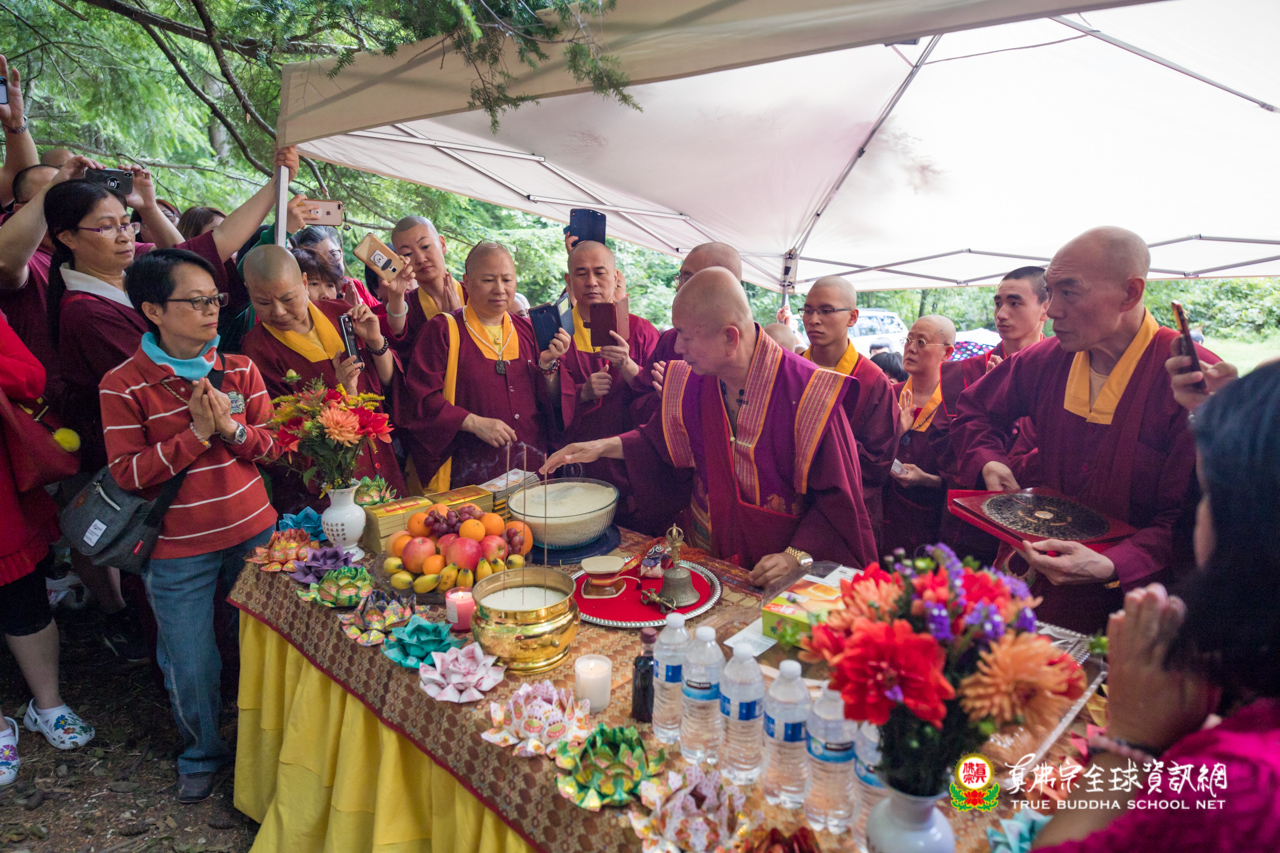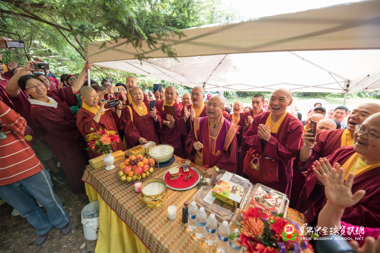 2019年9月1日下午,美國西雅圖彩虹雷藏寺恭請根本上師蓮生活佛盧勝彥主壇金剛亥母護摩大法會,當日,法王於法會前主持生基儀式。金剛亥母為「空行母」之首,是空行總持,是根本空行母,其誓願是:「願為所有行者的道侶」,所有的空行母,所有一切幫助眾生的法侶,都是「金剛亥母」的化身,祂的上面就是般若佛母,亦即是般若佛母所化,代表著智慧,金剛亥母是所有密乘瑜伽士修持中脈、拙火、明點、無漏等種種法的本尊,代表著火,代表短「阿」字。