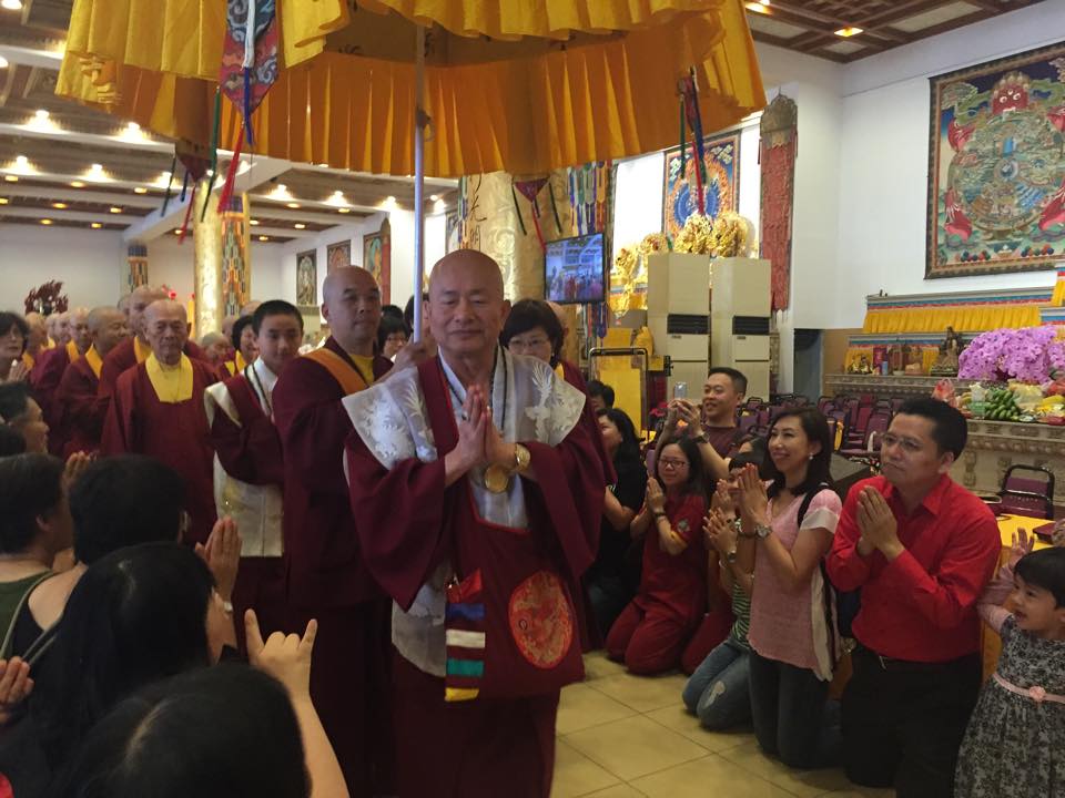 2015年4月25日蓮生活佛 盧勝彥法王、蓮香師母抵達〈台灣雷藏寺〉,受到逾萬信眾熱烈歡迎。