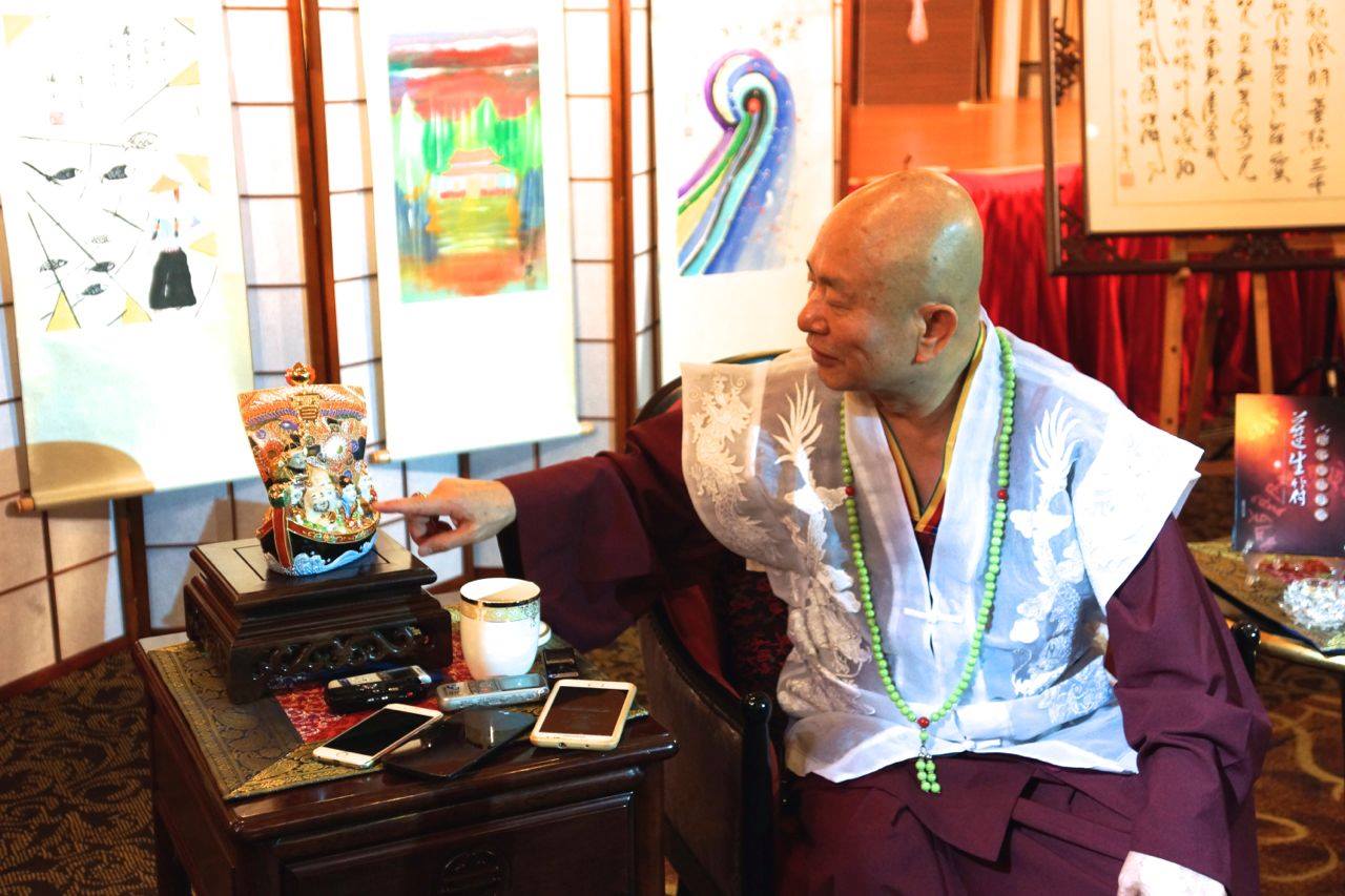 對於記者們一連串的提問,蓮生活佛總以深入淺出,發人深省的妙語回答,也讓現場氣氛形成一股自在愉悅的氛圍,對於活佛平易近人,親和的作風,令記者們感到蓮生活佛的獨特魅力!用餐後,記者們也把握難得機會,祈請蓮生活佛摩頂加持。