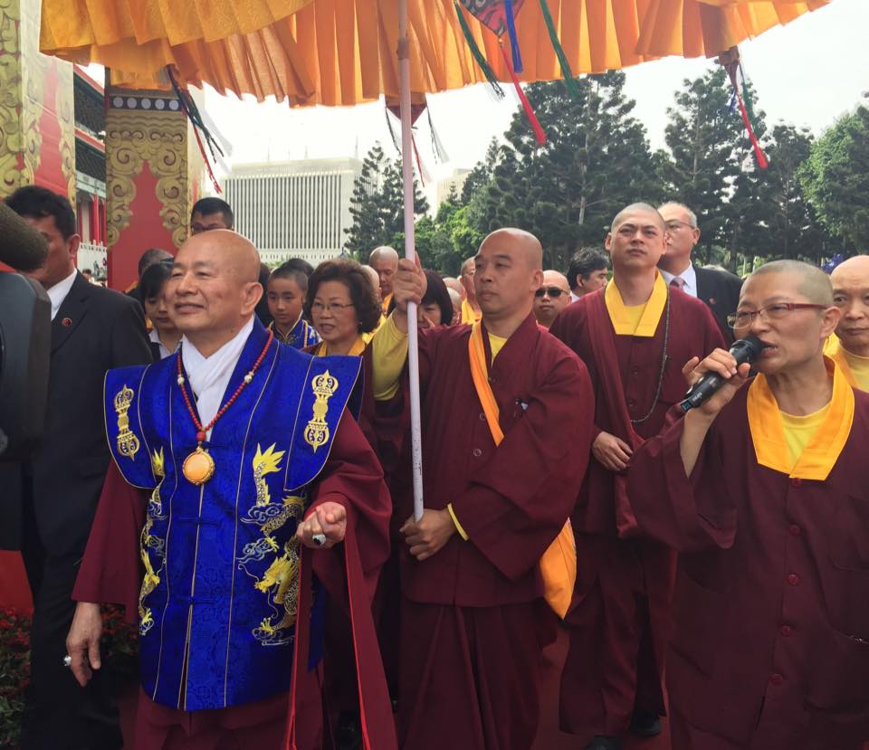 11:00蓮生活佛,蓮香師母在莊嚴盛大的迎接儀式中抵達會場。