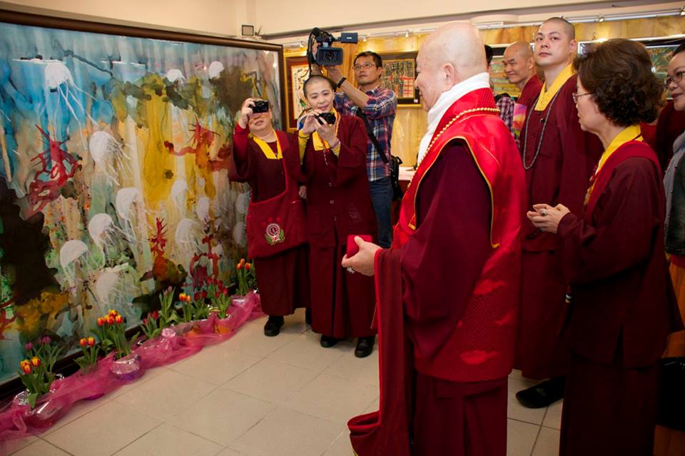 蓮生活佛首先至「蓮生活佛創作館」參觀,隨即接受電視媒體訪問,蓮生活佛向大眾拜年之外,並發贈「新春護身佛牌福袋」。蓮生活佛受訪時談到,這次新春護身佛牌福袋的意義更甚於一般的紅包;因為這個佛牌是可以保佑每一個人的一生一世,可以招財,可以擋災,可以得到一切的吉祥,身體健康,護佑一生平安。