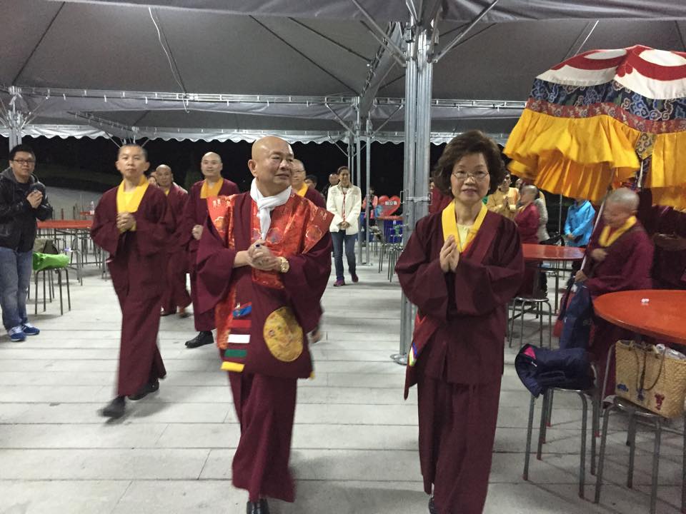 晚餐前,〈台灣雷藏寺〉蓮哲上師、台灣密教總會理事長蓮歐上師代表獻供祝賀師尊、師母新春快樂。