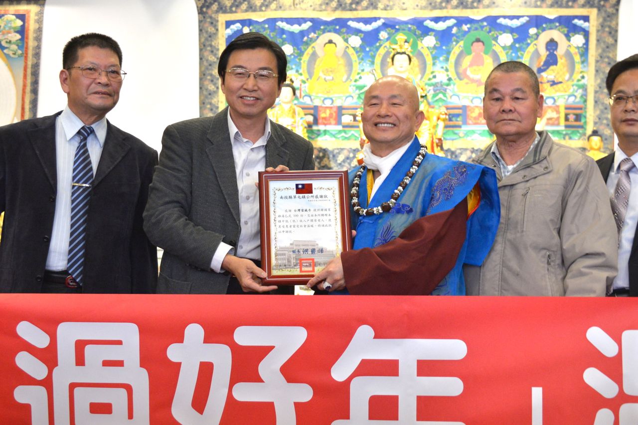 法會前,首先舉行「新春送暖捐贈儀式」,這是由「台灣雷藏寺」和草屯鎮公所合作發放補品給一百户草屯獨居弱勢老人;有草屯洪國浩鎮長和南投縣民代,及约20位老人代表接受蓮生活佛的捐贈送暖。鎮長洪國浩先生特別向蓮生活佛及台灣雷藏寺的慈悲關懷之心表達感謝,並致贈感謝狀給蓮生活佛及台灣雷藏寺。新春送暖活動,吉祥圓滿。