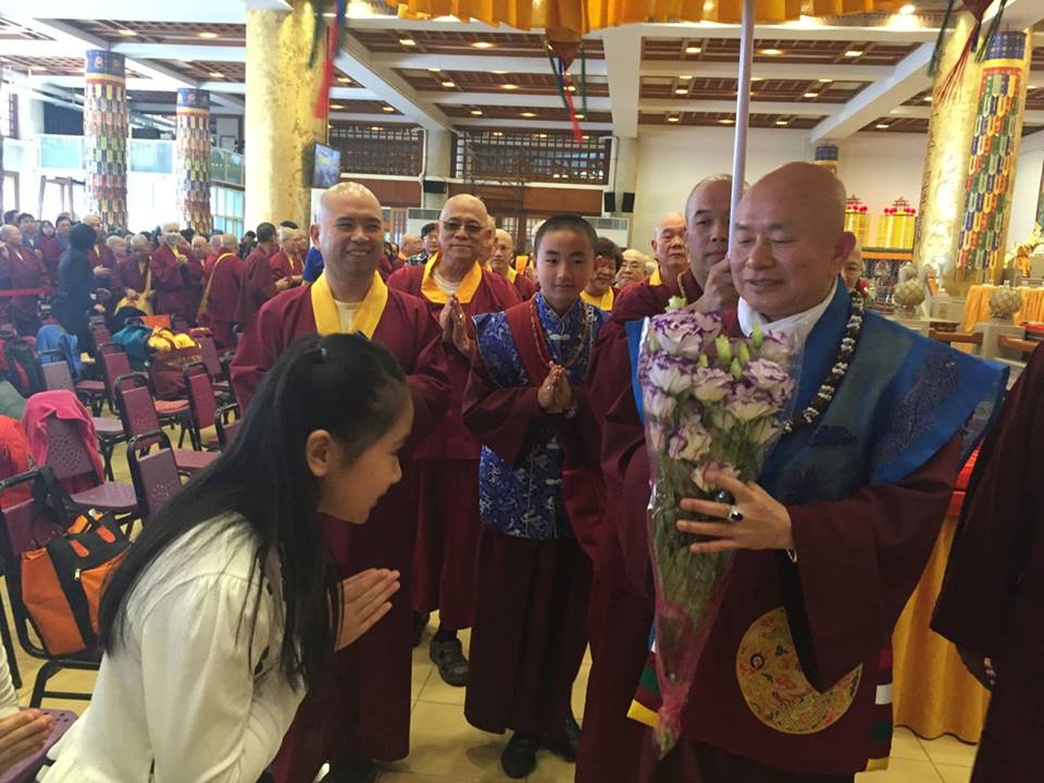 接著,蓮生活佛首先宣佈師母蓮香上師將於新春法會與大家見面;以及宣佈巴西蓮訶上師推薦蓮伽法師為金剛阿闍黎。