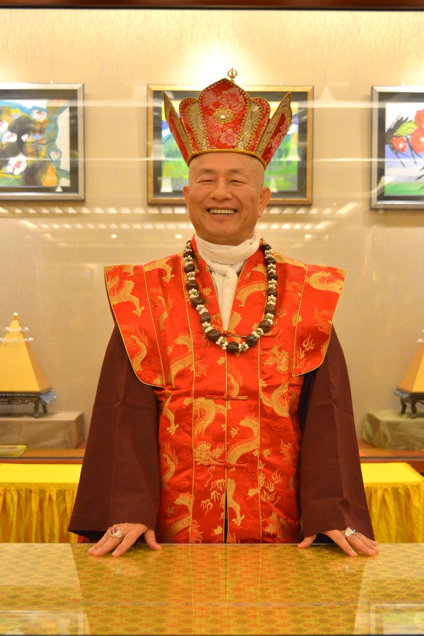 第一,西藏平常的喇嘛,穿紫紅色的法衣,穿紅色滾金是高一等的,最高地位的,才穿黃衣,因此蓮華生大士要我穿上黃衣,黃衣最是崇高之謂。表示我是直接承受了蓮華生大士給我無上的榮耀。