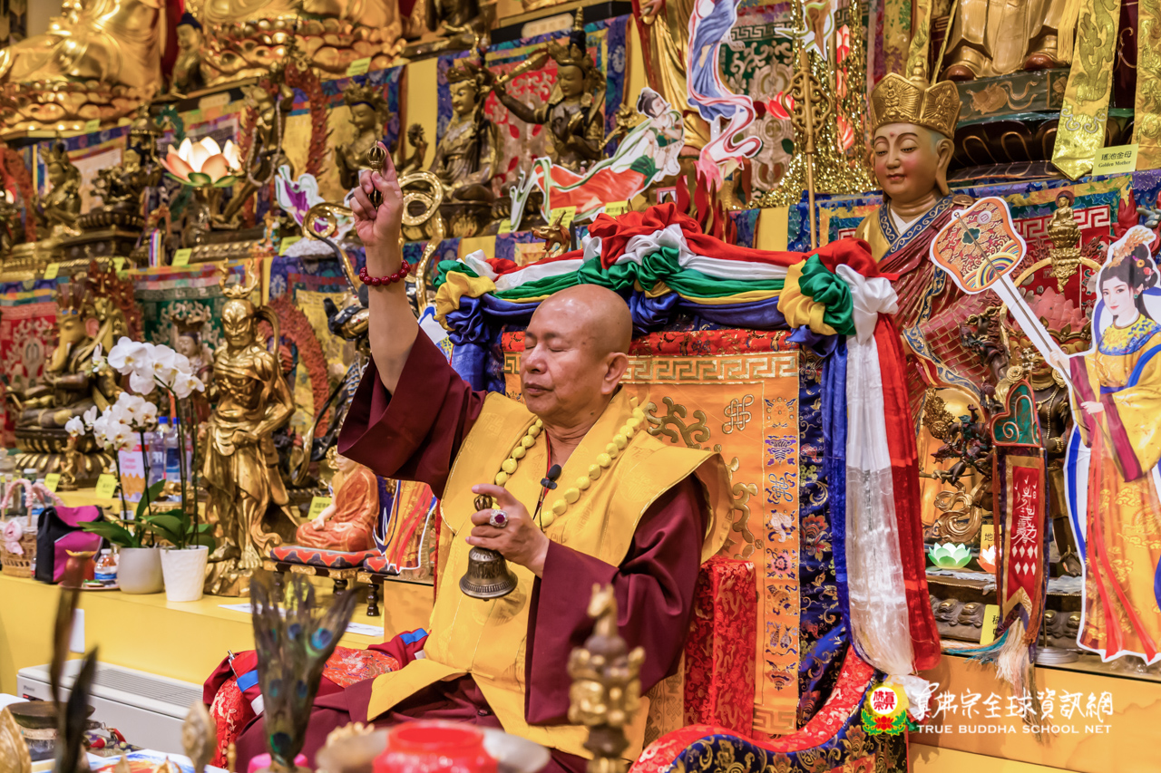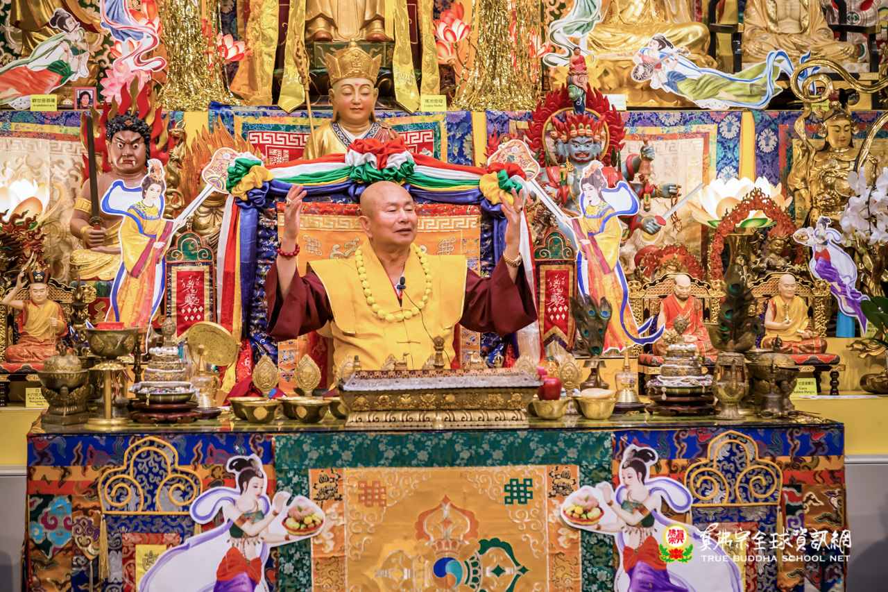 莊嚴的迎師隊伍到密苑,誠心恭迎根本傳承上師升壇說法開示,並親臨祖廟主持地藏王菩薩本尊法的同修。在圓滿的同修後,聖尊談到地藏王菩薩的咒語和手印,其手印也稱為金剛牙手印。在八大菩薩裡,現出家相的只有地藏王菩薩。有人研究為什麼釋迦牟尼佛在忉利天宮講地藏經,會把末世的眾生付法給地藏王菩薩?主要是八大菩薩只有地藏王菩薩是出家眾,其他的菩薩都沒有現出家相。所以佛陀付法給地藏王菩薩,將來的末世眾生在沒有佛的時候,就咐囑給地藏王菩薩。真正來說,法是應該由法師持有,在家眾是護持佛法。但現代又不同了,法師有所謂的聖賢僧,有的是凡夫僧是沒有法的。出家人第一是要修清淨行,也就是所謂的梵行,一切的行為都是要守戒律的。出家最重要就是要守戒律,如守五戒、菩薩戒、出家戒……等等,戒律是很多的。每一個人修行的時候,就是要遵守出家戒律而不犯,要經常誦戒,至少一天要誦一次戒。否則出了家不知道出家戒律,就不算是出家。