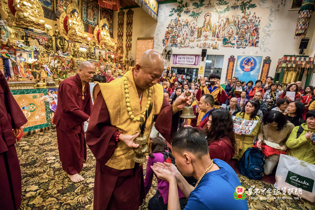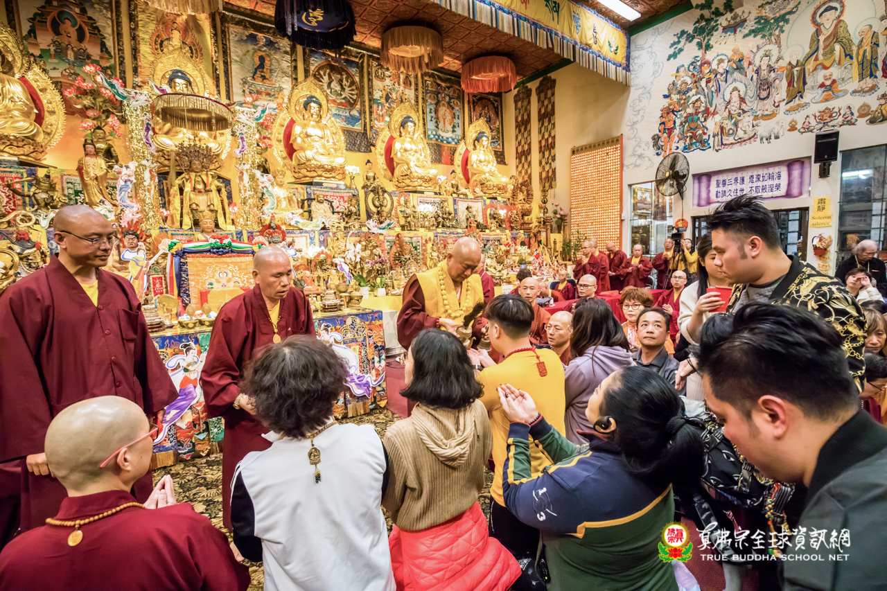 精采開示結束後,聖尊為求皈依的信眾賜授灌頂、加持大悲咒水,以及開光佛像。離開雷藏寺前,聖尊仍慈悲的為大眾摩頂加持滿願。步出雷藏寺外,入秋的夜晚細雨綿綿,雨絲沁涼,內心一片溫暖,感恩聖尊如此無私、透徹的教導,弟子感恩之情無法言喻。