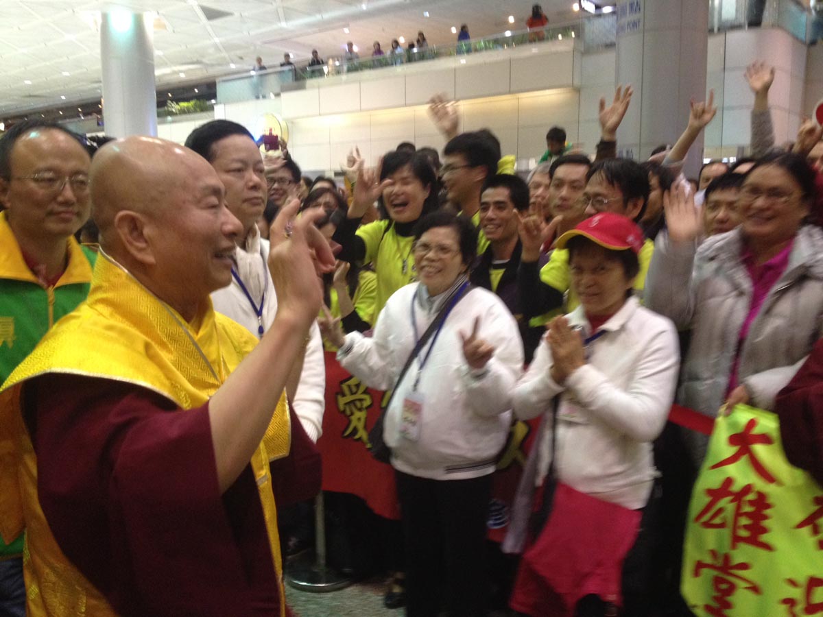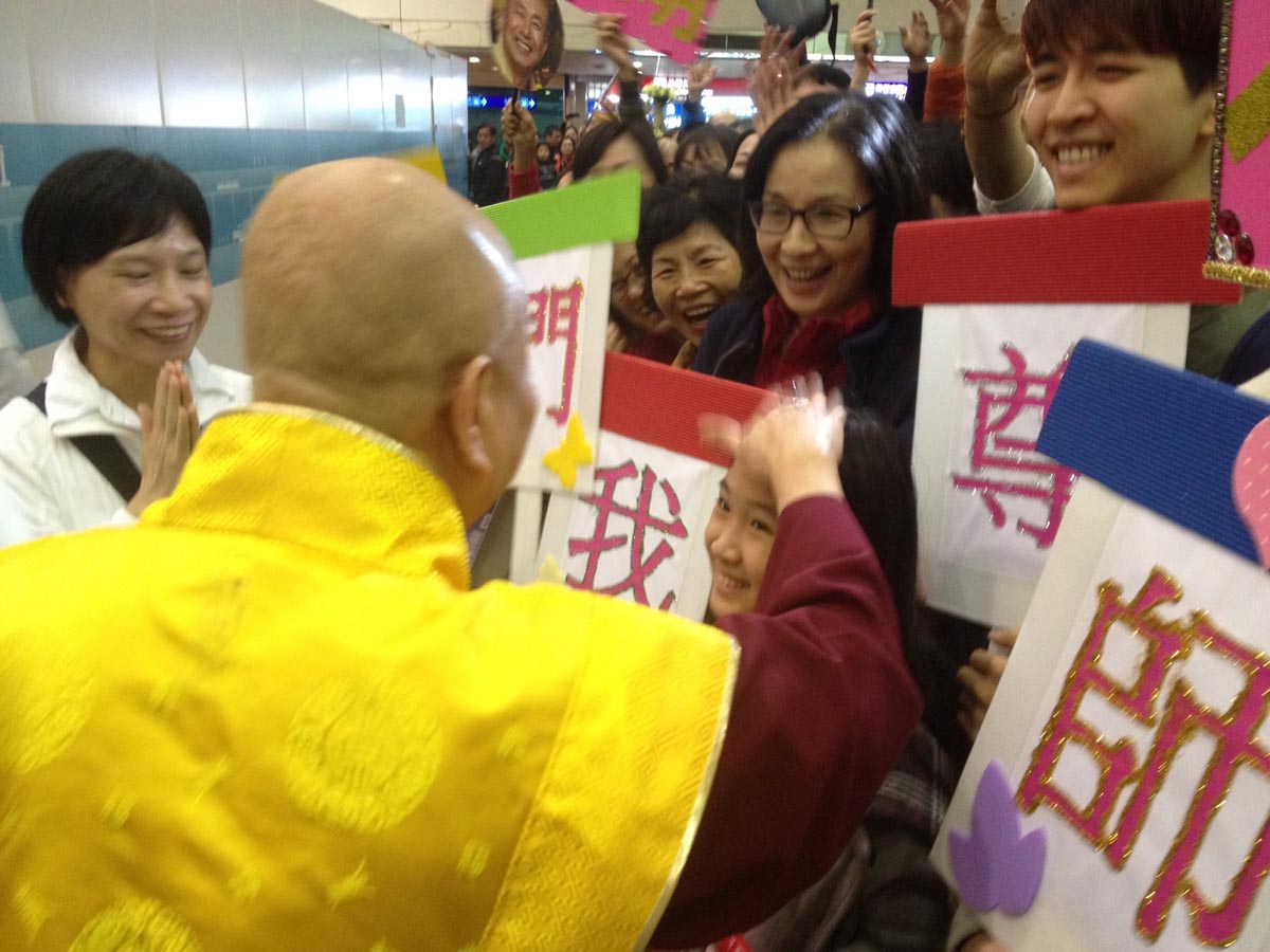 記者會結束後,蓮生活佛不畏辛勞,慈悲地為現場接機的千多位善信弟子一一摩頂加持,在眾弟子聲聲的關懷互道祝福話語聲中,蓮生活佛坐上開往高鐵站的遊覽車,並與車窗外的弟子們一一揮手致意…。