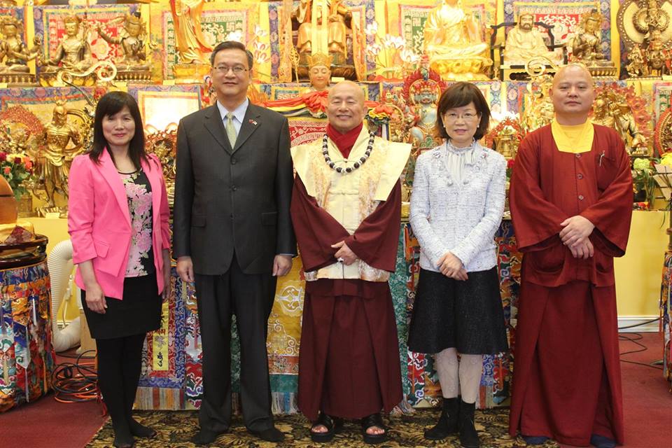 2014年11月3日中華民國駐西雅圖台北經濟文化辦事處金星處長與莊秘書足金小姐首次親訪〈西雅圖雷藏寺〉拜會聖尊蓮生活佛盧勝彥