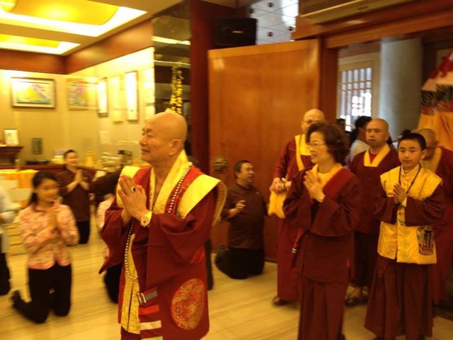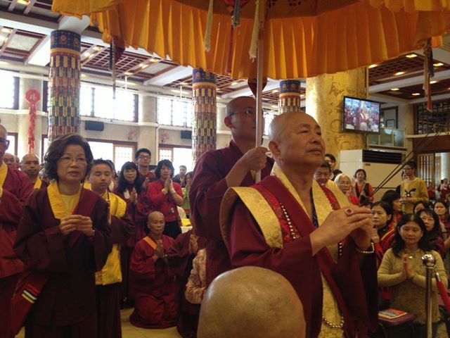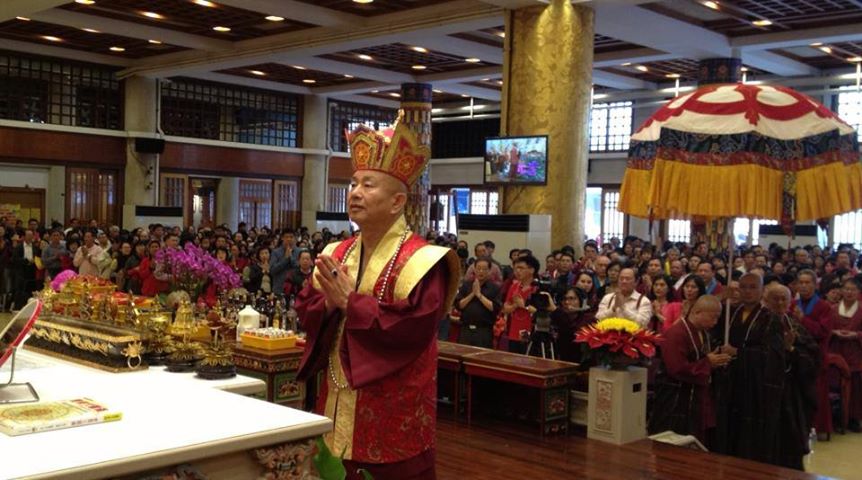 12月14日〈台灣雷藏寺〉恭請蓮生活佛 盧勝彥法王主持「阿彌陀佛護摩法會」,逾萬信眾同聲齊唱「蓮花童子心咒」列隊恭迎,場面浩大震撼!